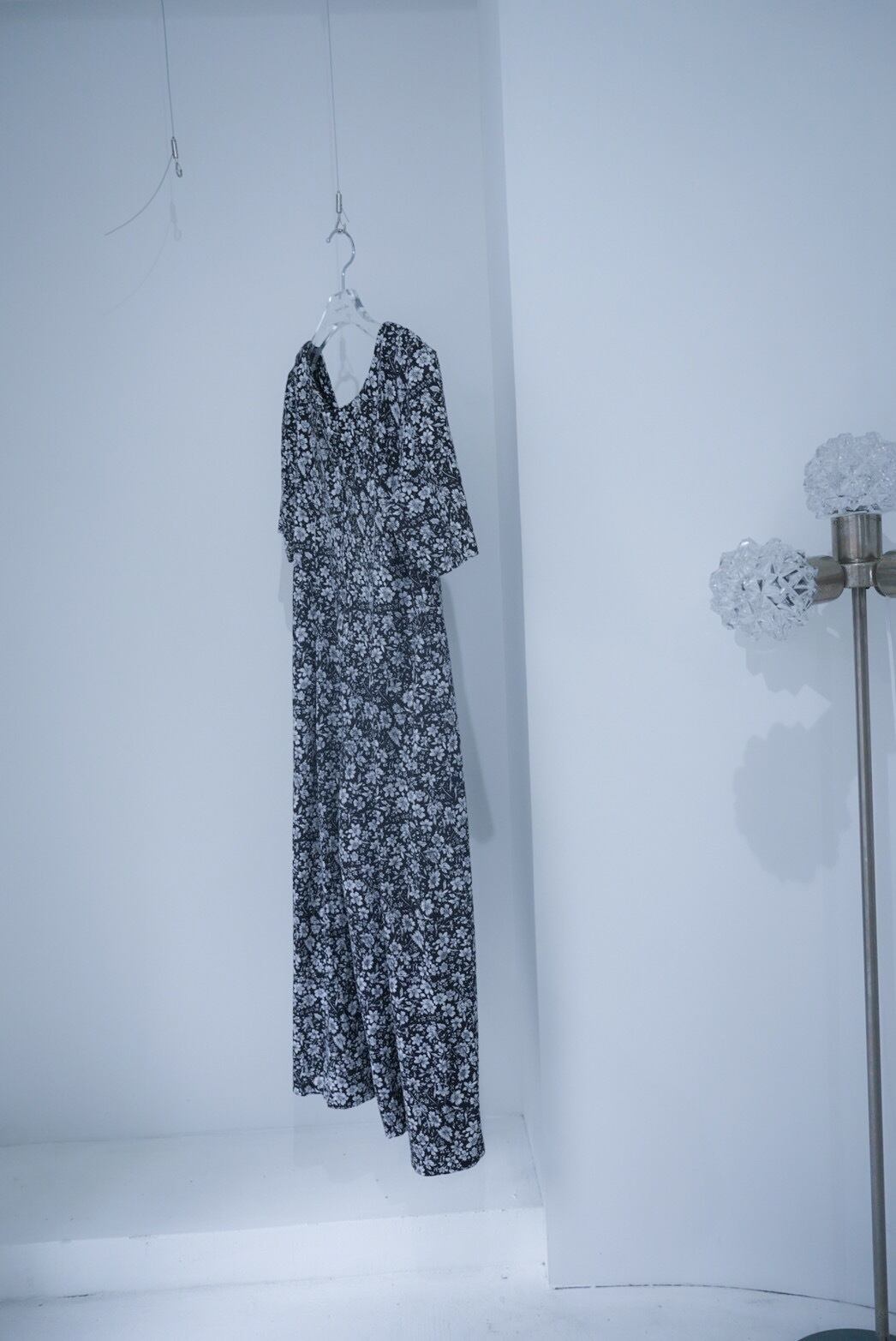 濃紺のカラーに白いフラワープリントが