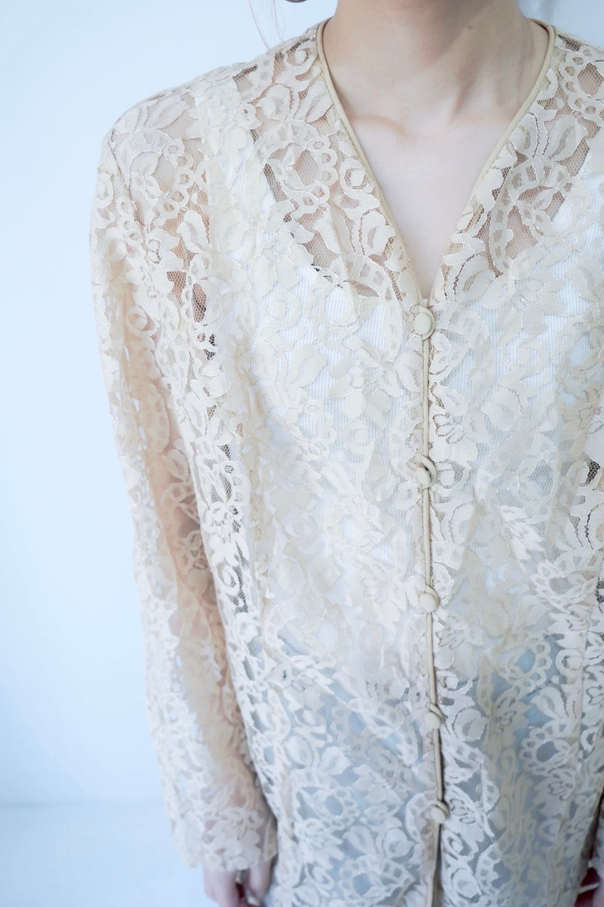 仕立ての総レースシャツ。