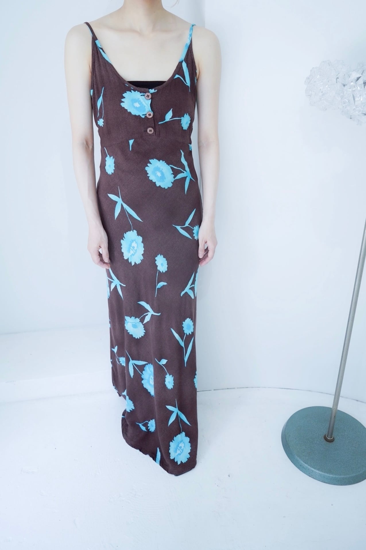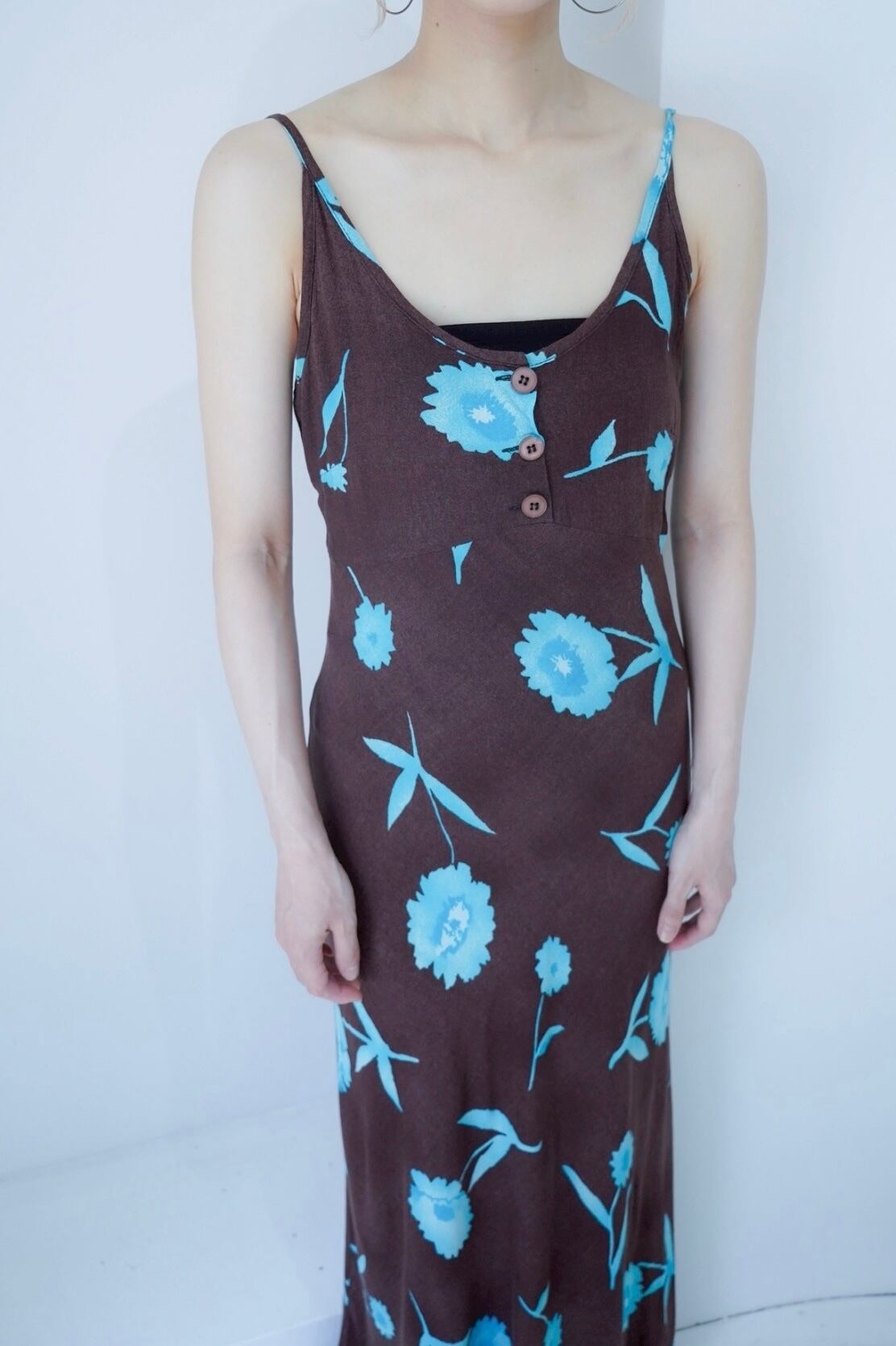 brown blue flower dress