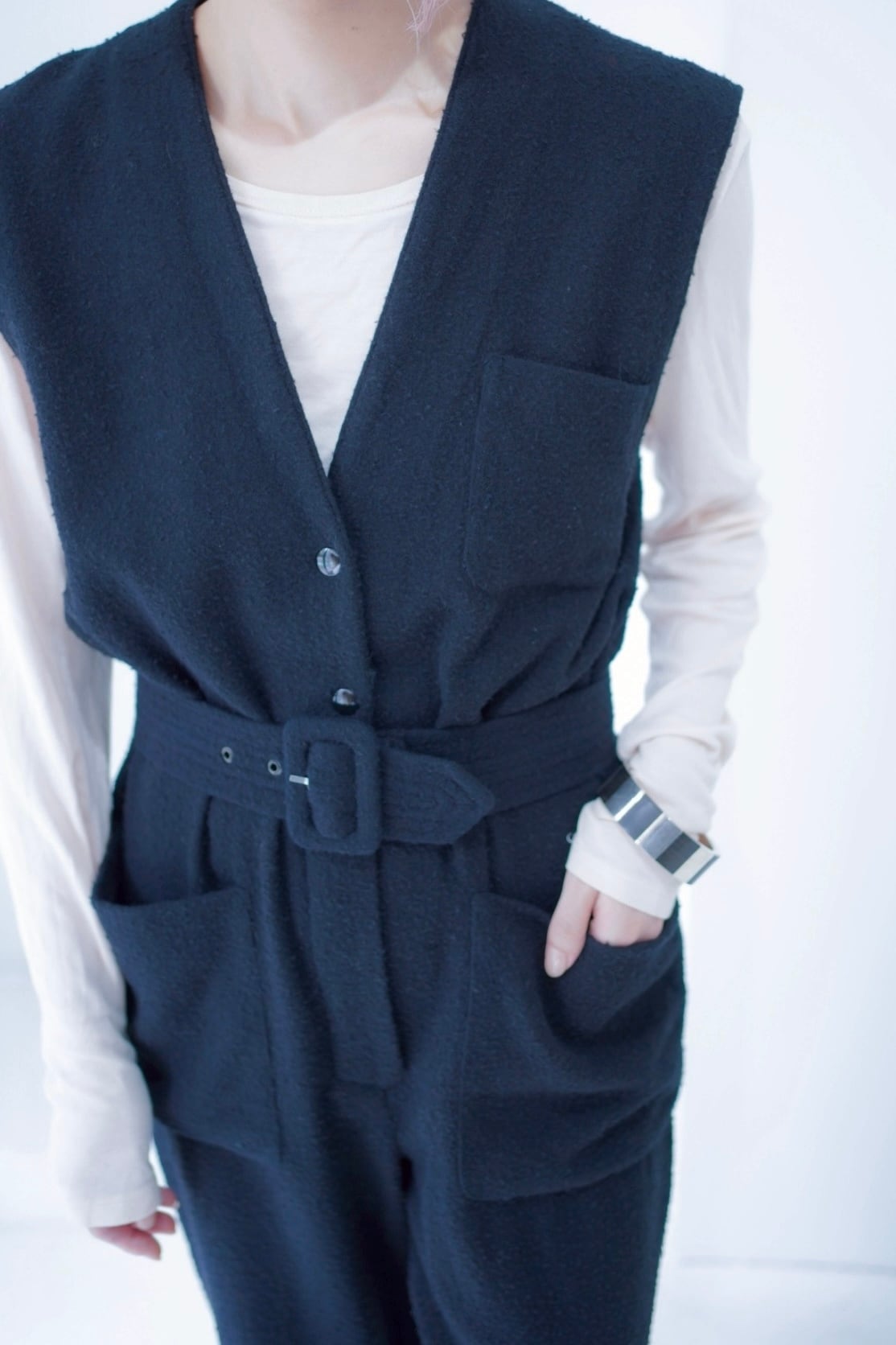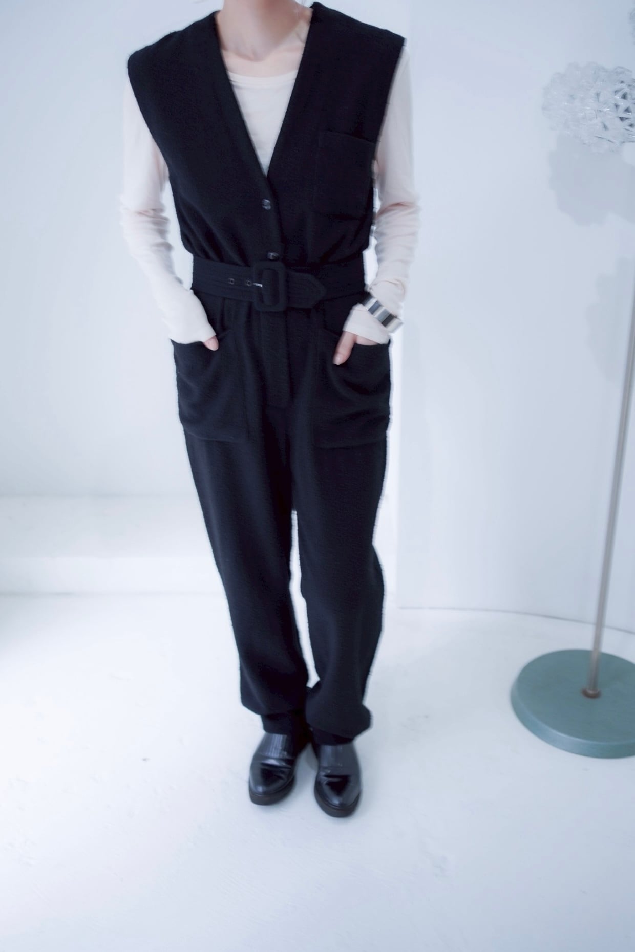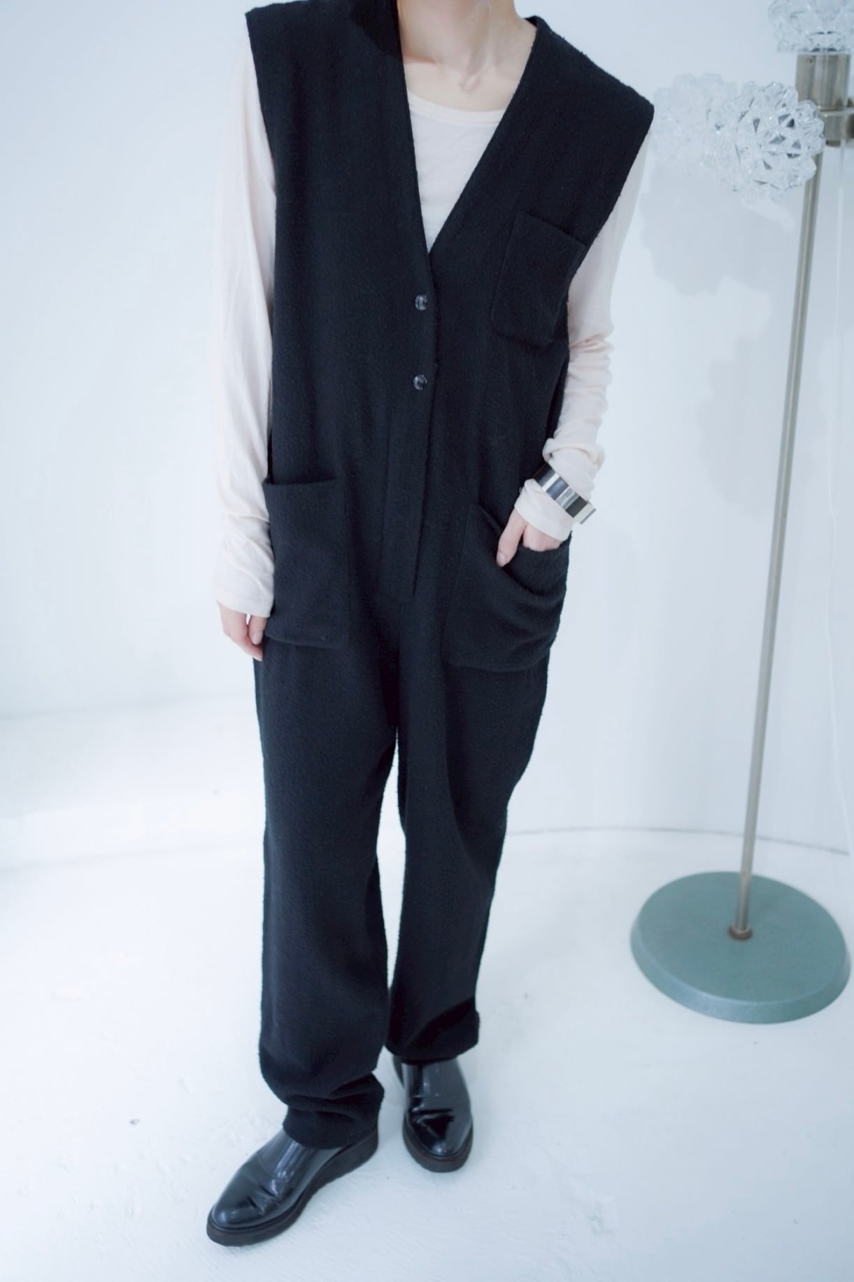 2way wool black jumpsuit