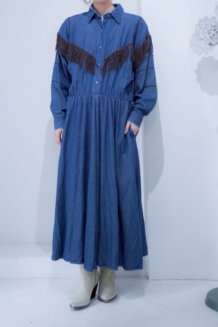 fringe design denim dress