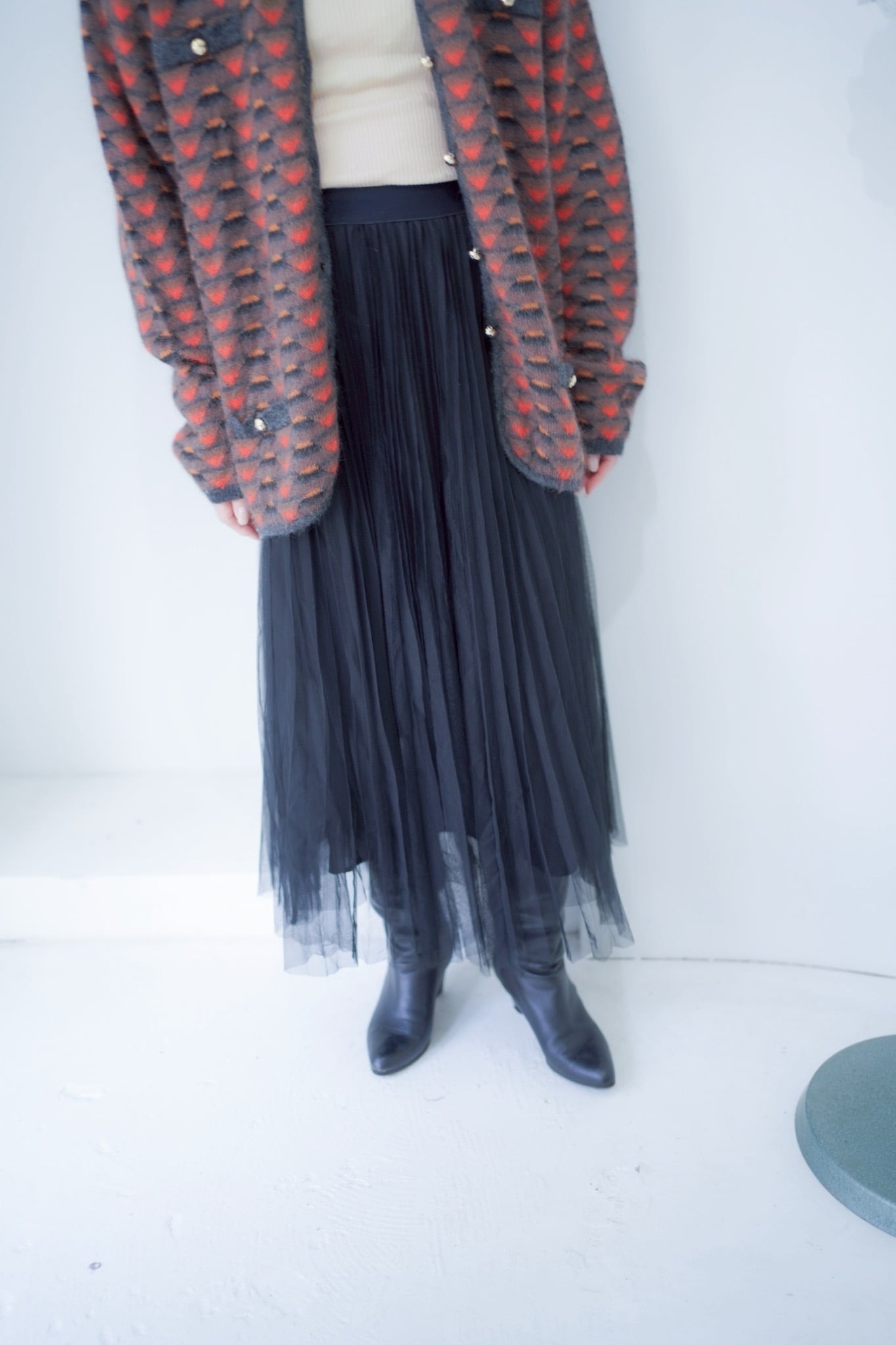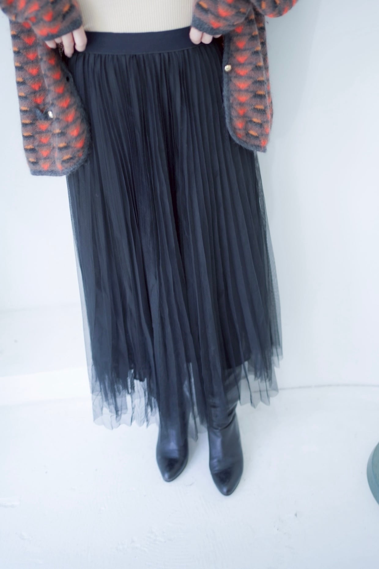 シャープな印象のチュールスカート。