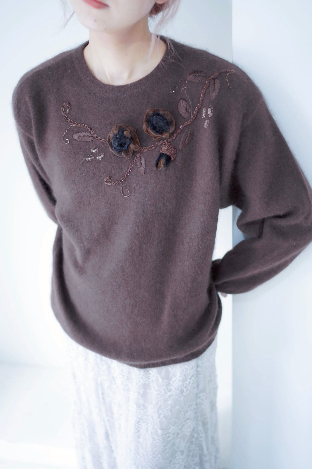 brown flower decoration knit