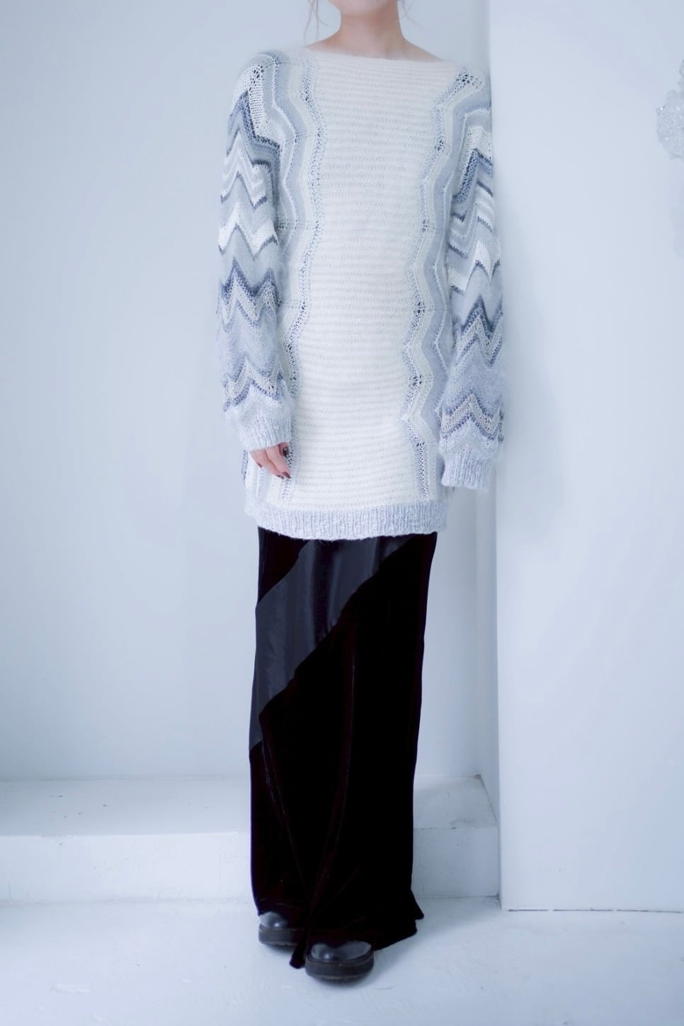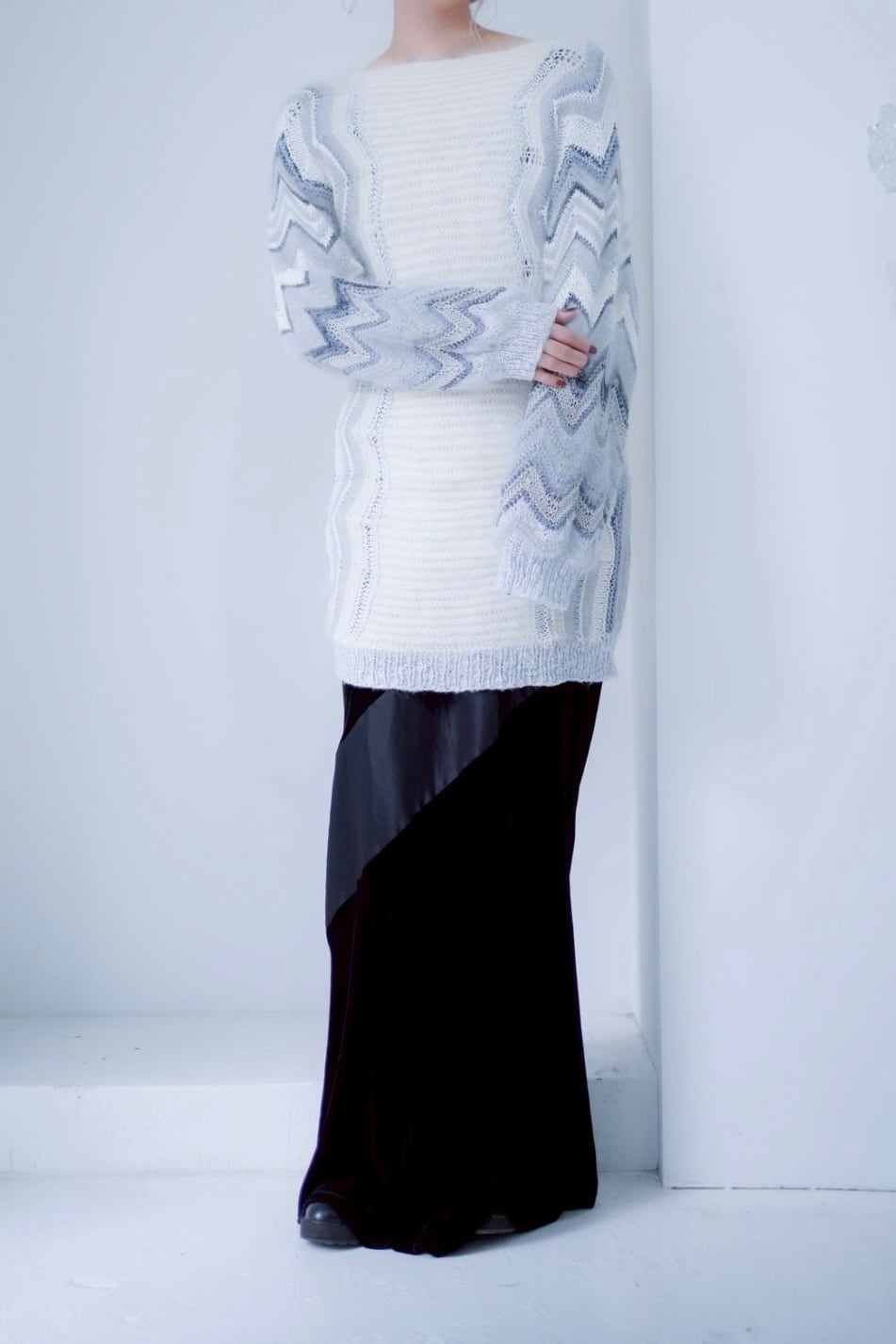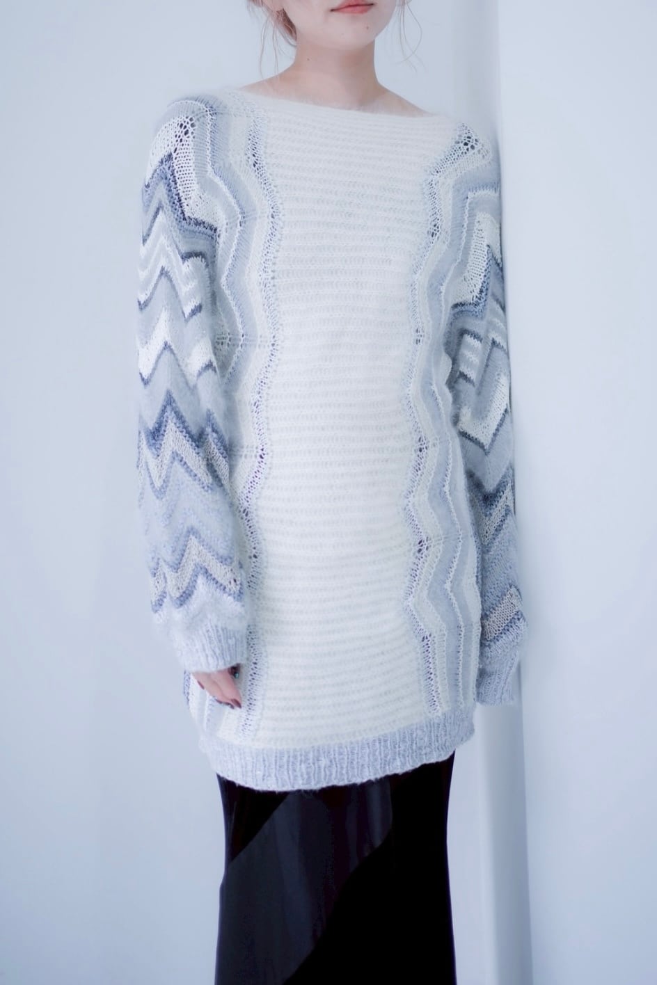 white mohair long knit