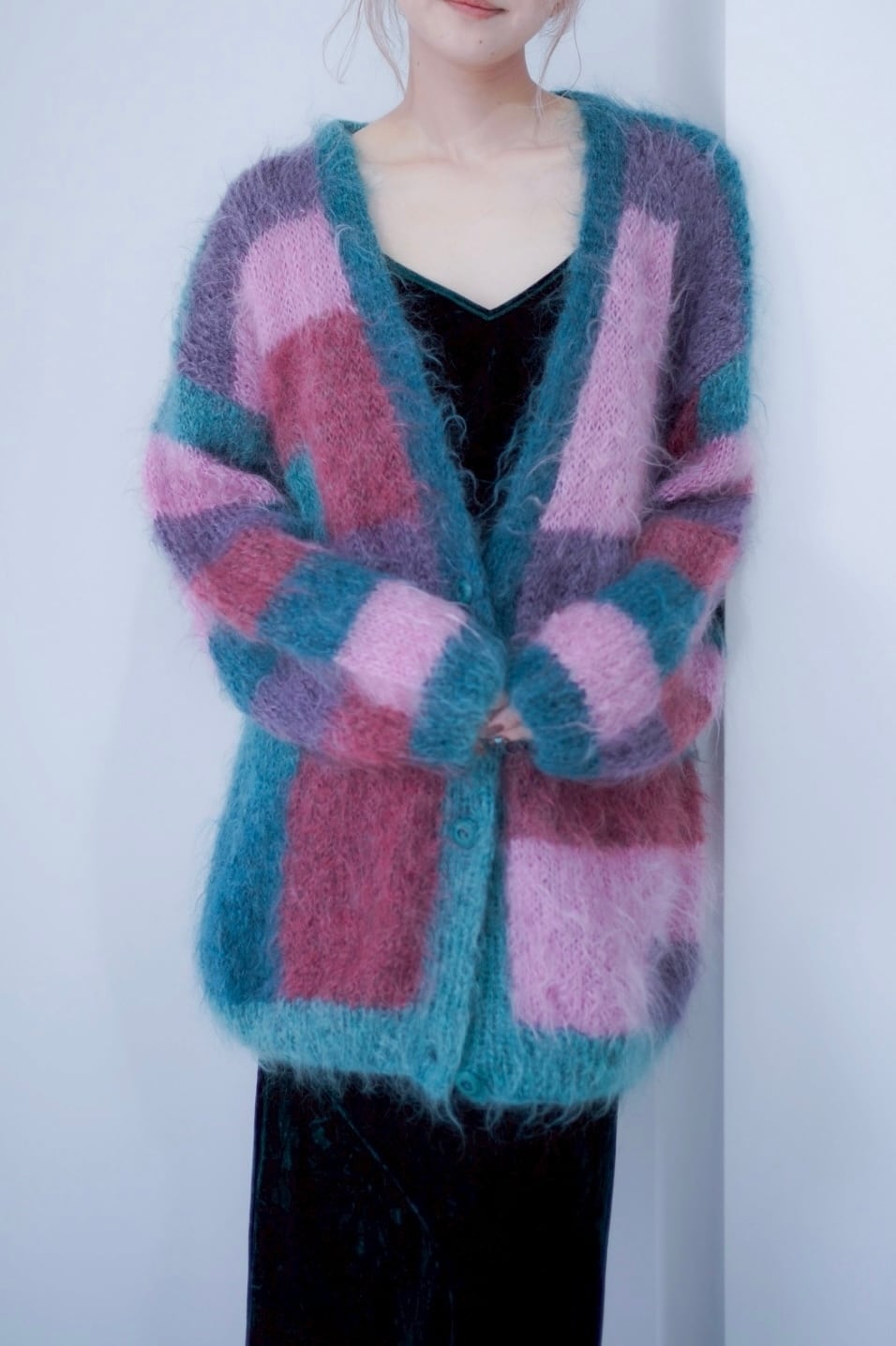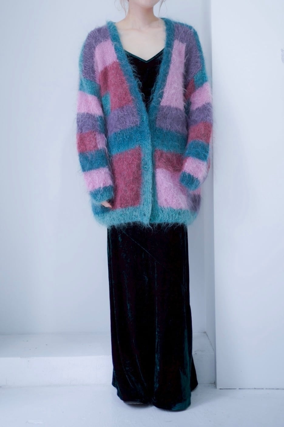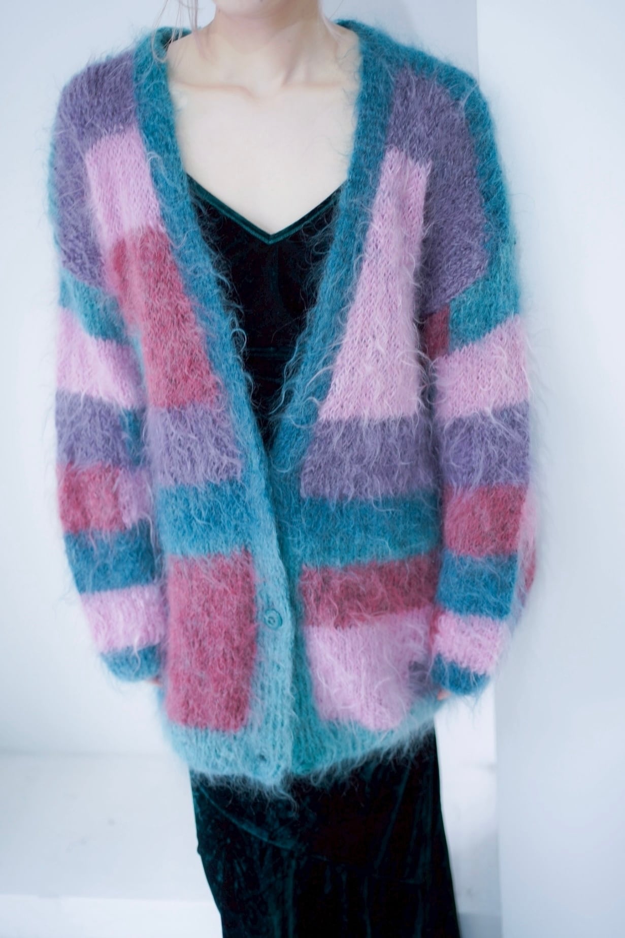 switching mohair knit cardigan
