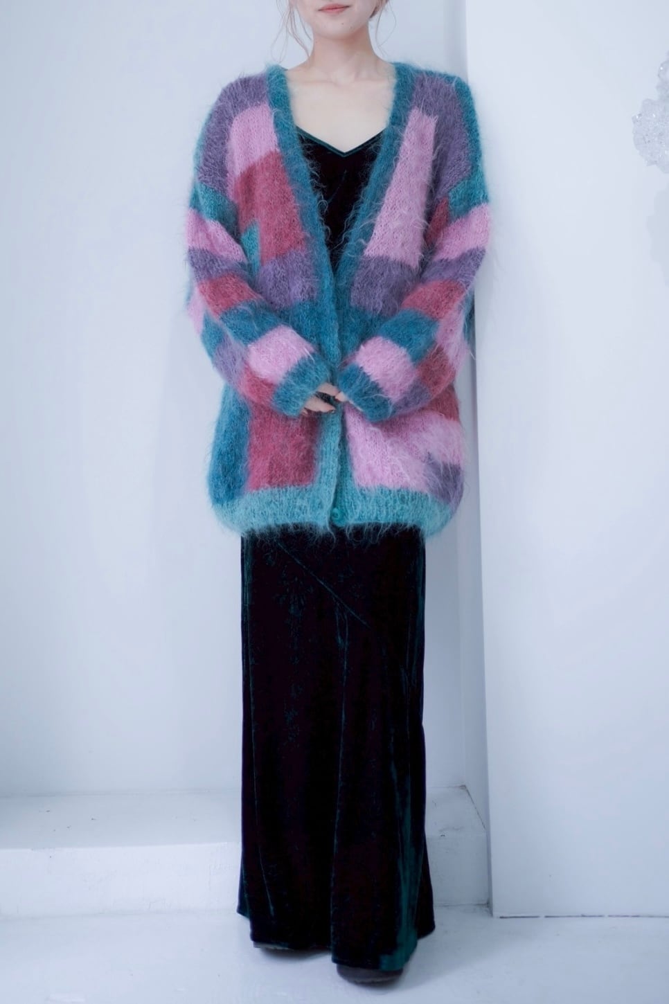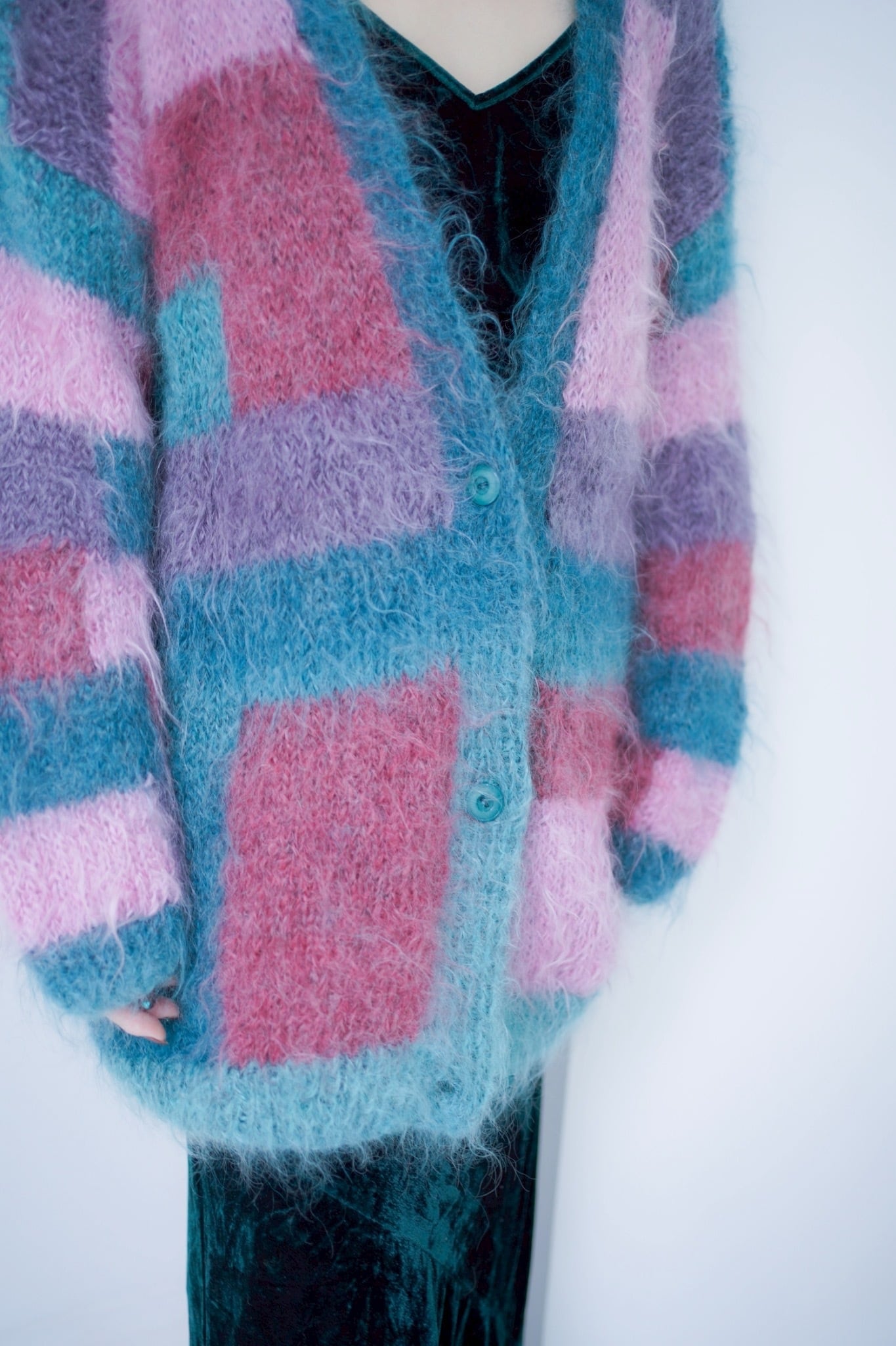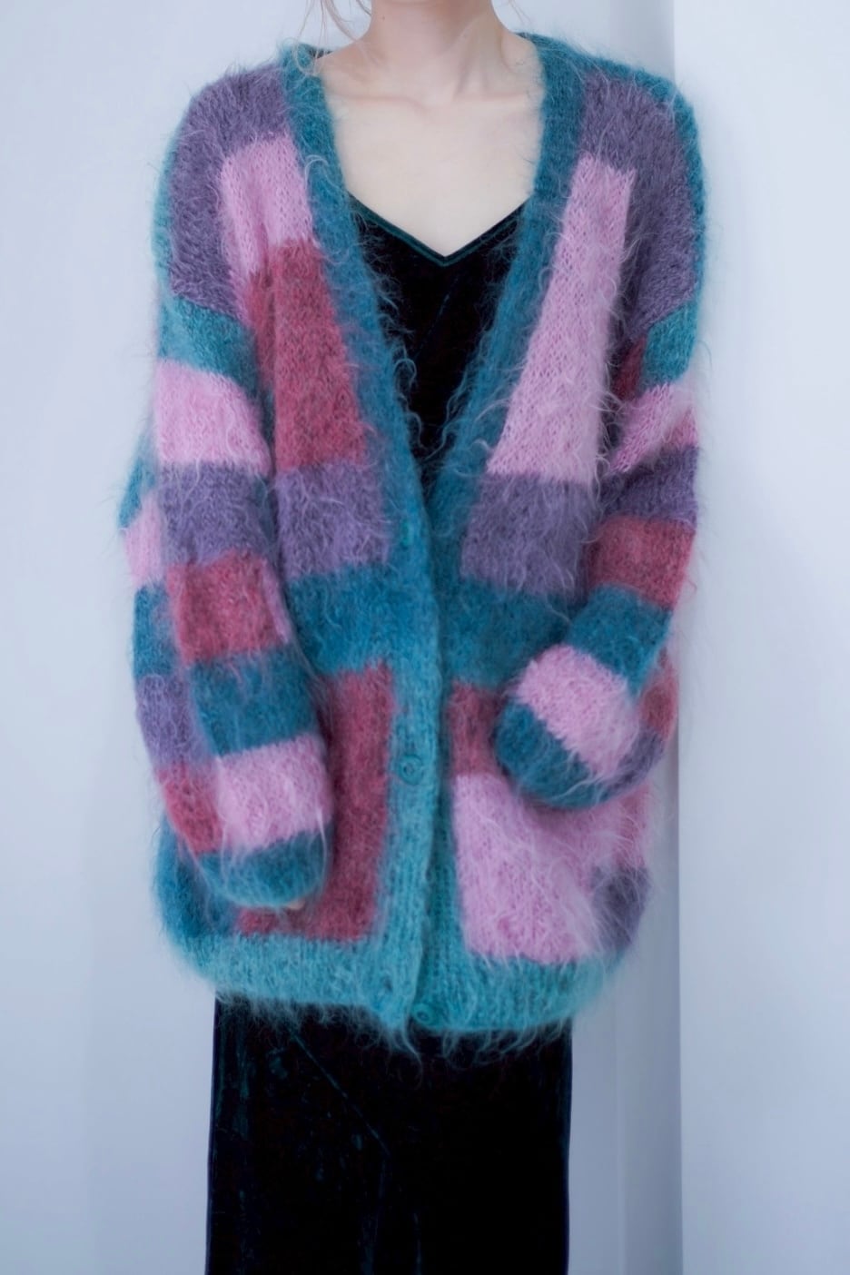 switching mohair knit cardigan
