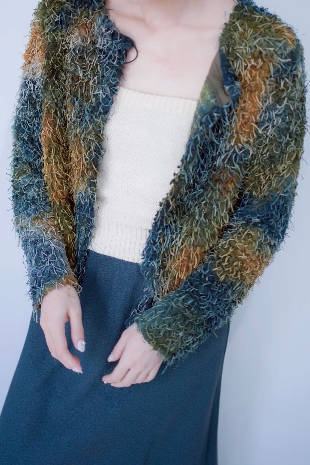 shaggy gradation fringe cardigan