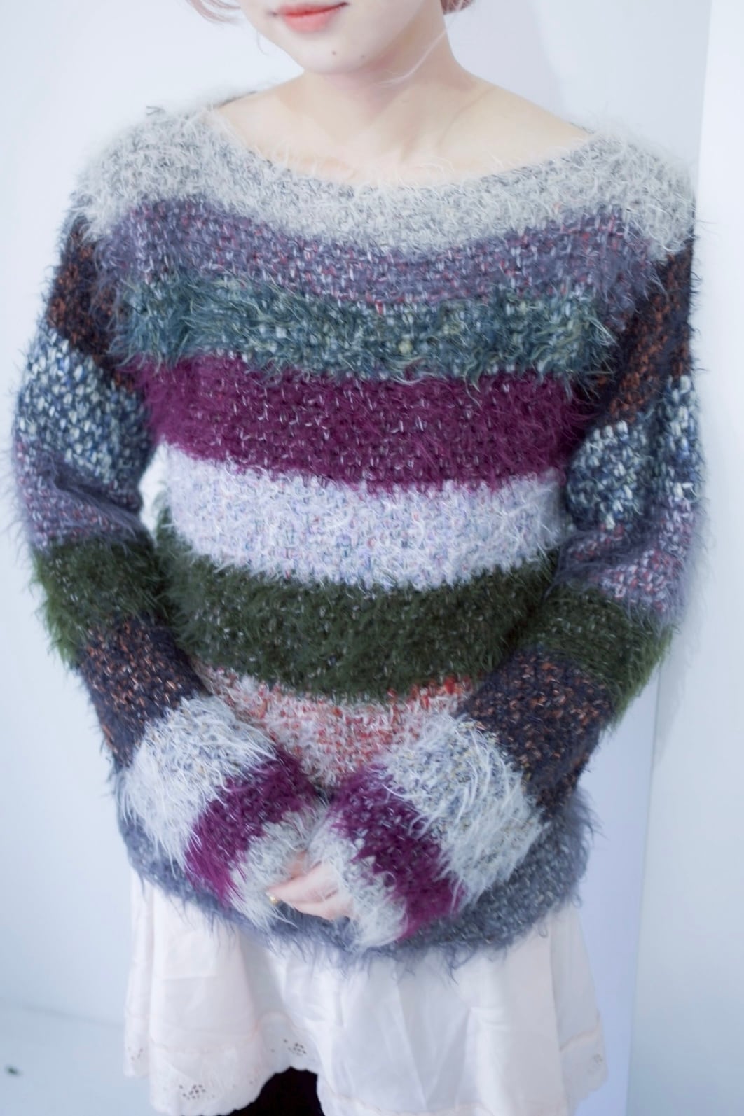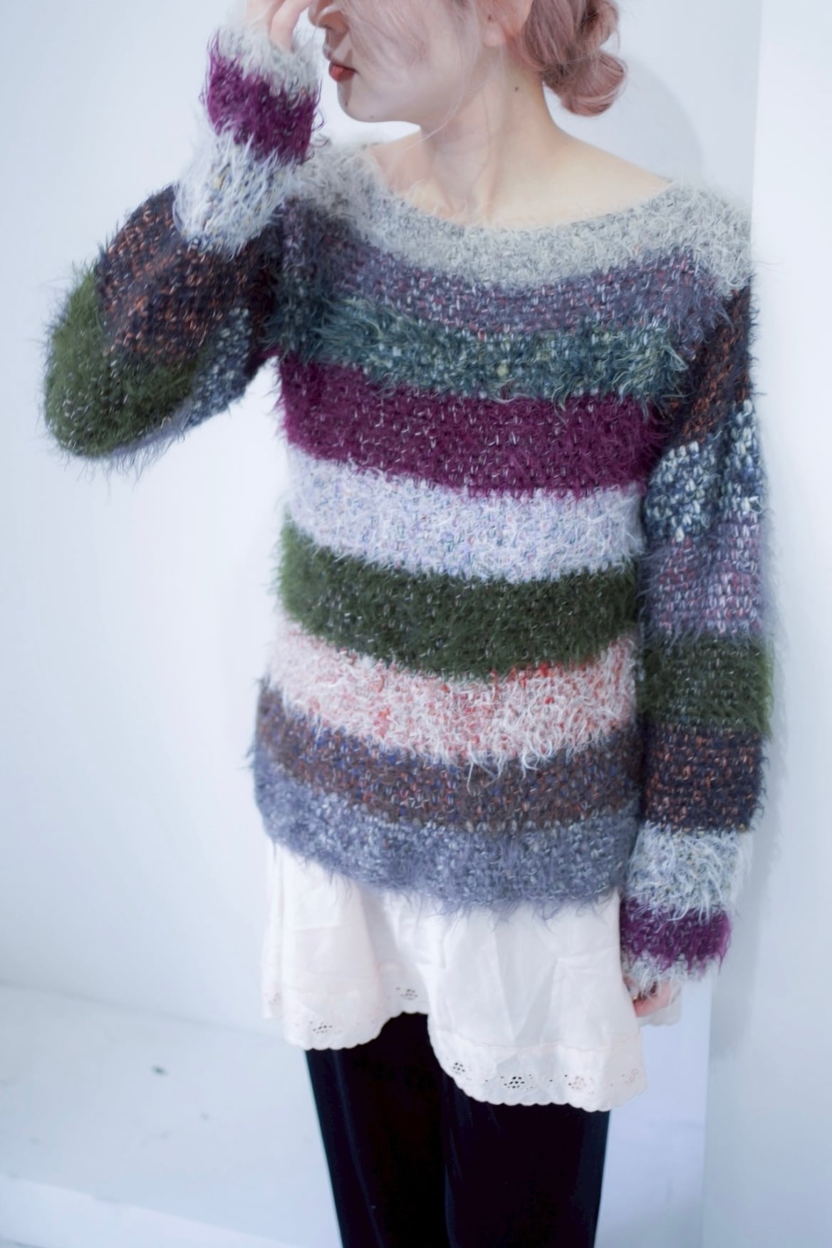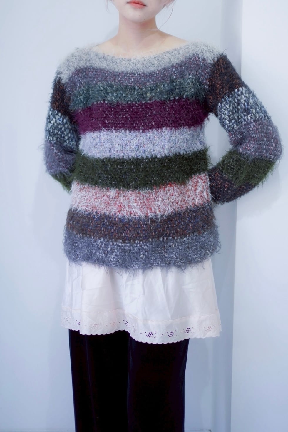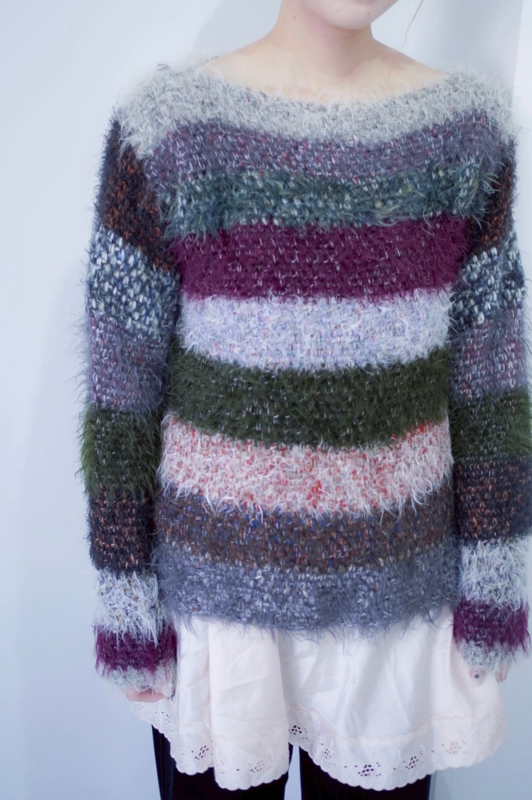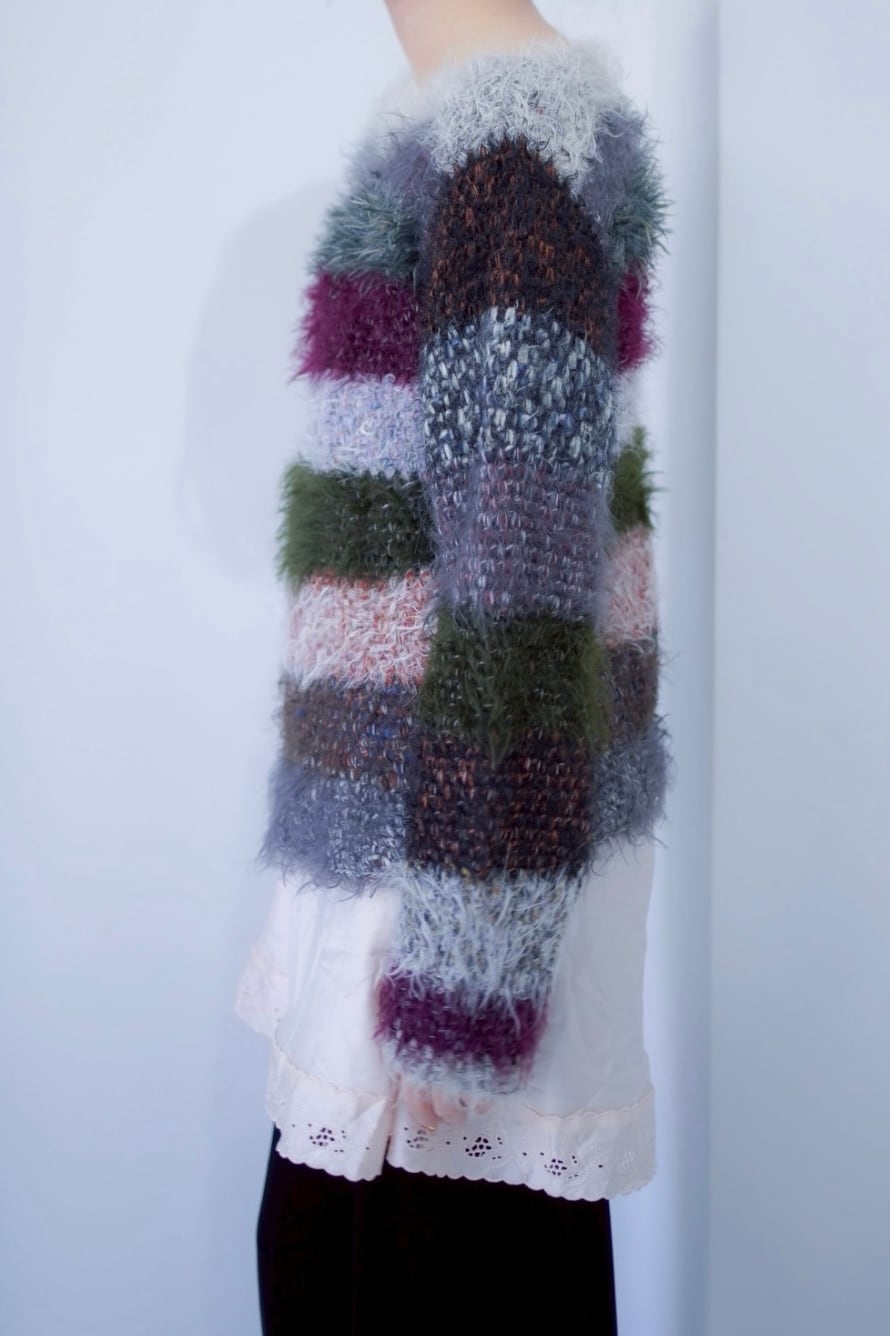 mix color shaggy boarder knit