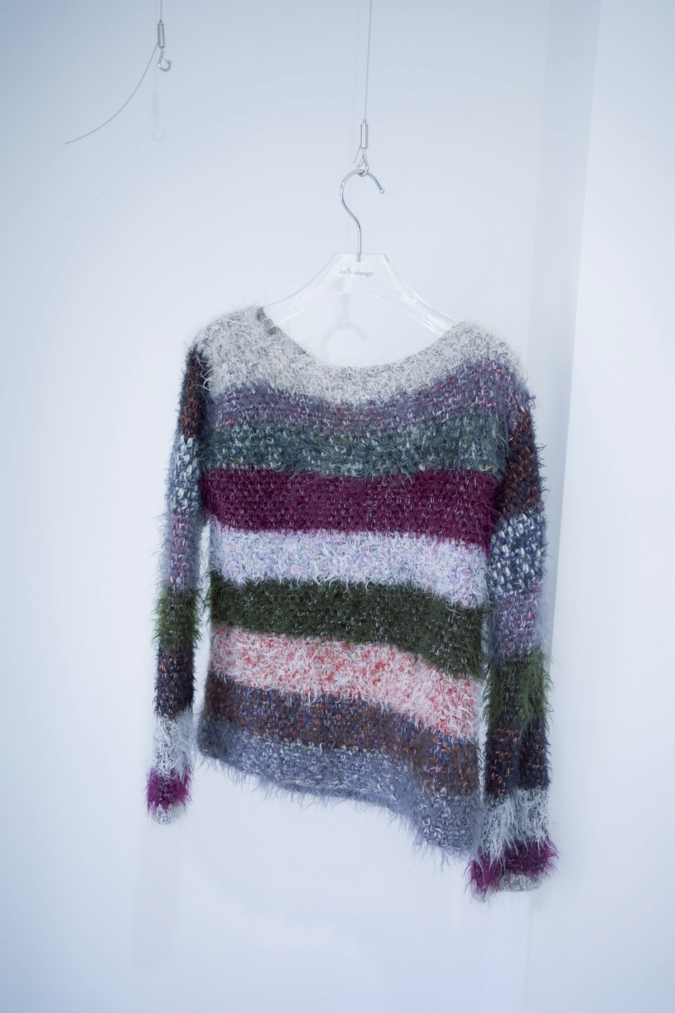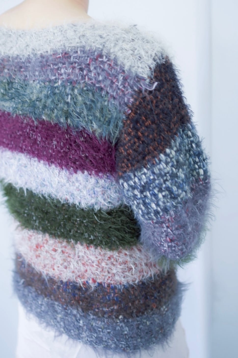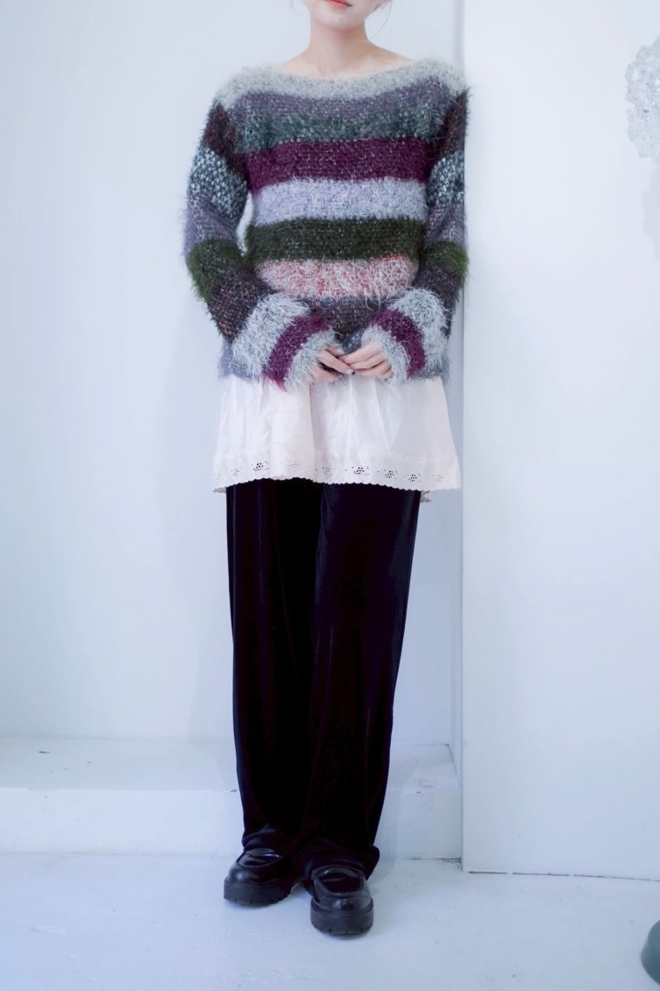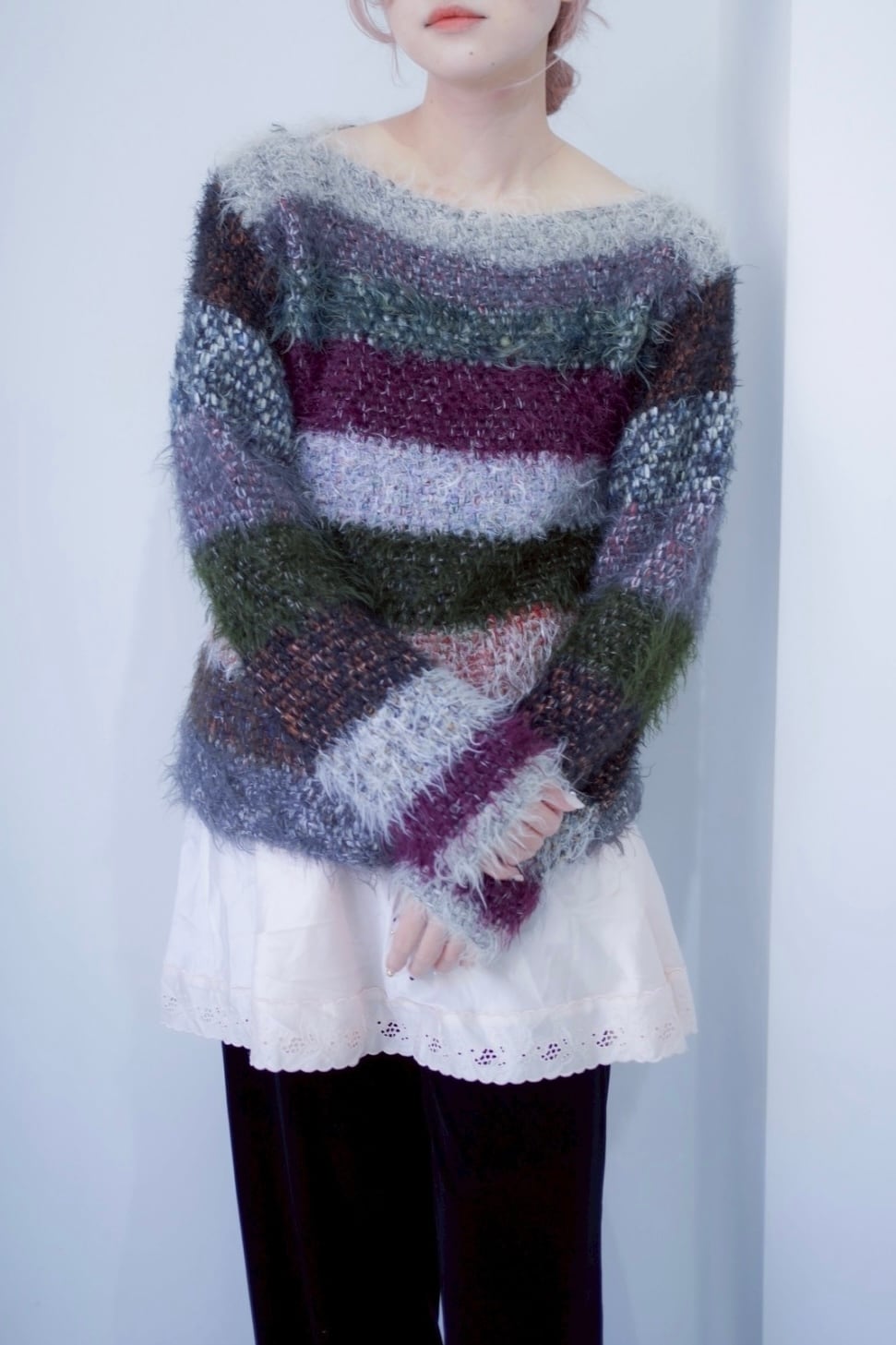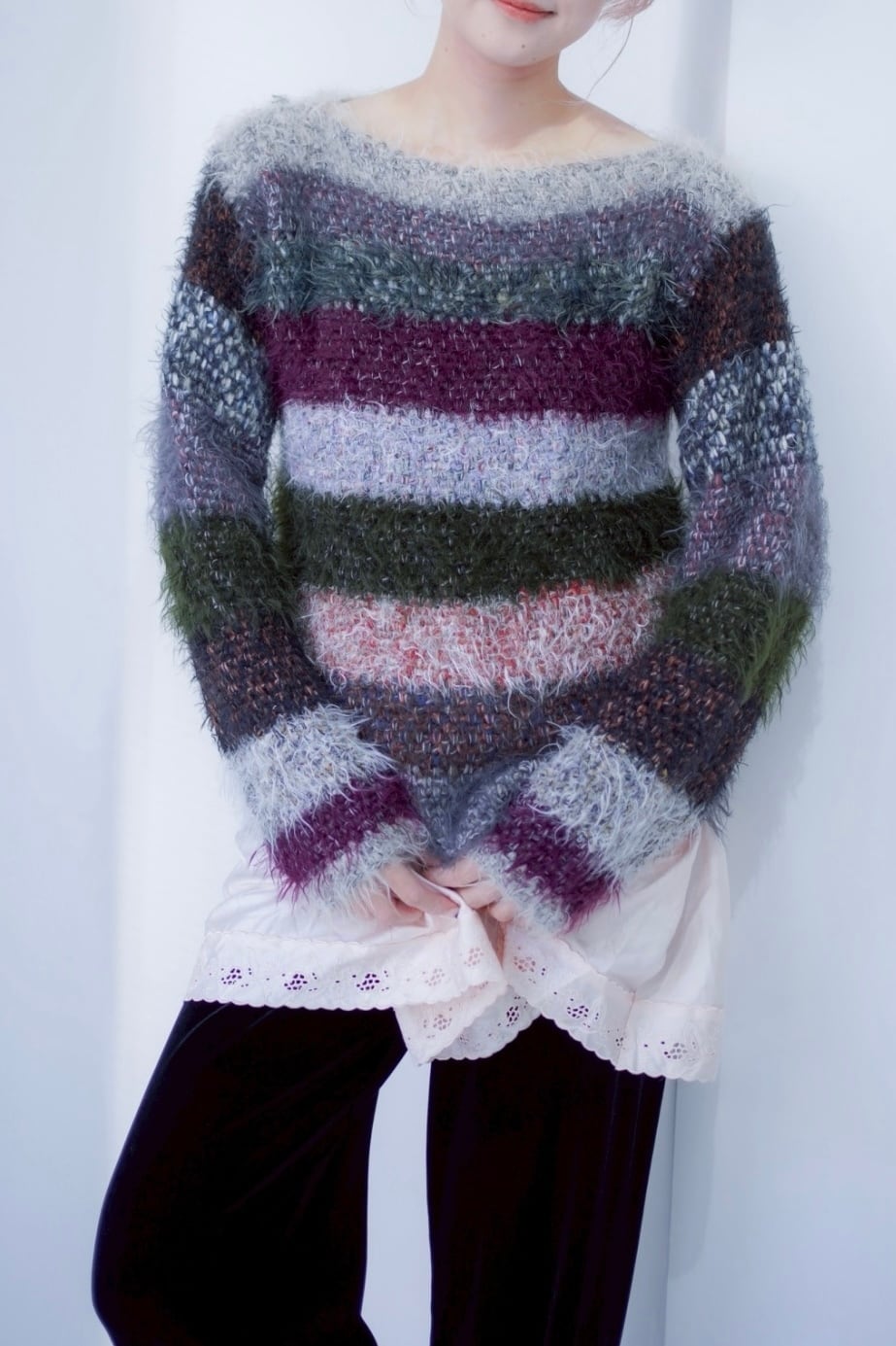 mix color shaggy boarder knit