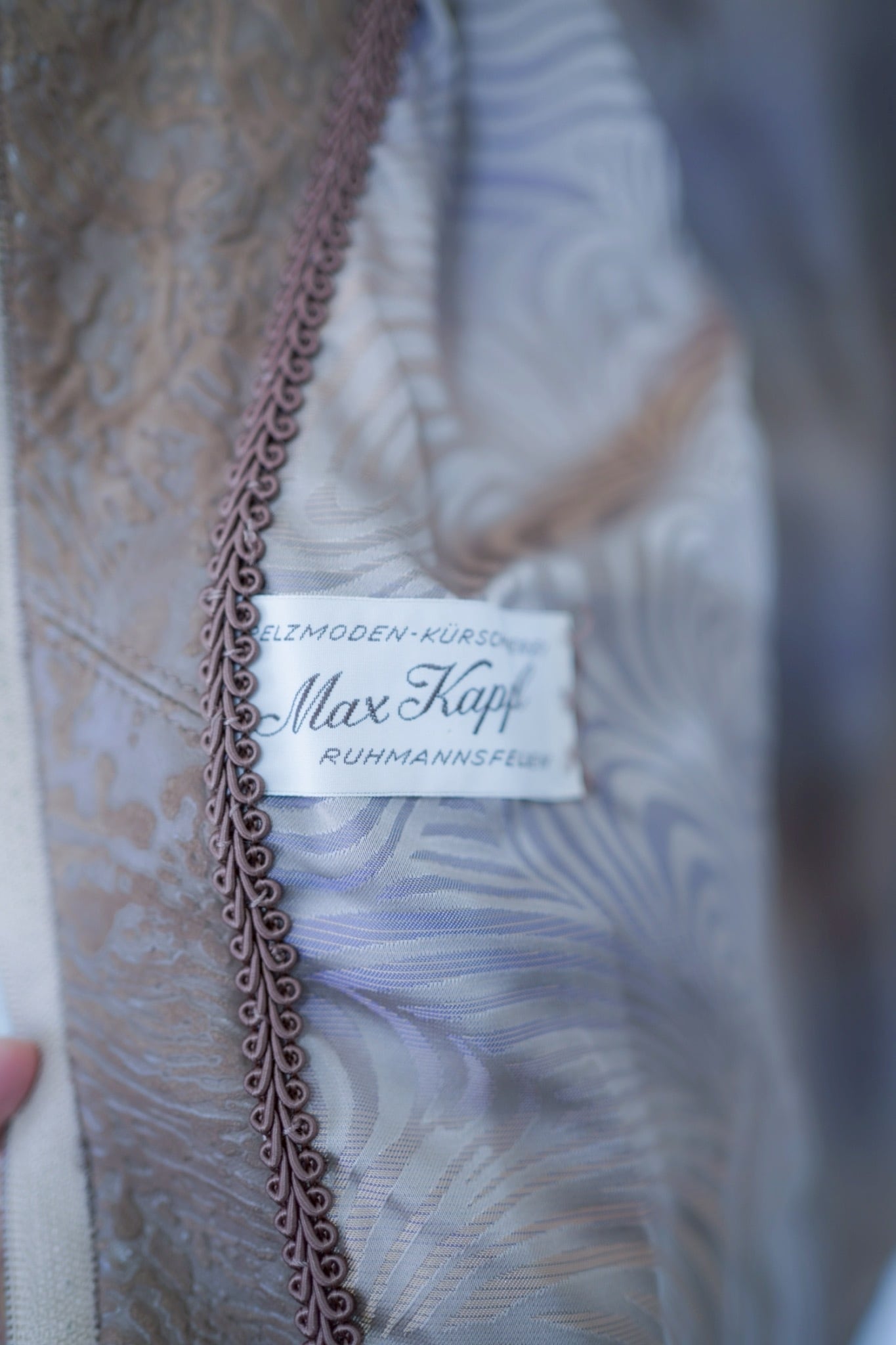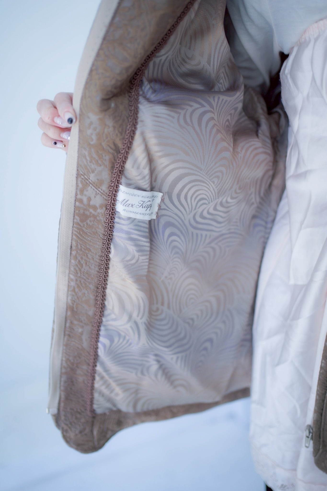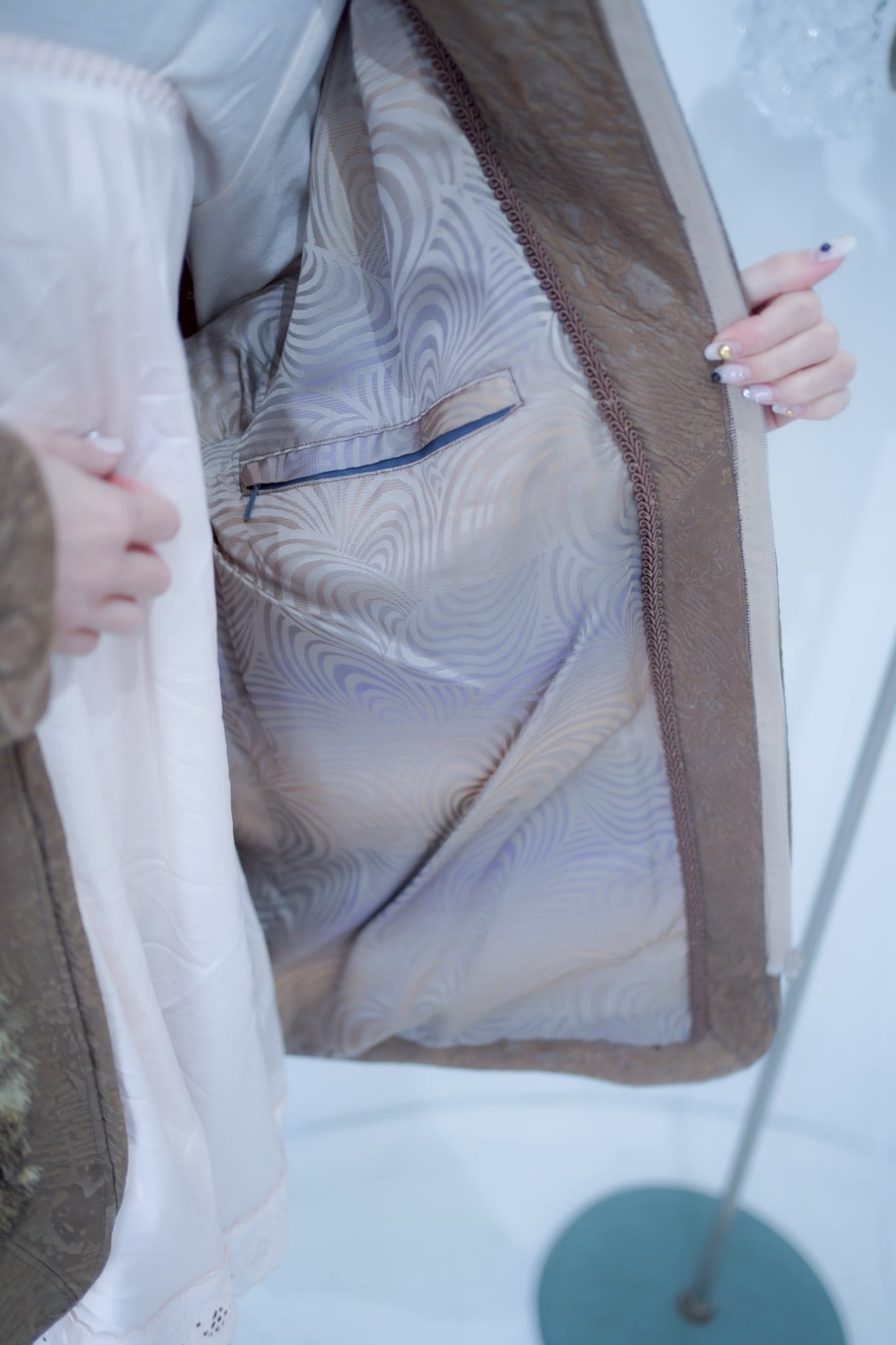 裏地のプリントまで素敵で抜かり無い一着。