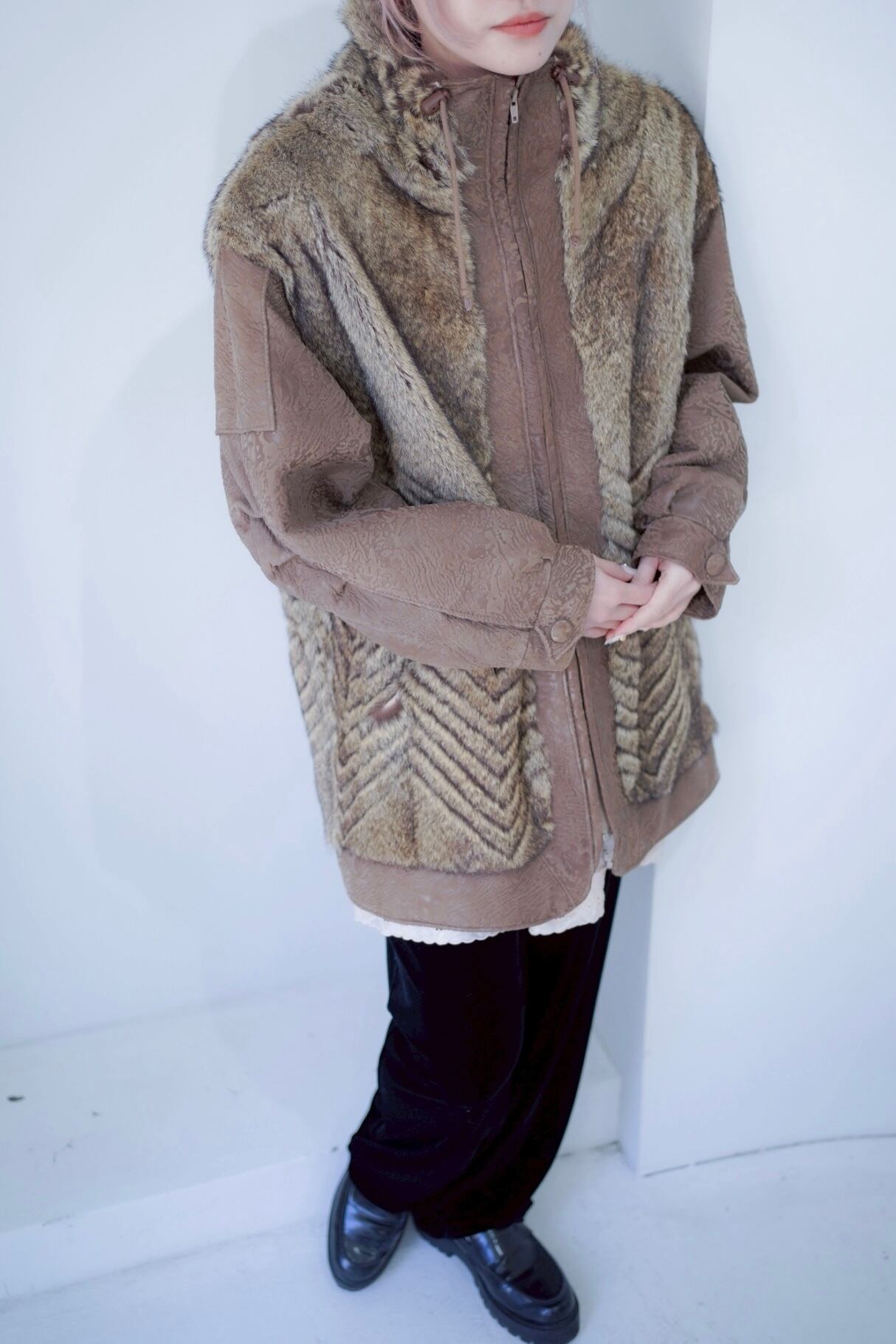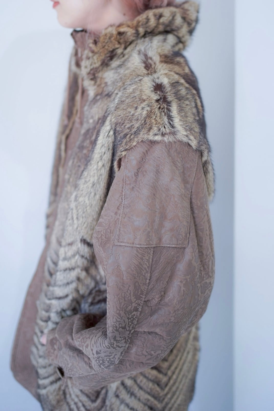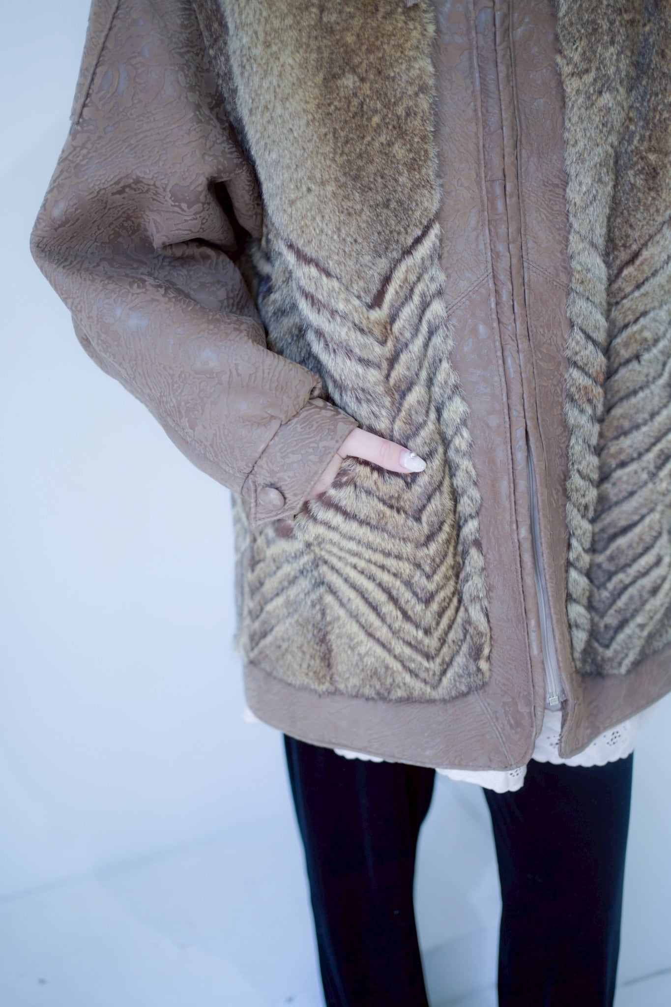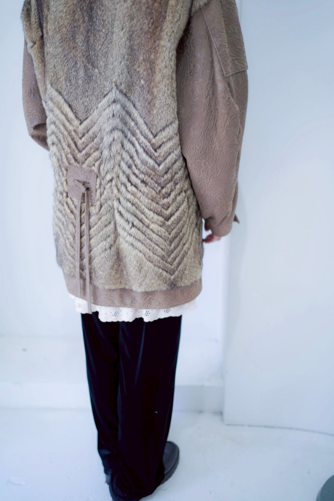 leather fur switching coat