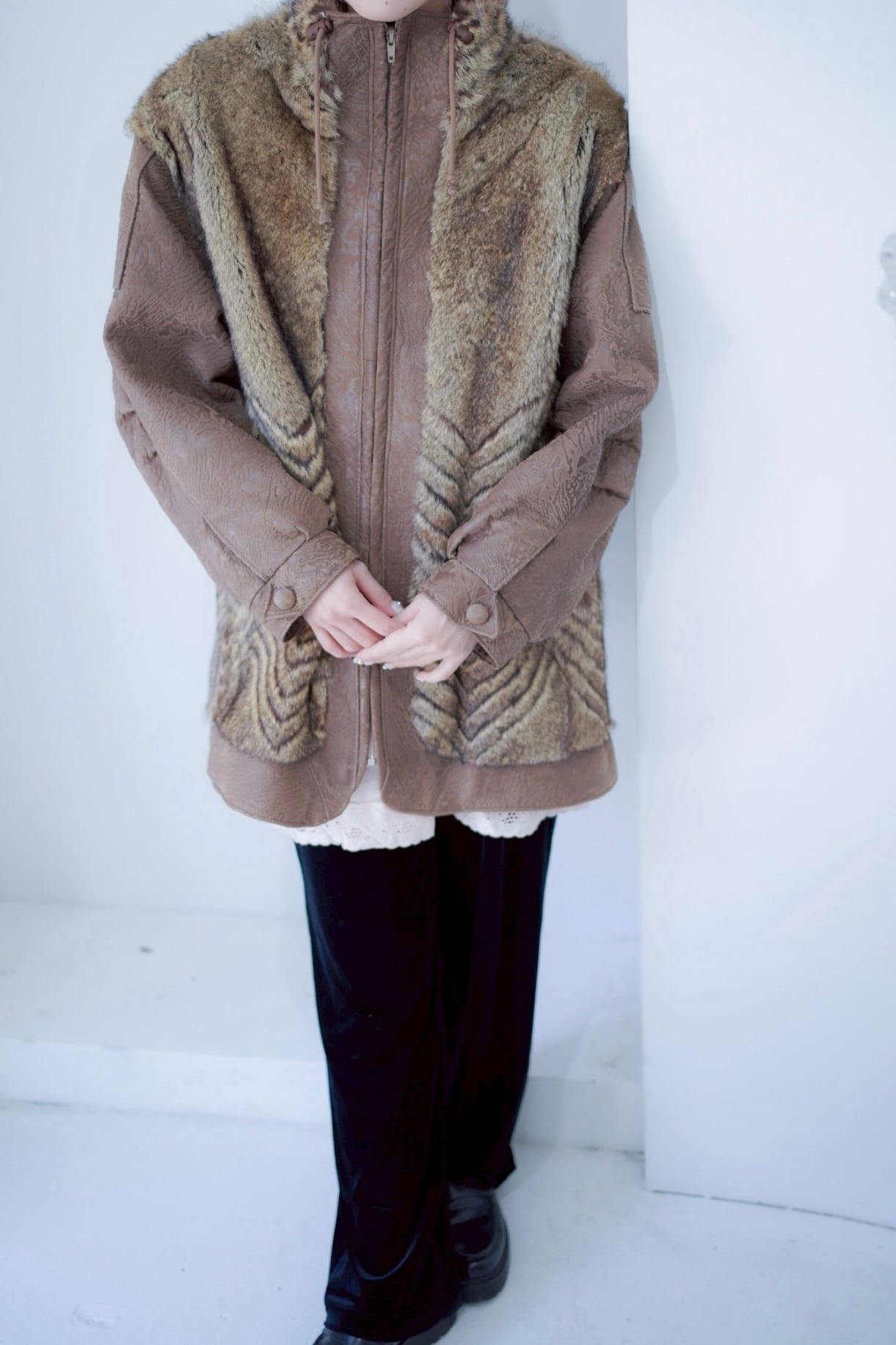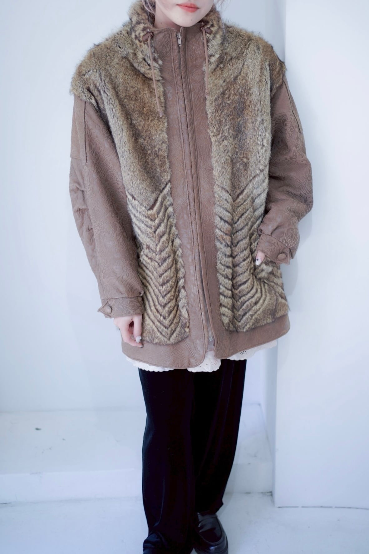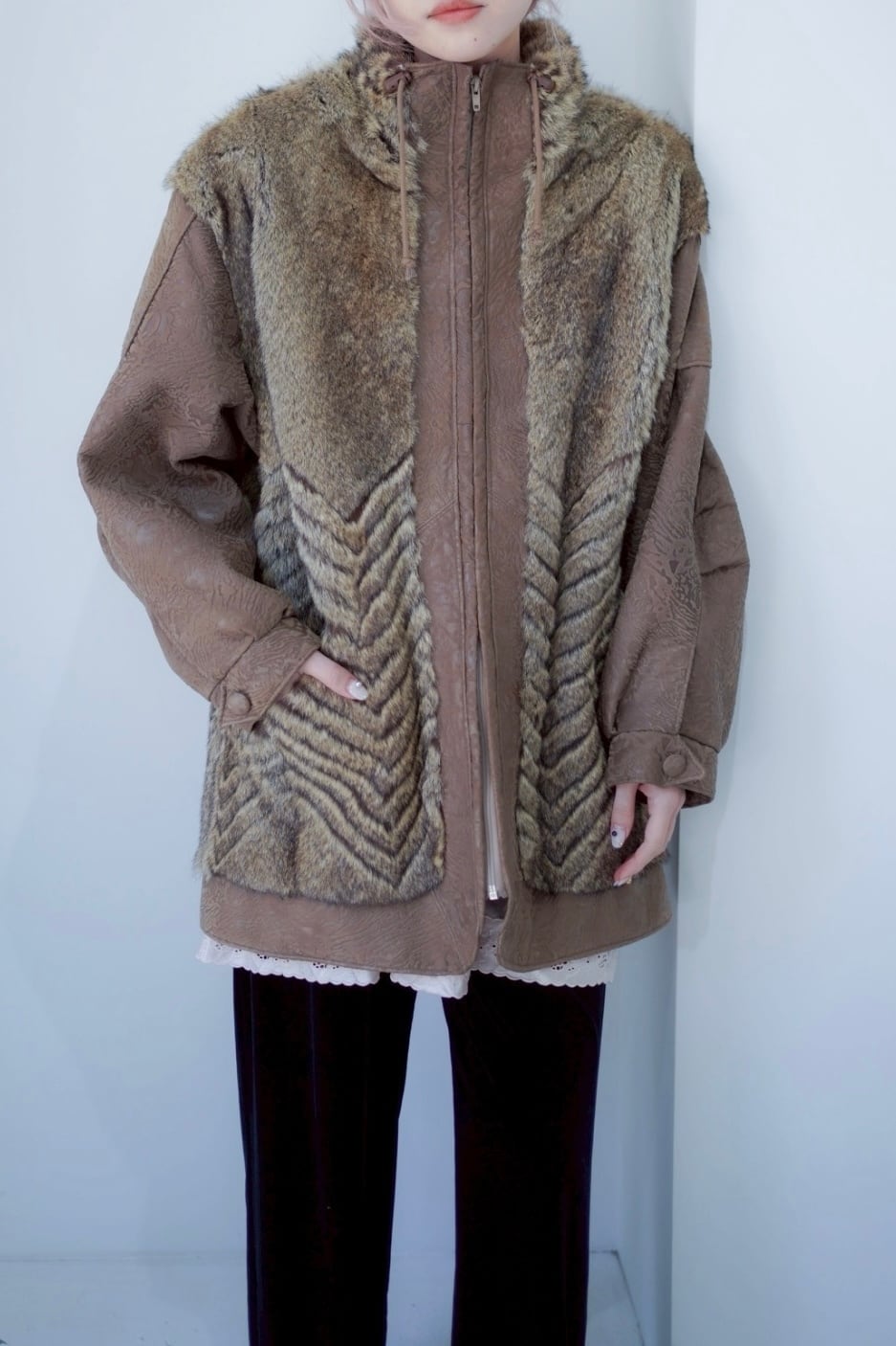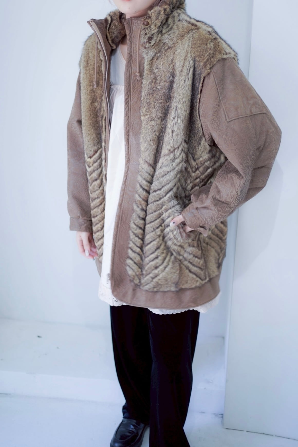 leather fur switching coat