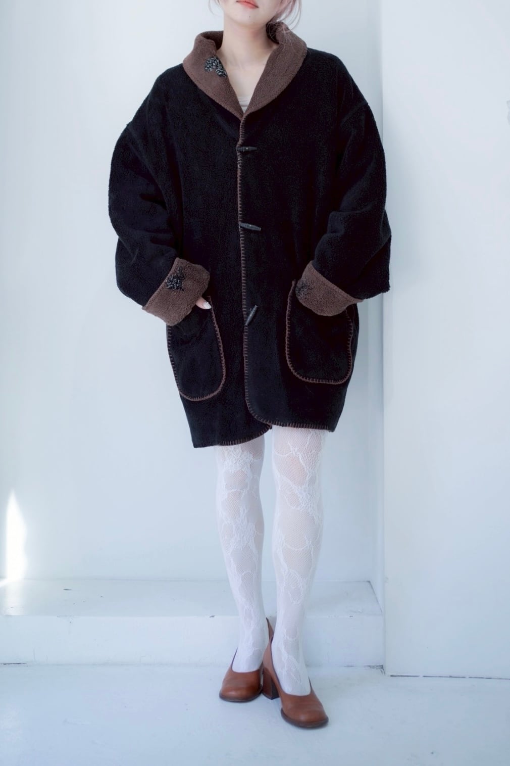 二重に重なったボアのような厚手のフリース生地なのでとても軽くて暖かいです◎