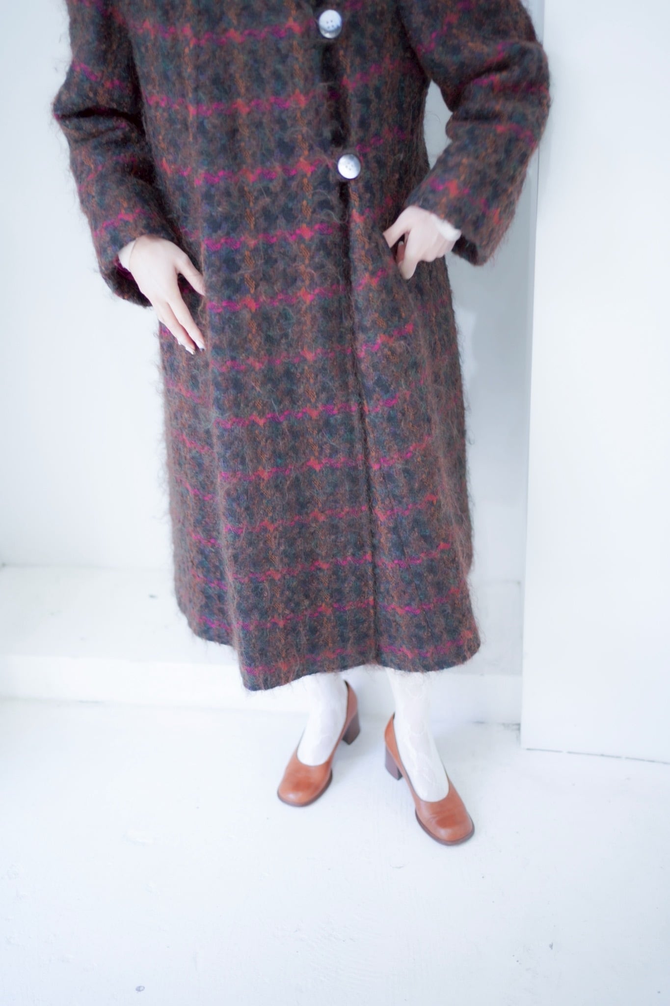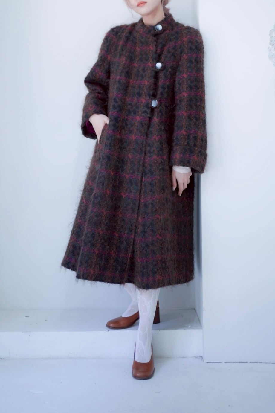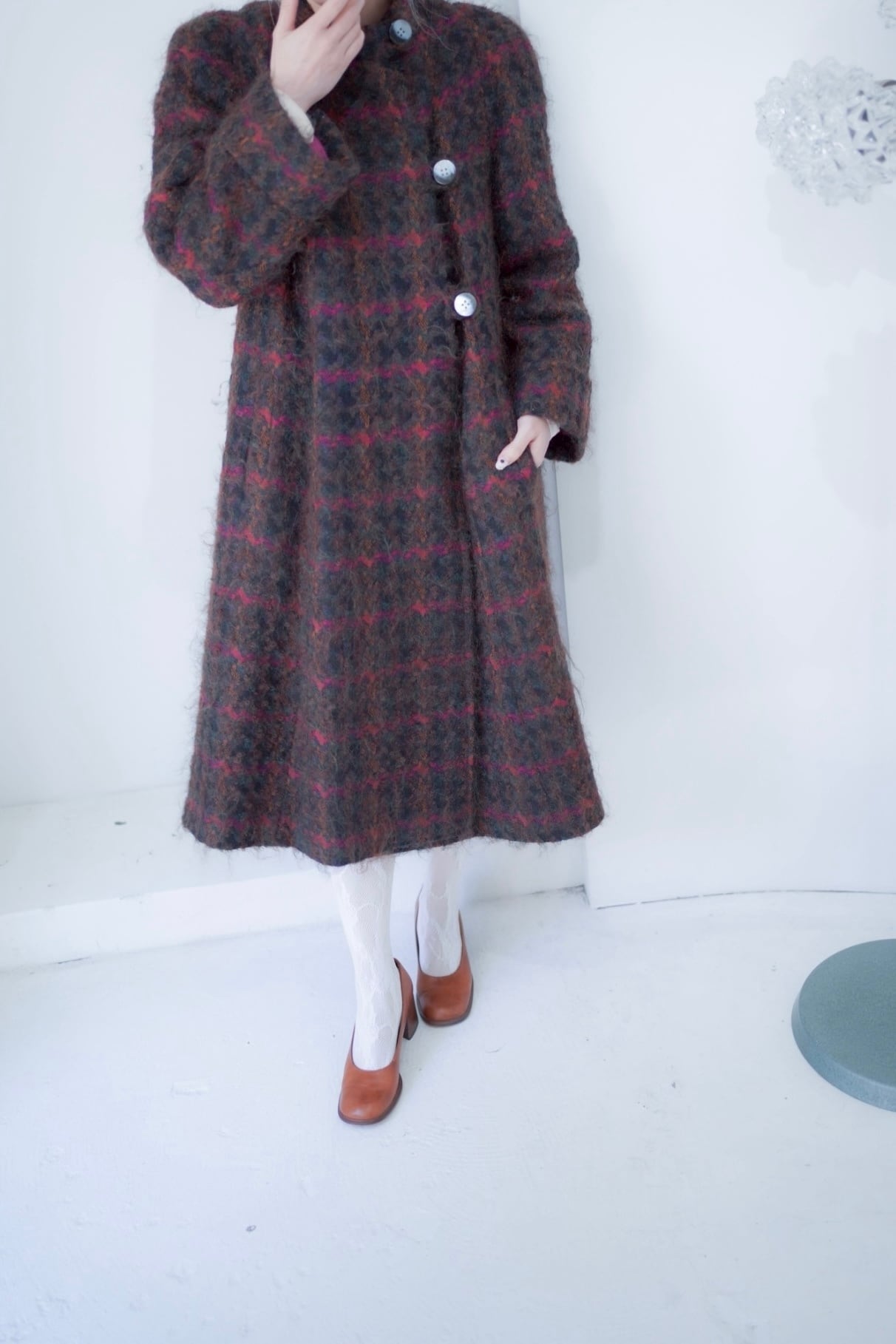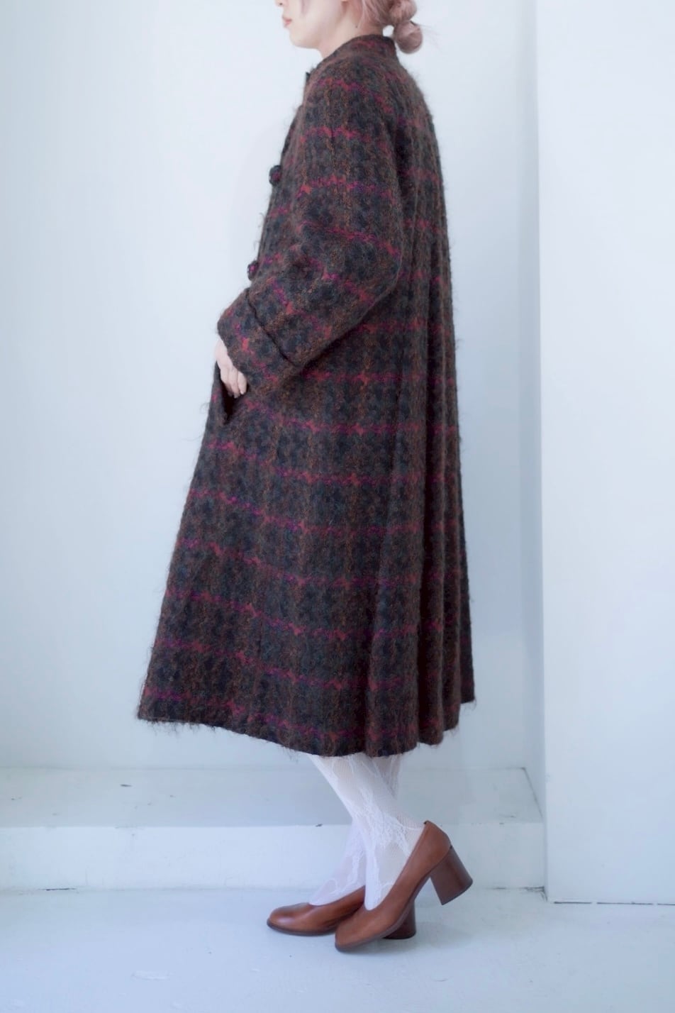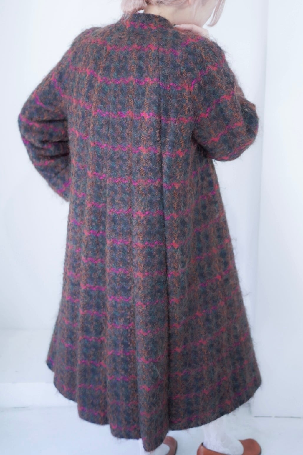 ような素敵な生地のフレアコート。