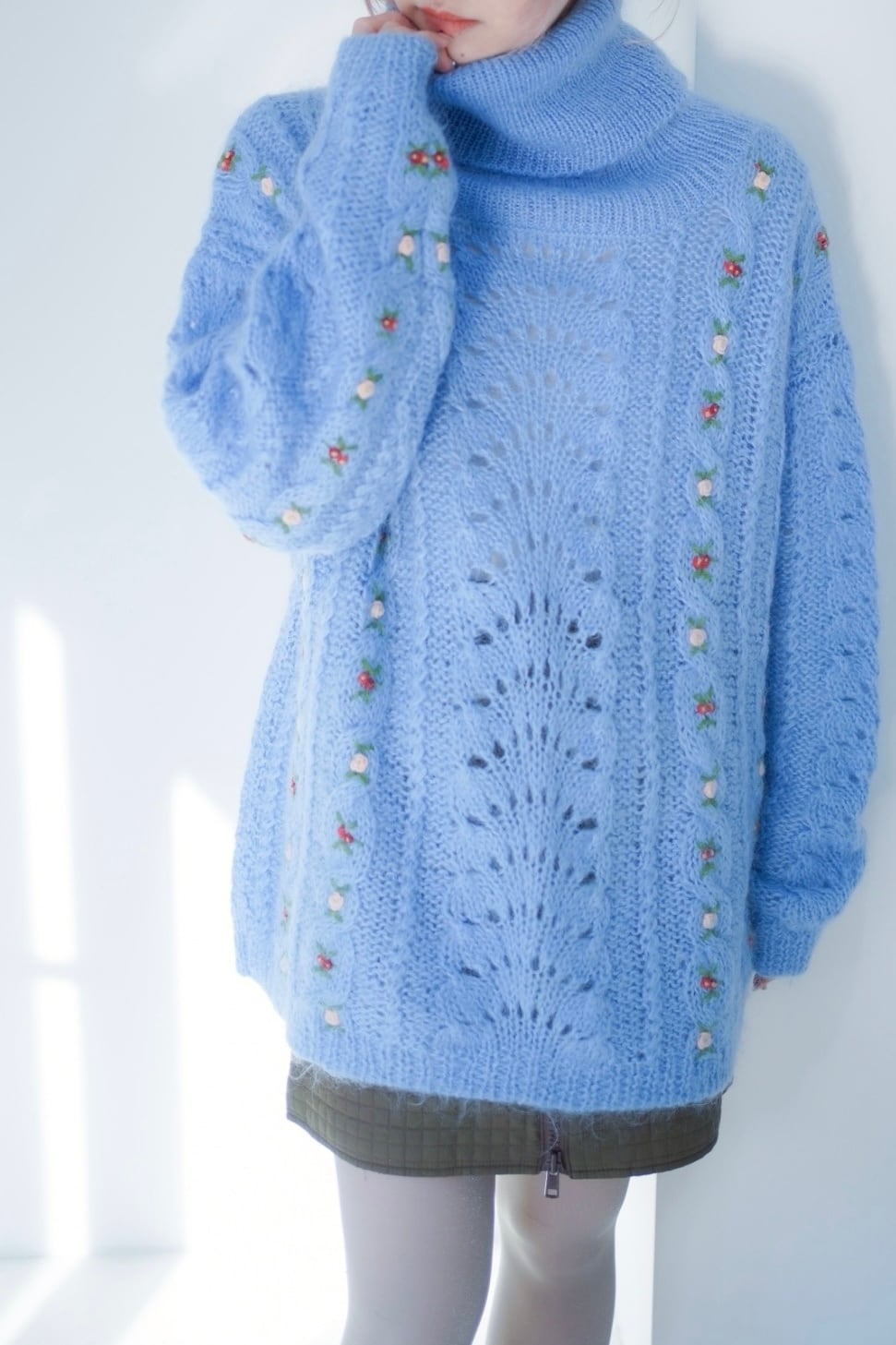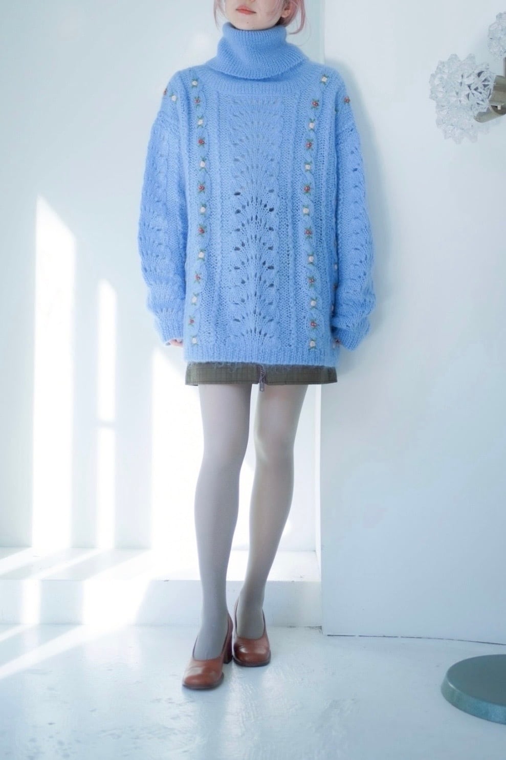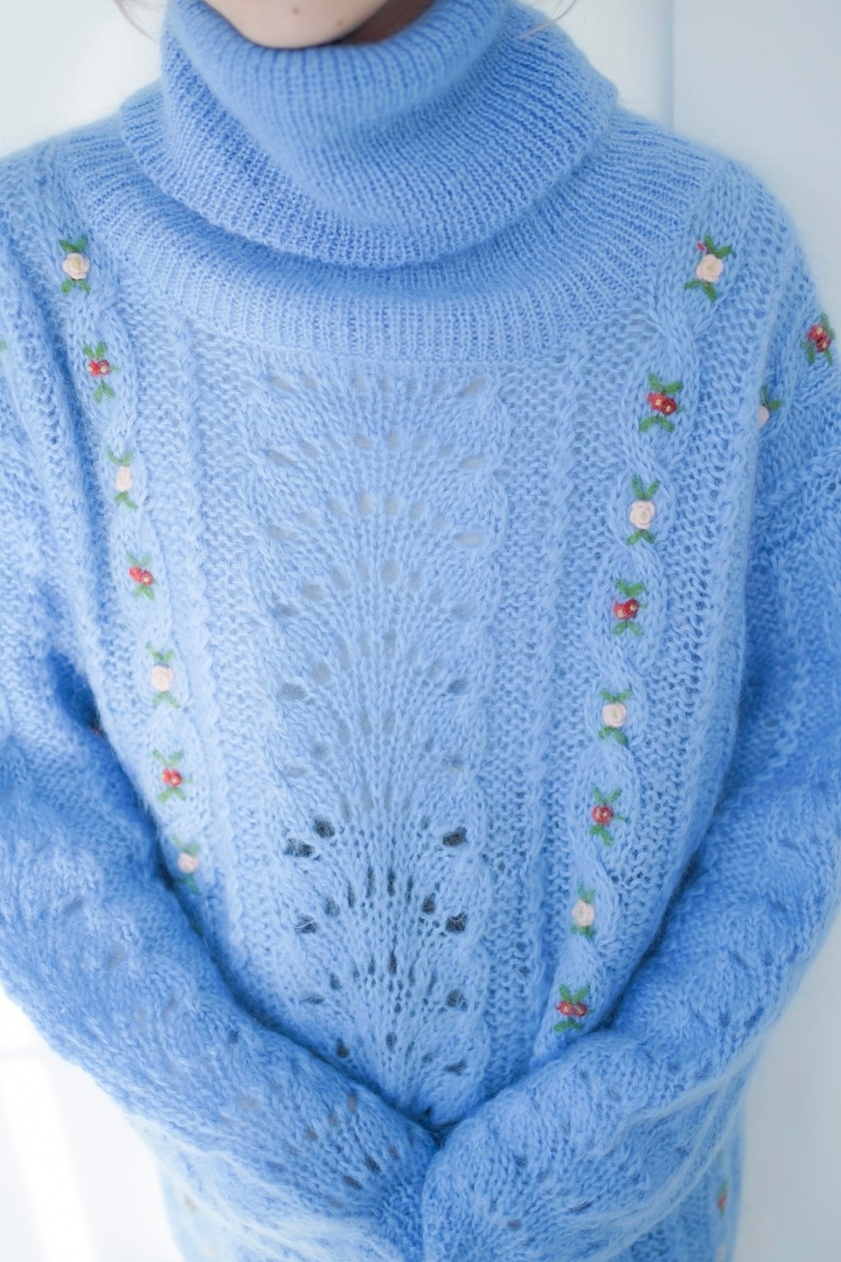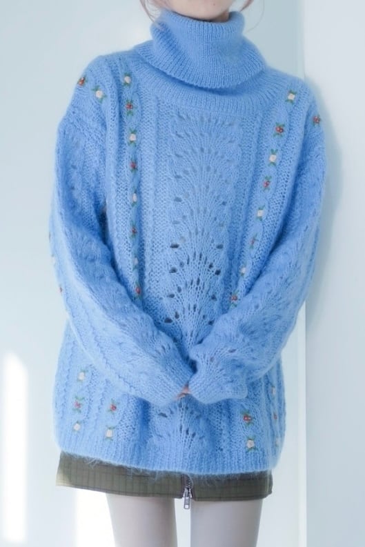 モヘアニットには小さなフラワー