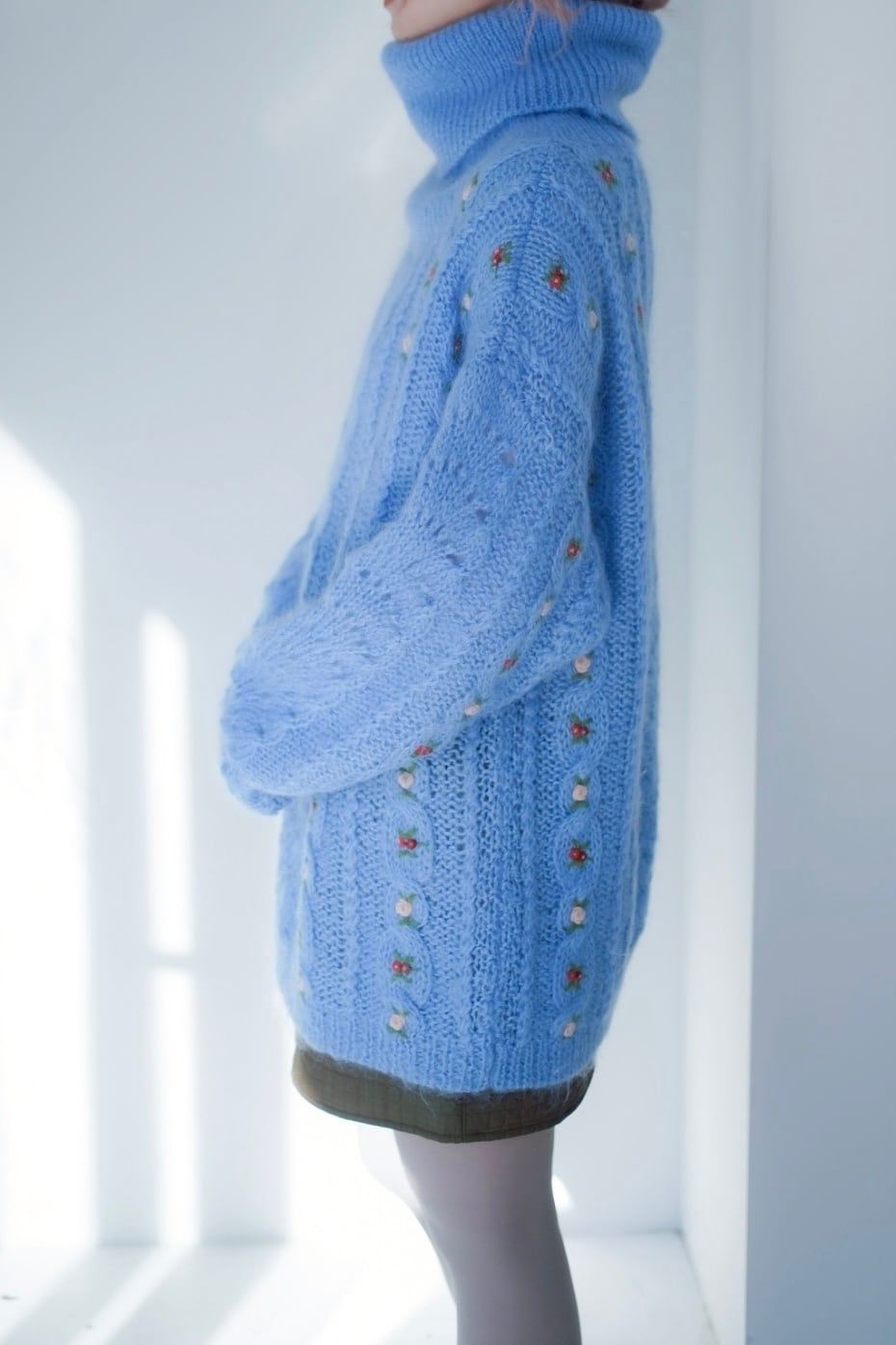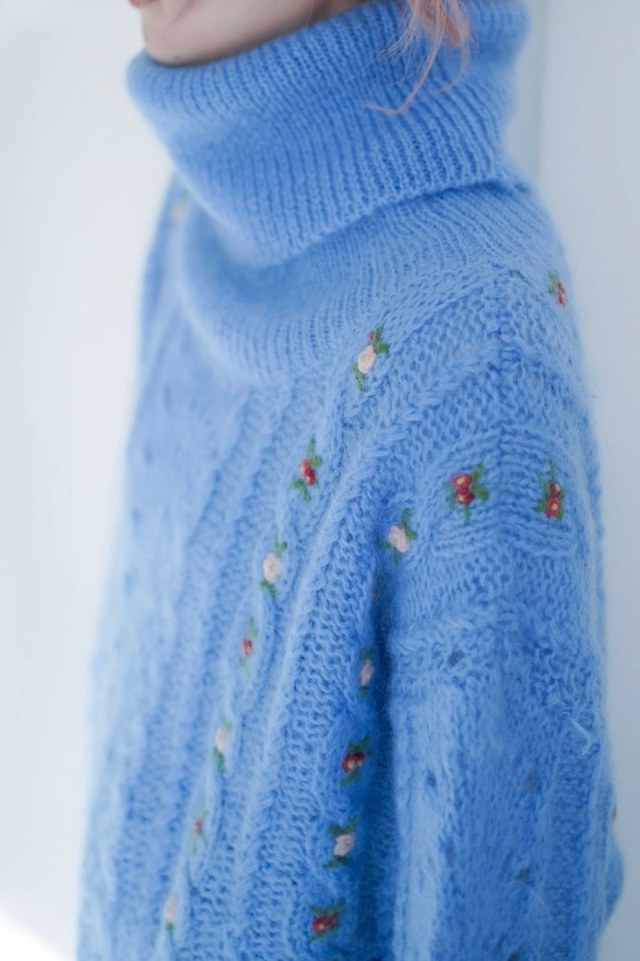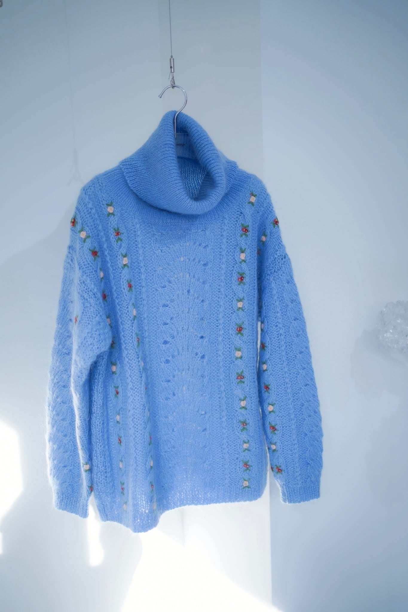 モヘアニットには小さなフラワー