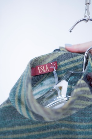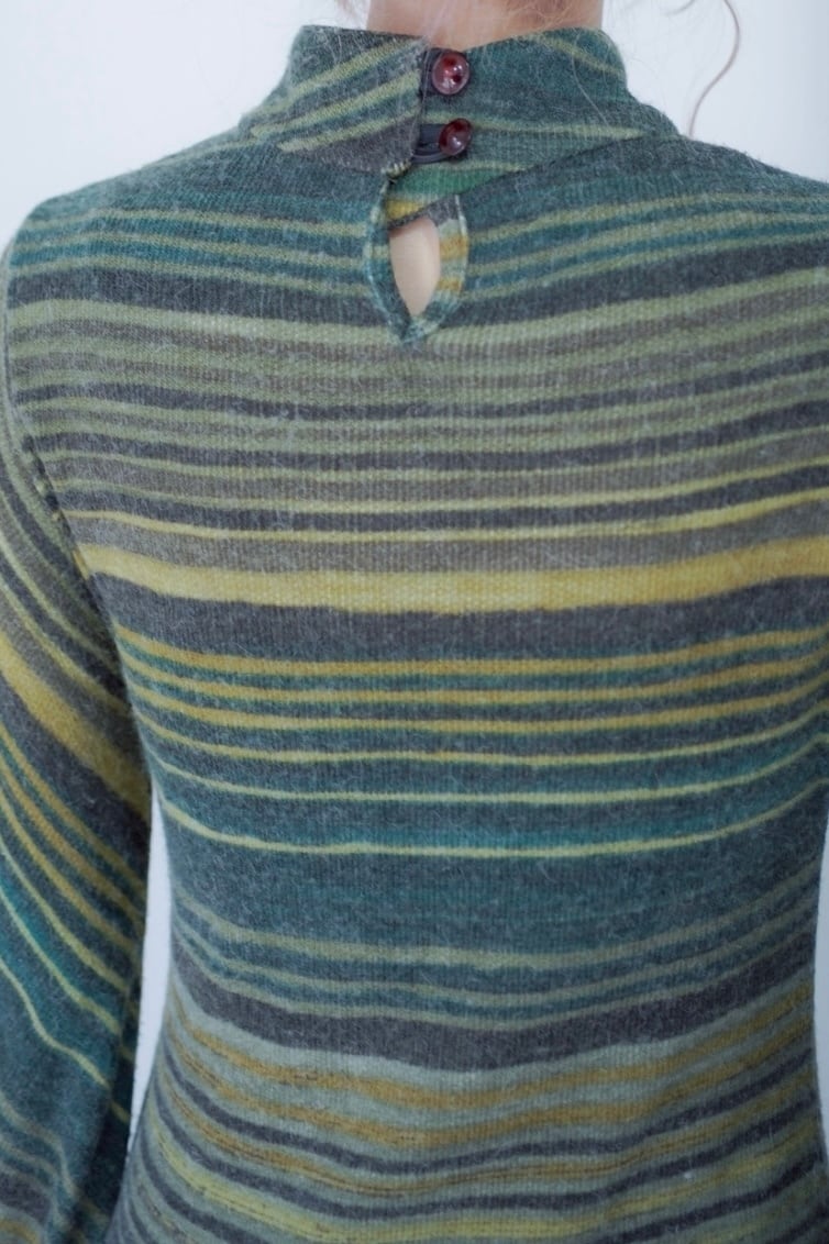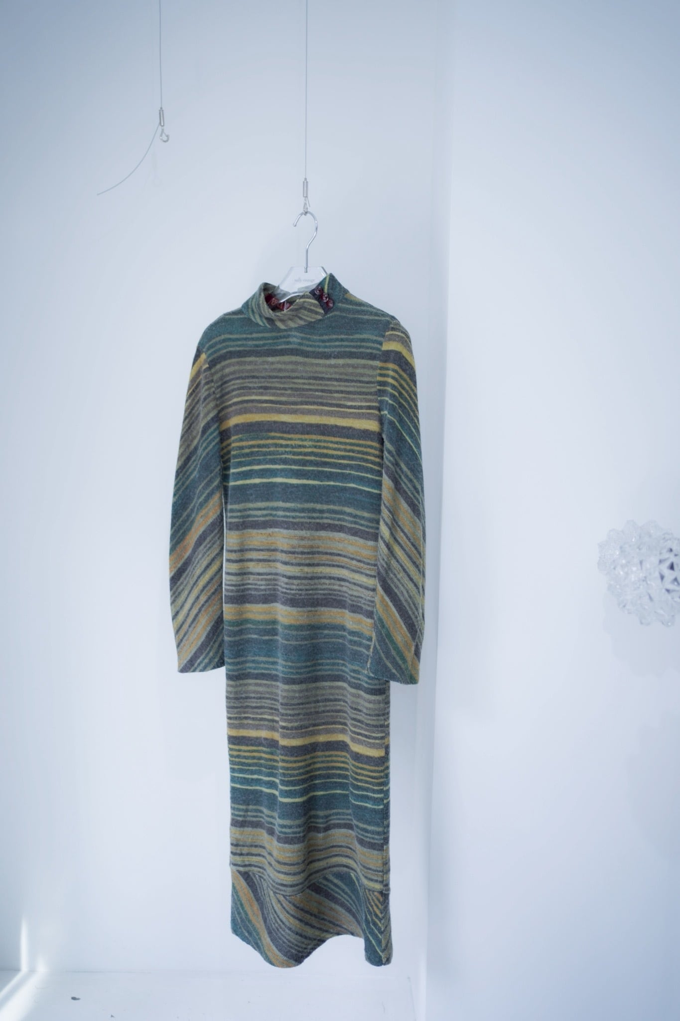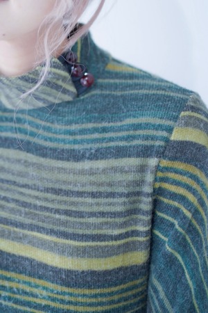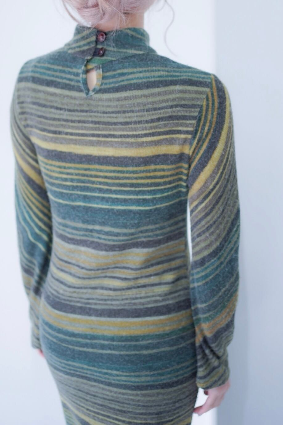 マルチボーダーパターンのニットドレス。