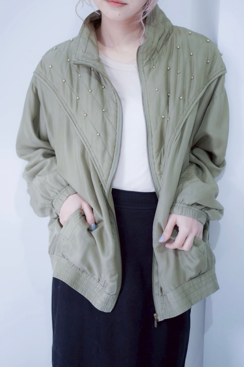 ポイントのジップアップブルゾン。