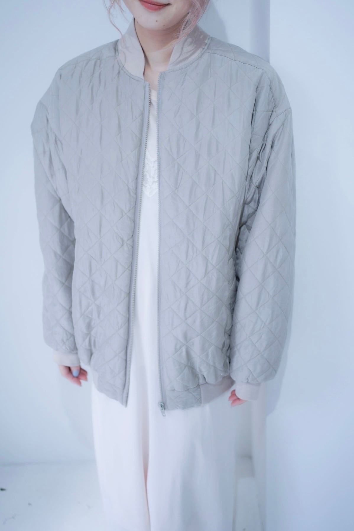 gray quilting blouson