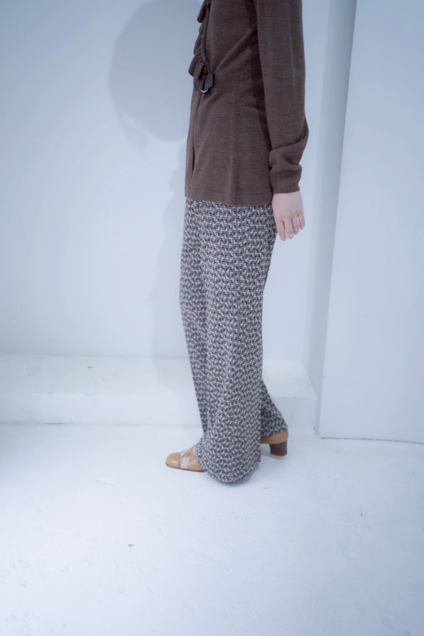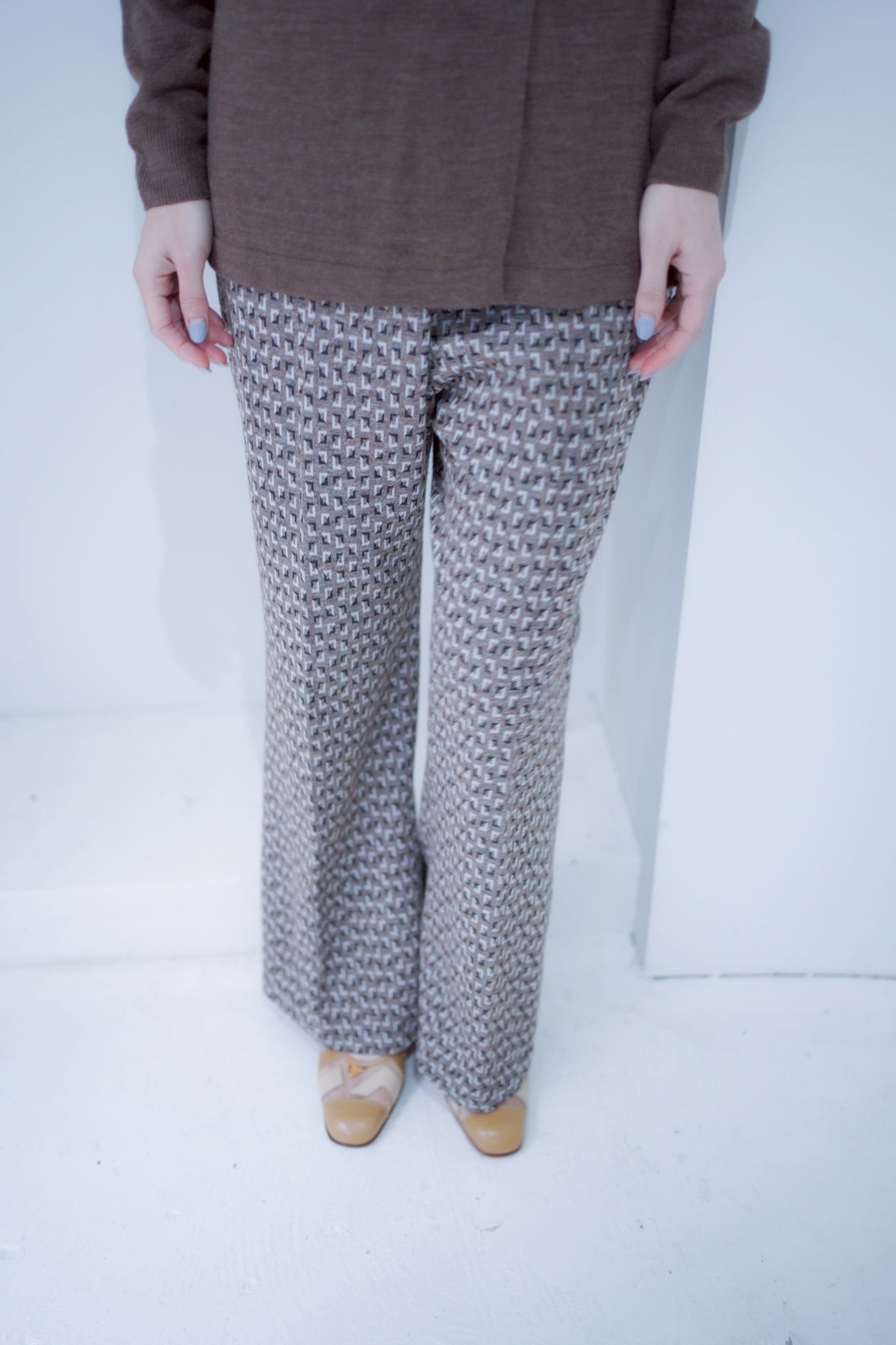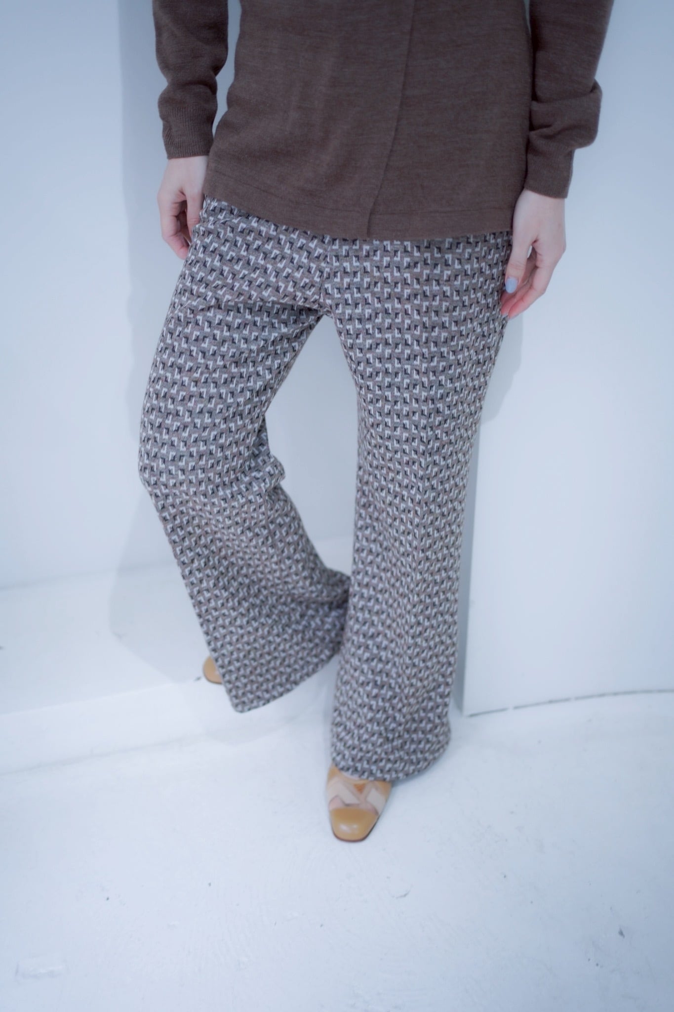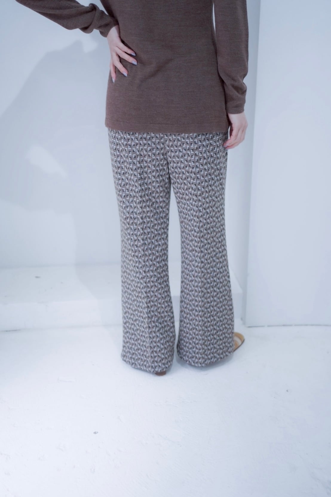 の配色のユニークなパターンのイージーパンツ。