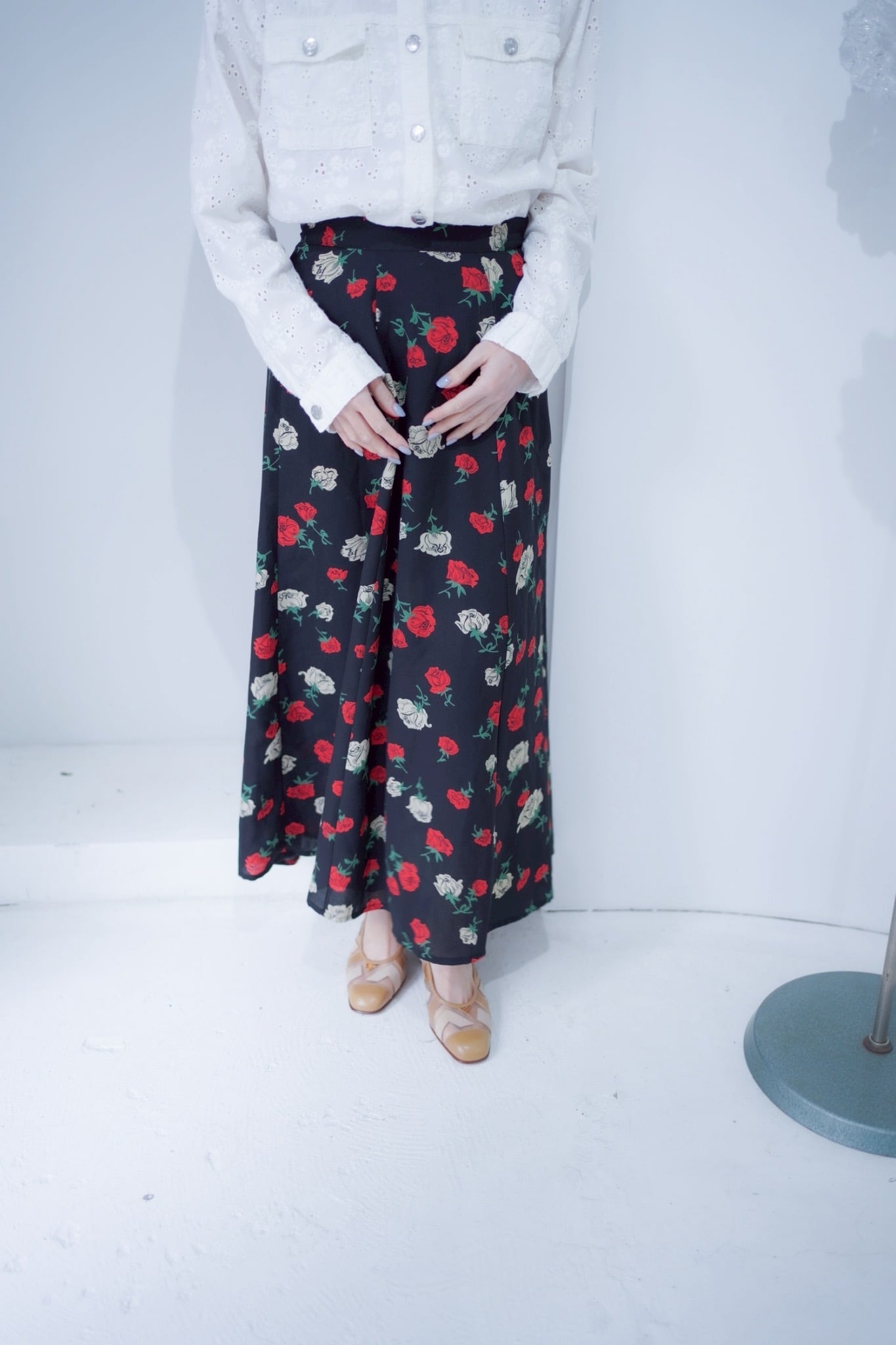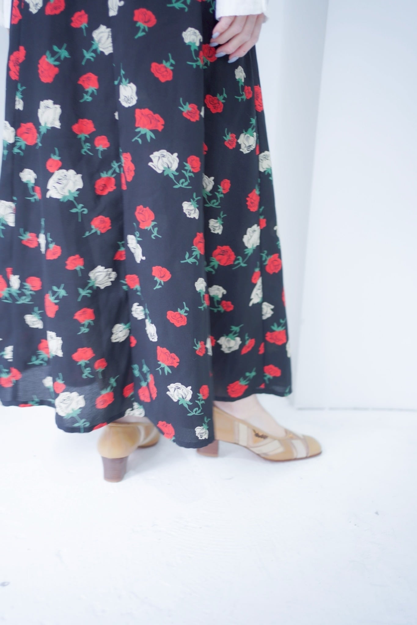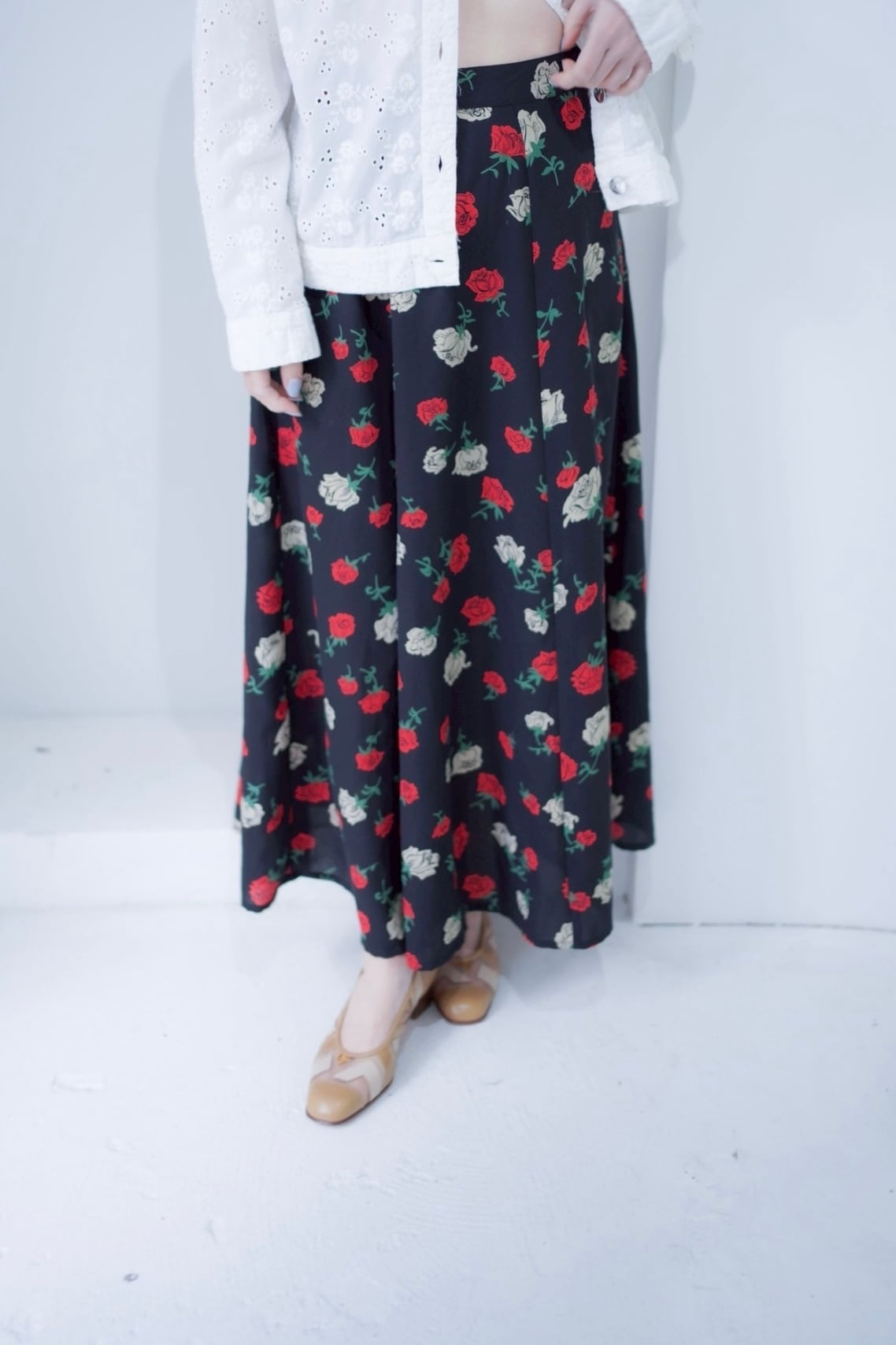 rose print flare skirt