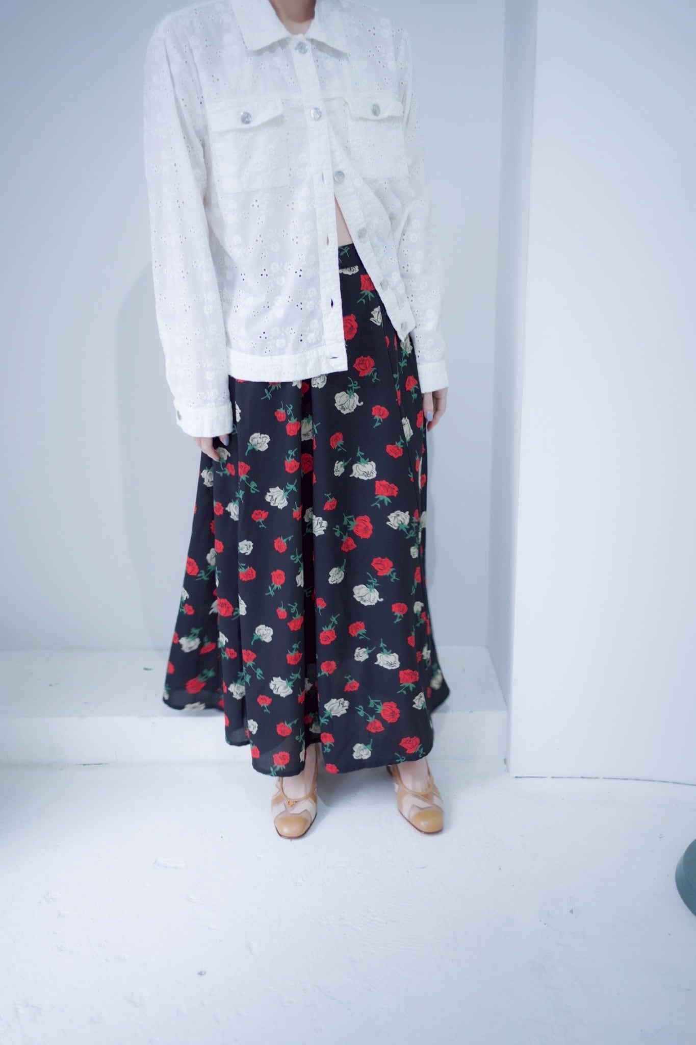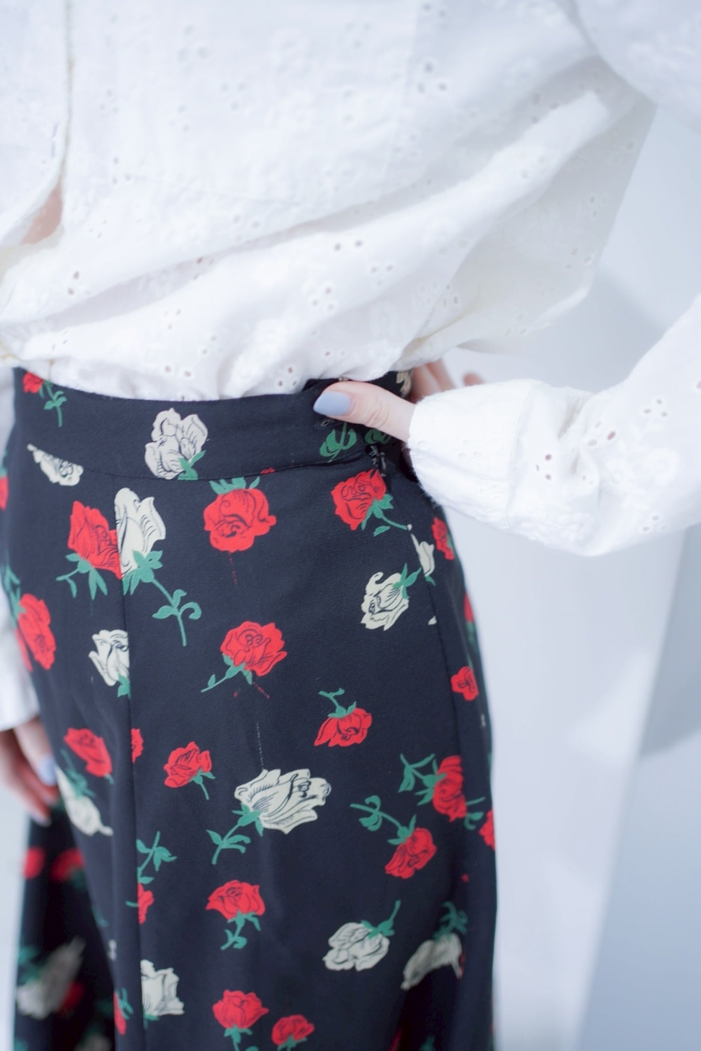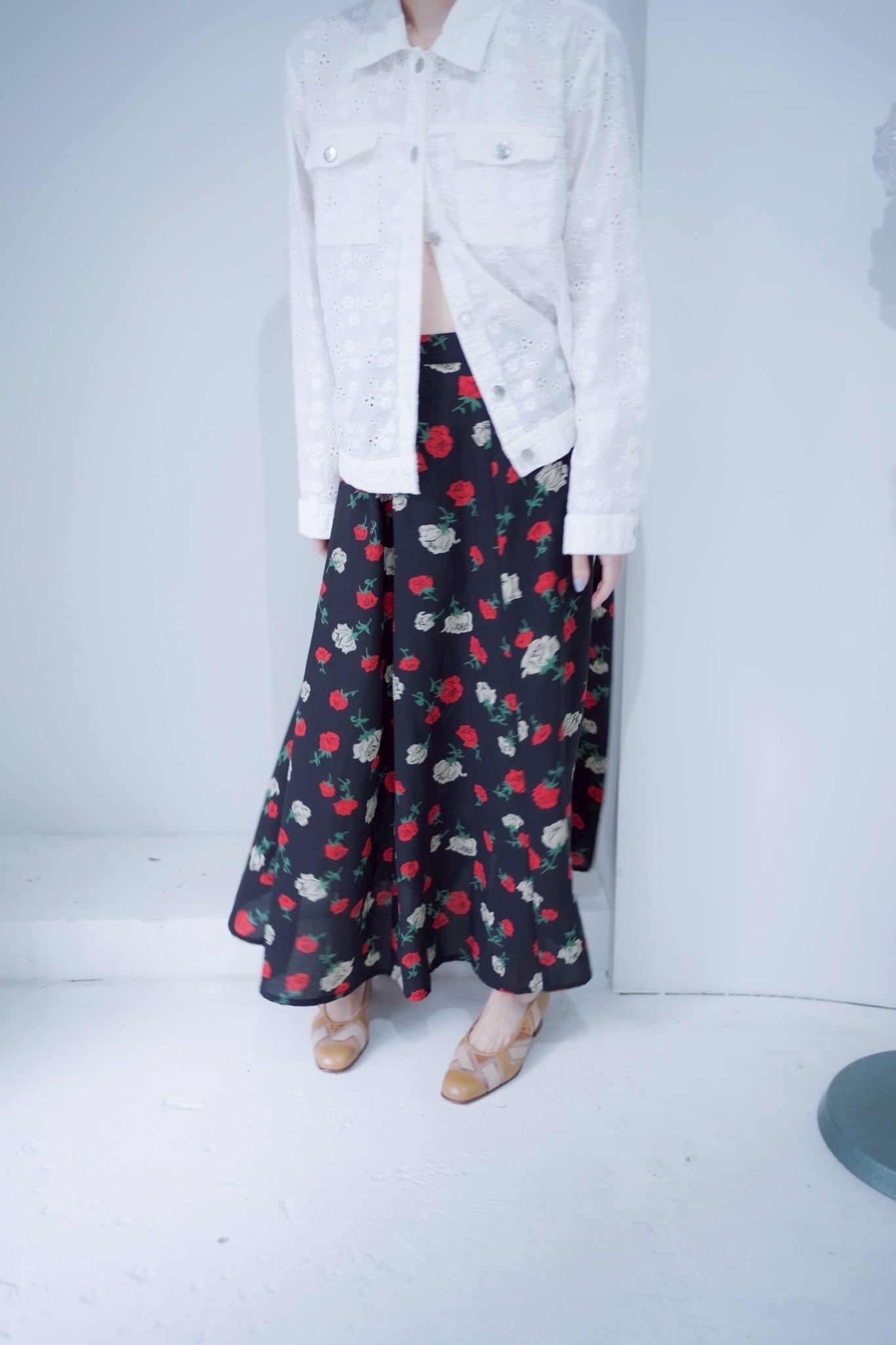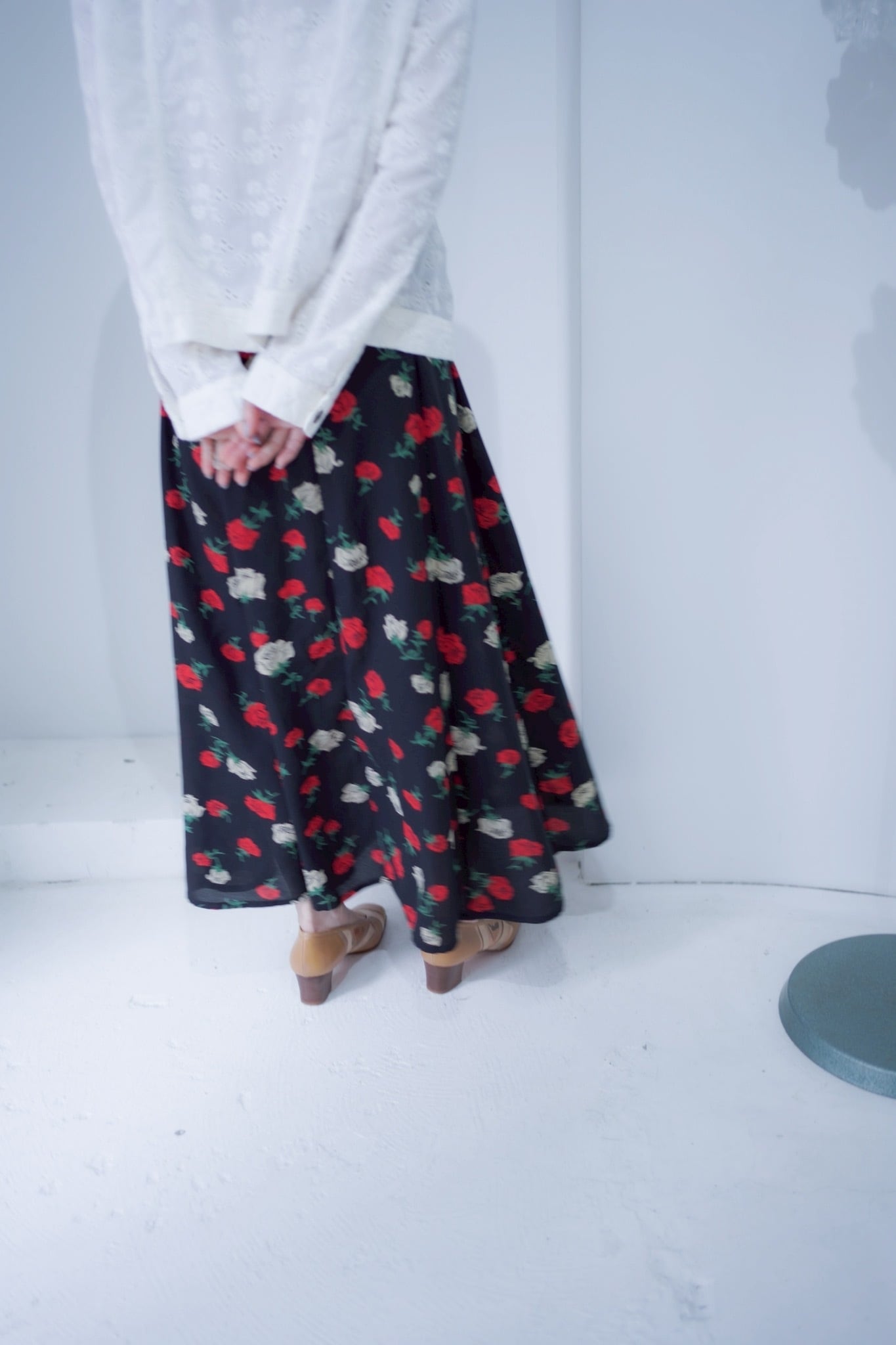rose print flare skirt