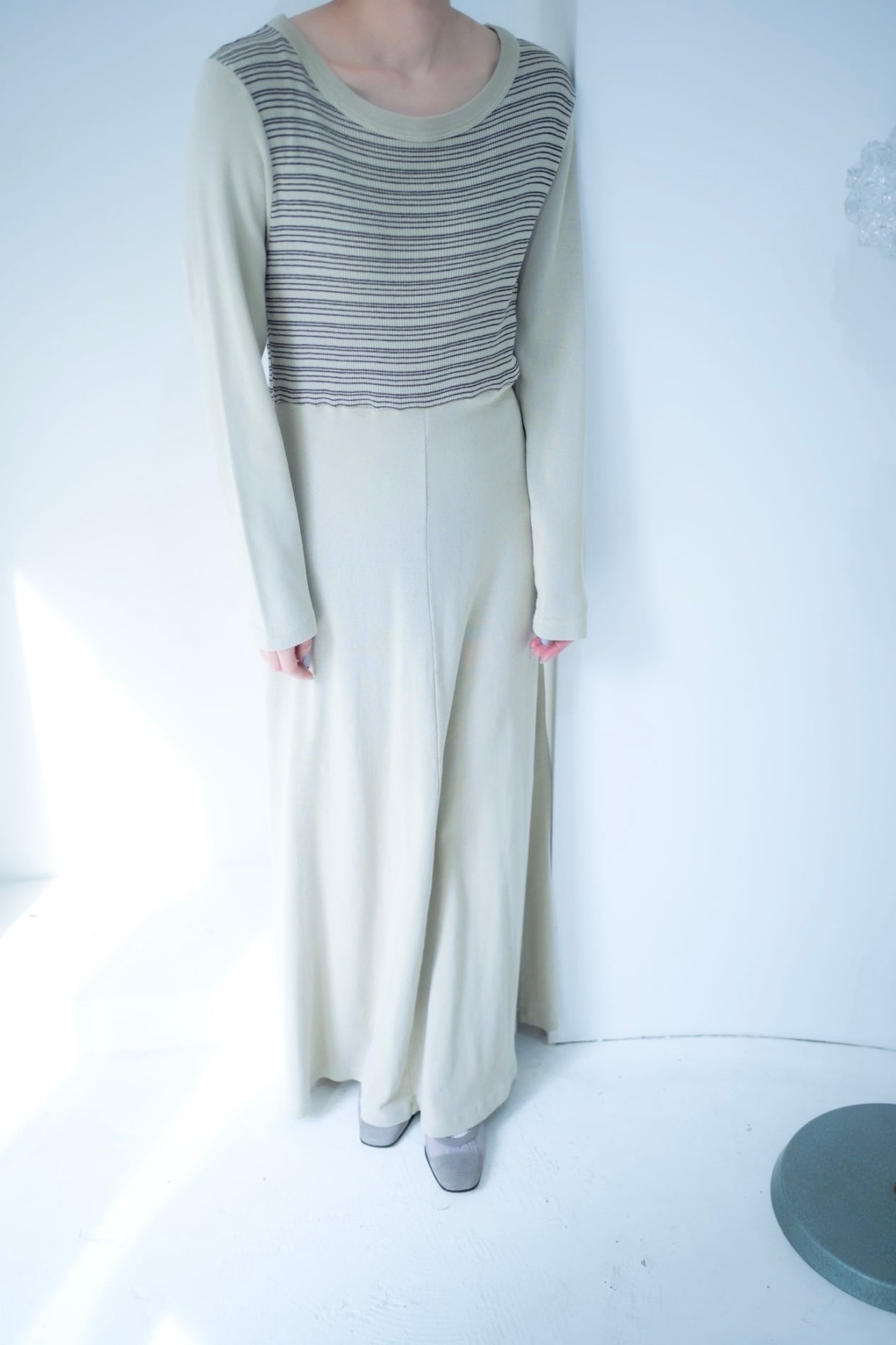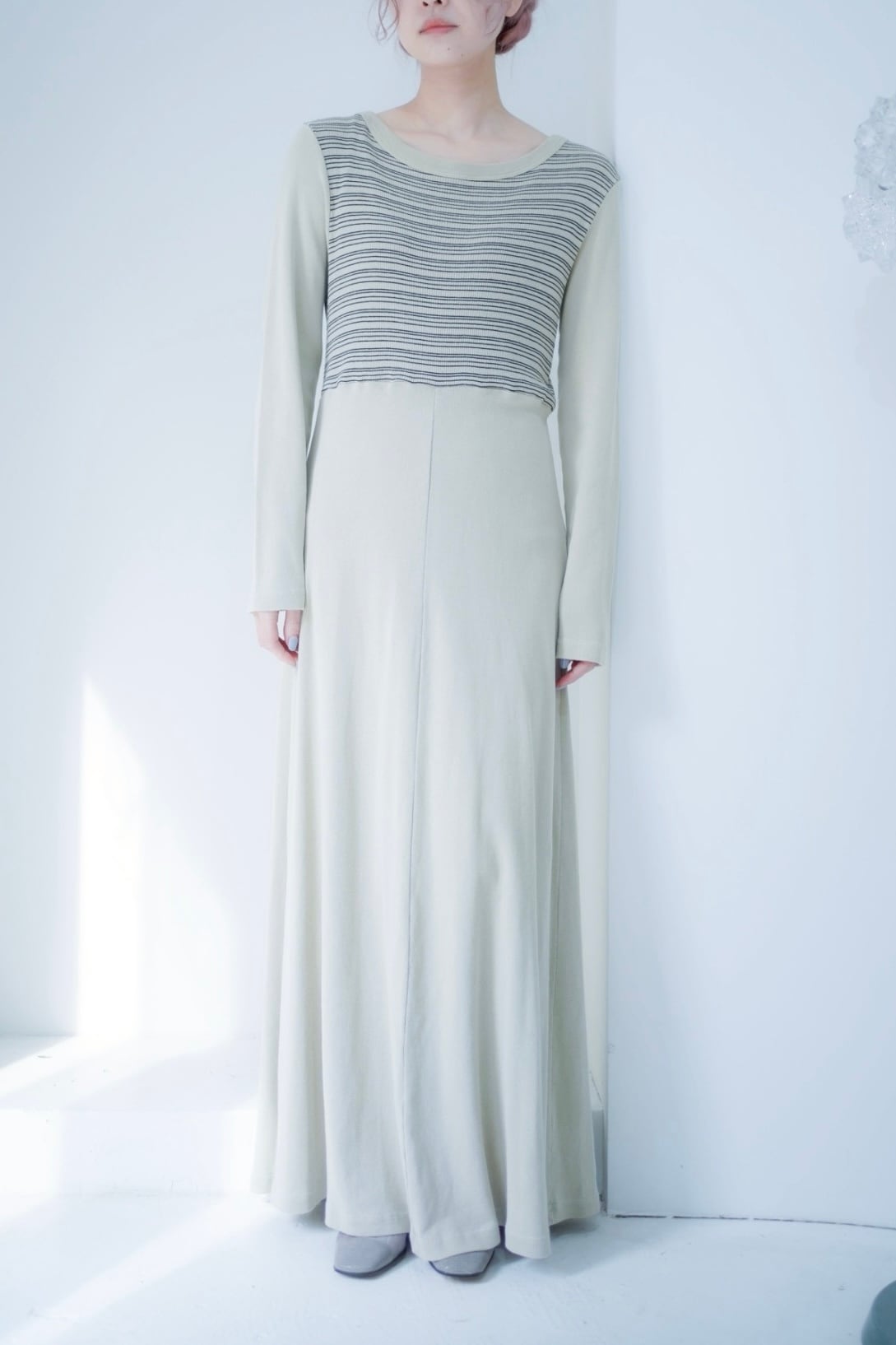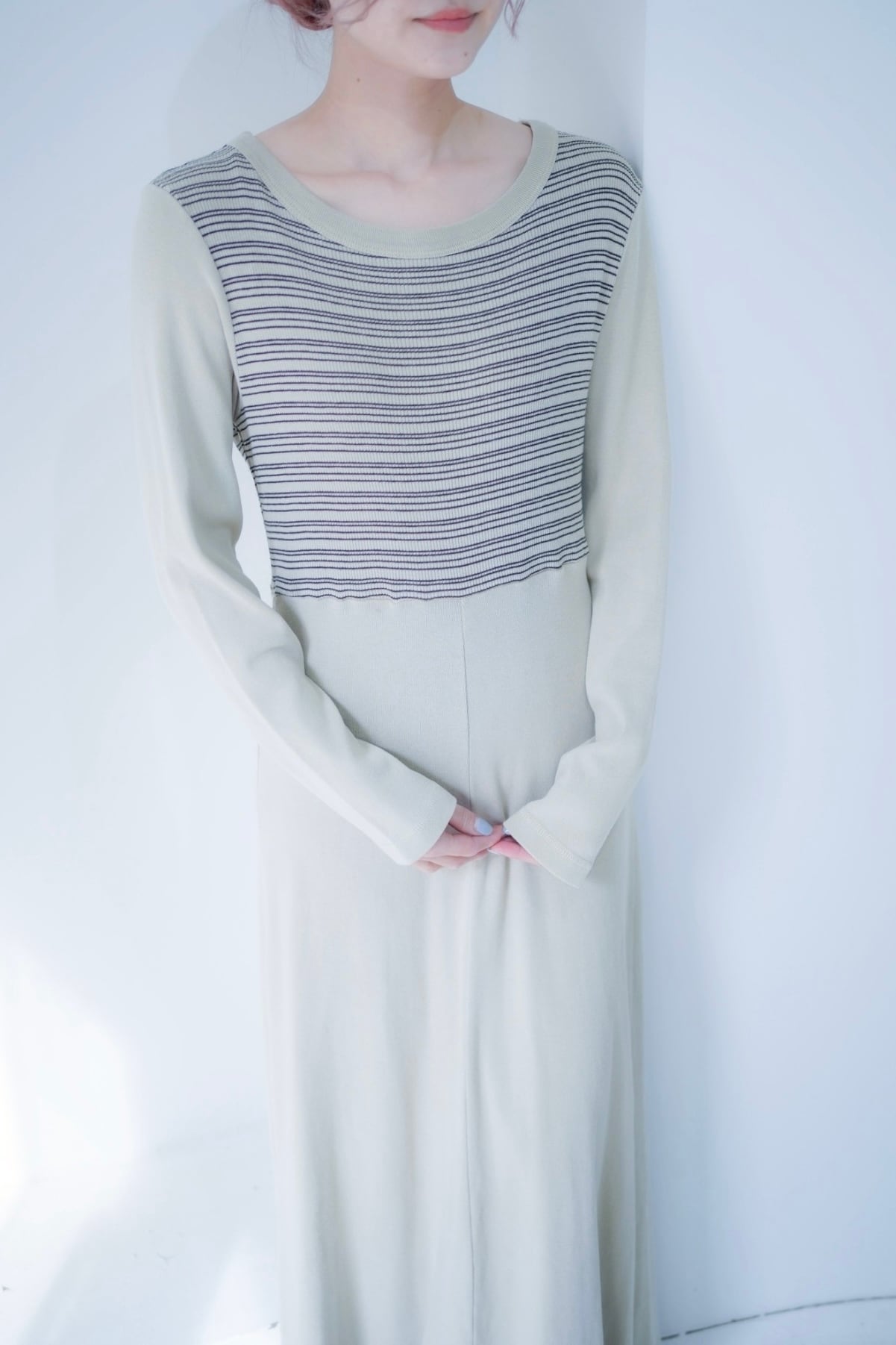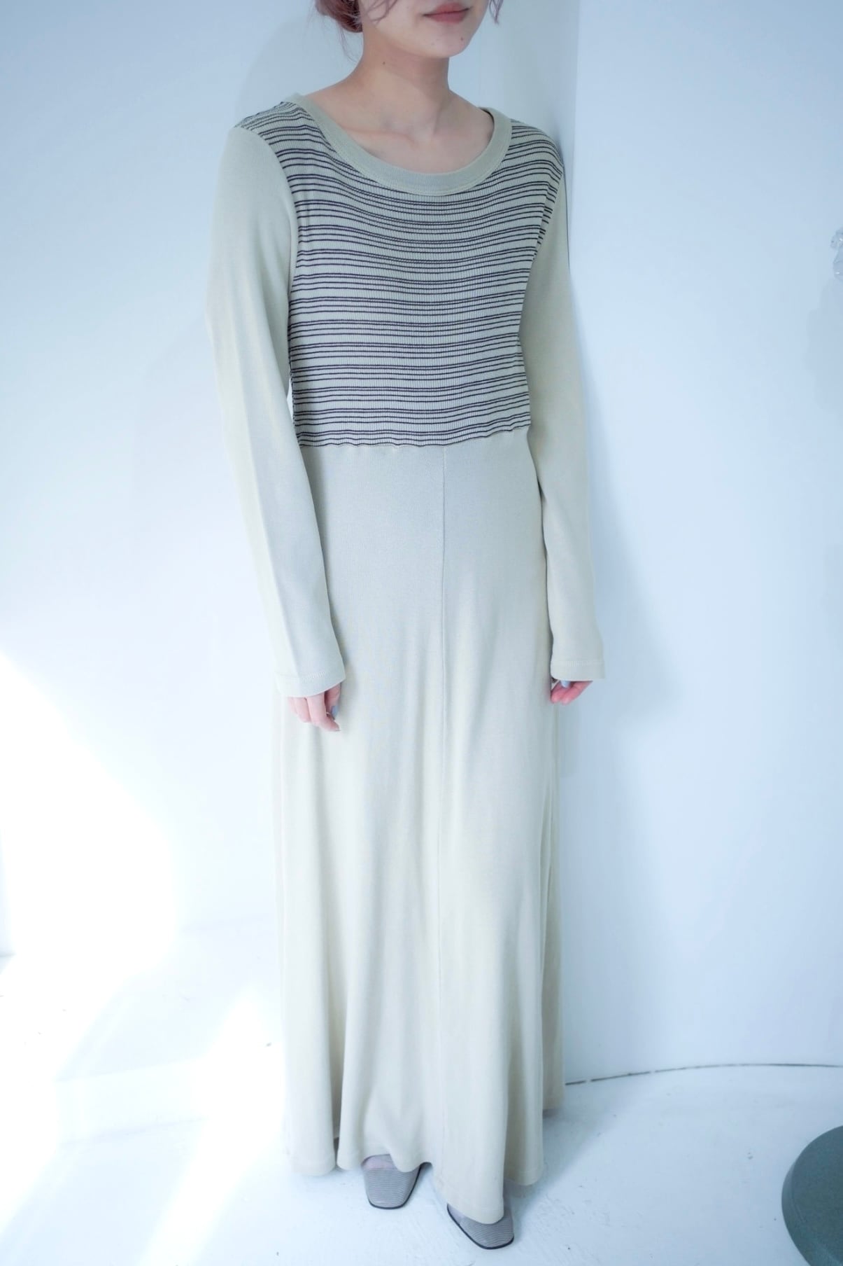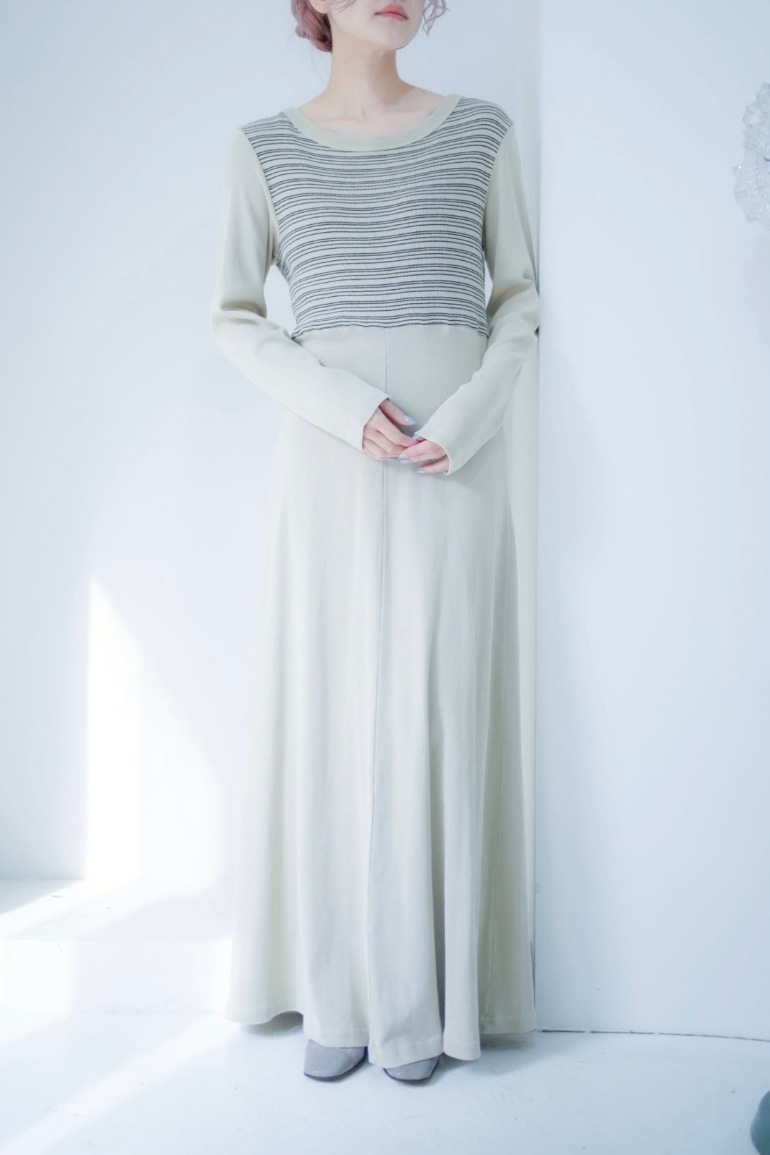 淡い配色のワンピース。