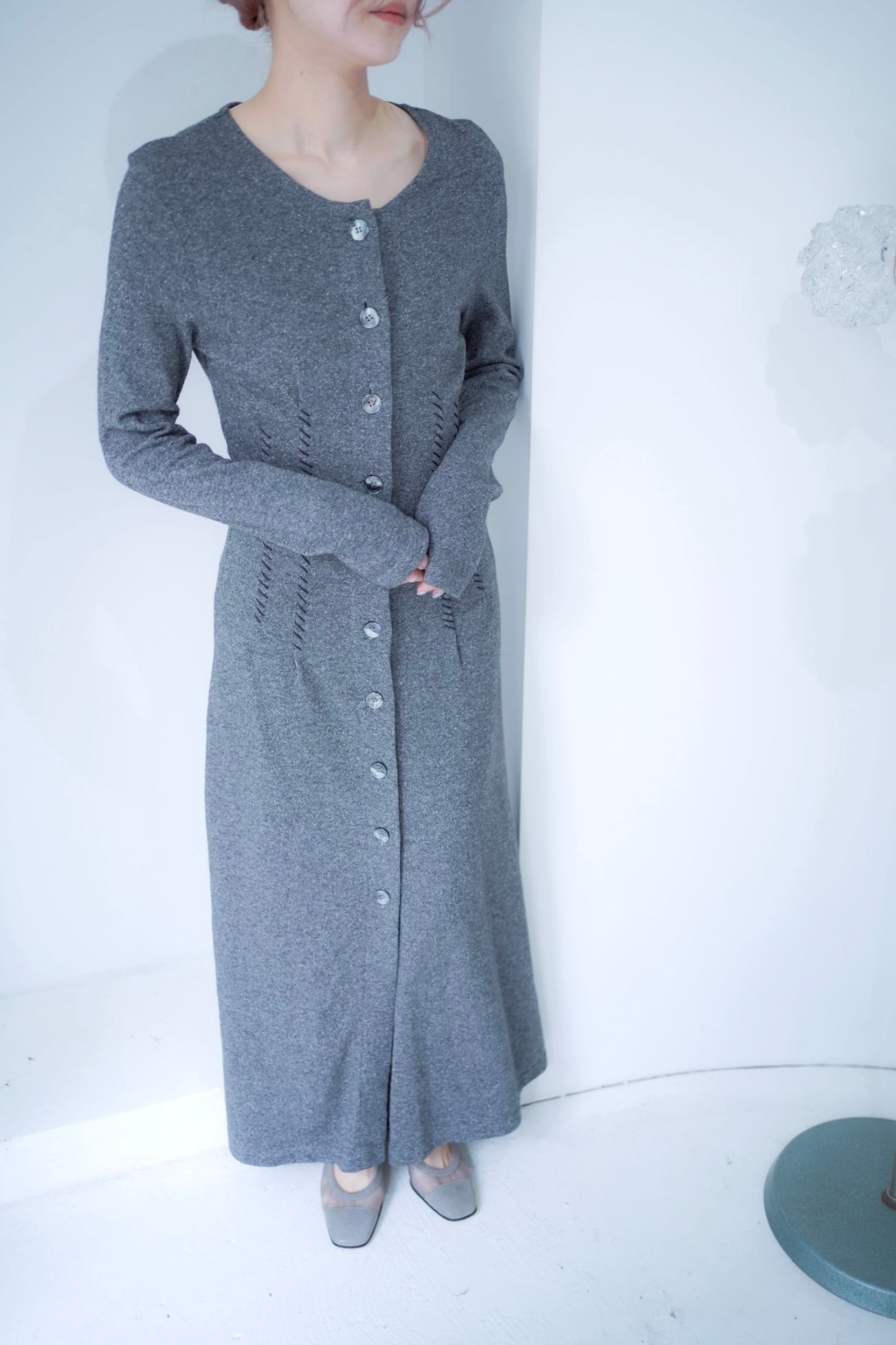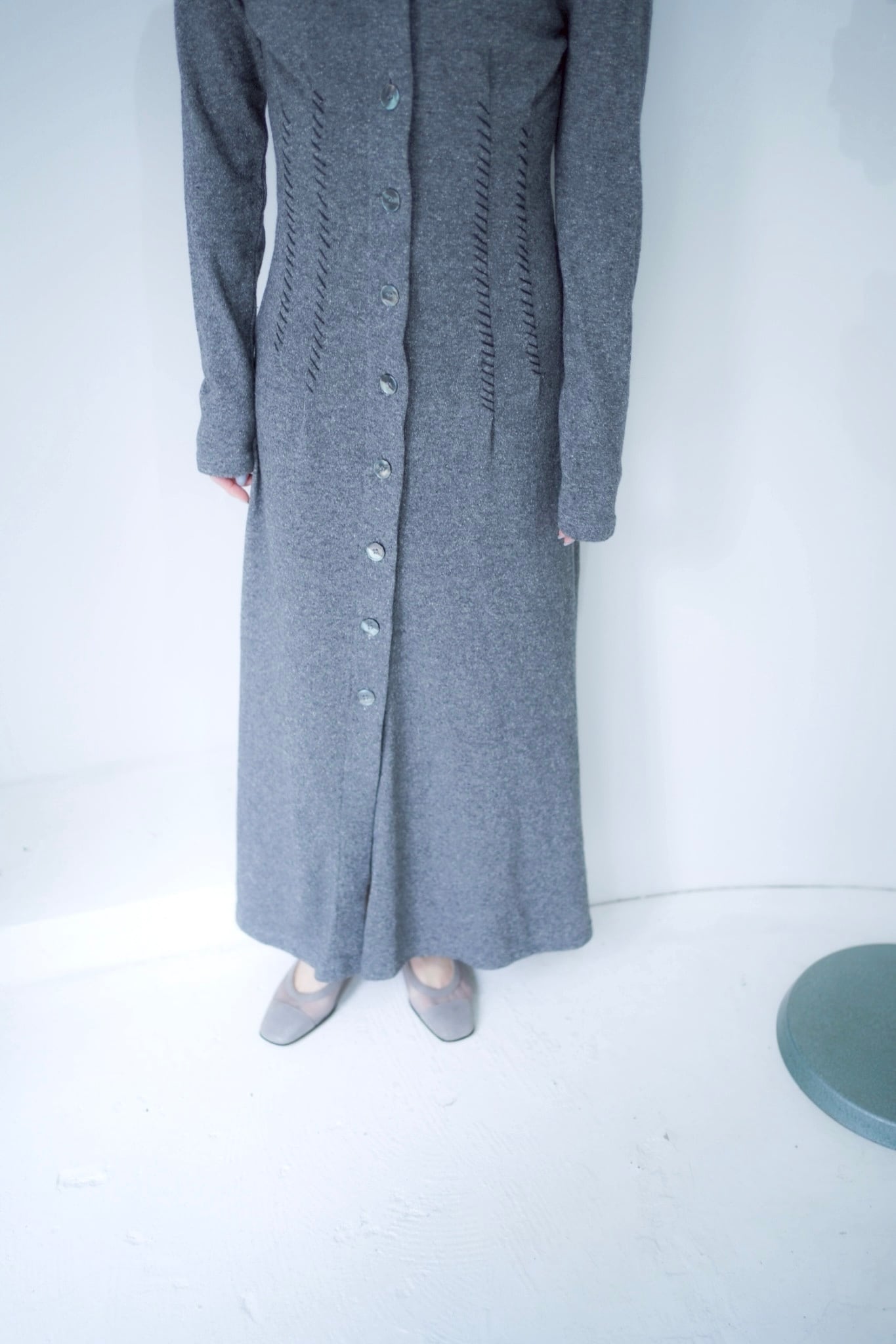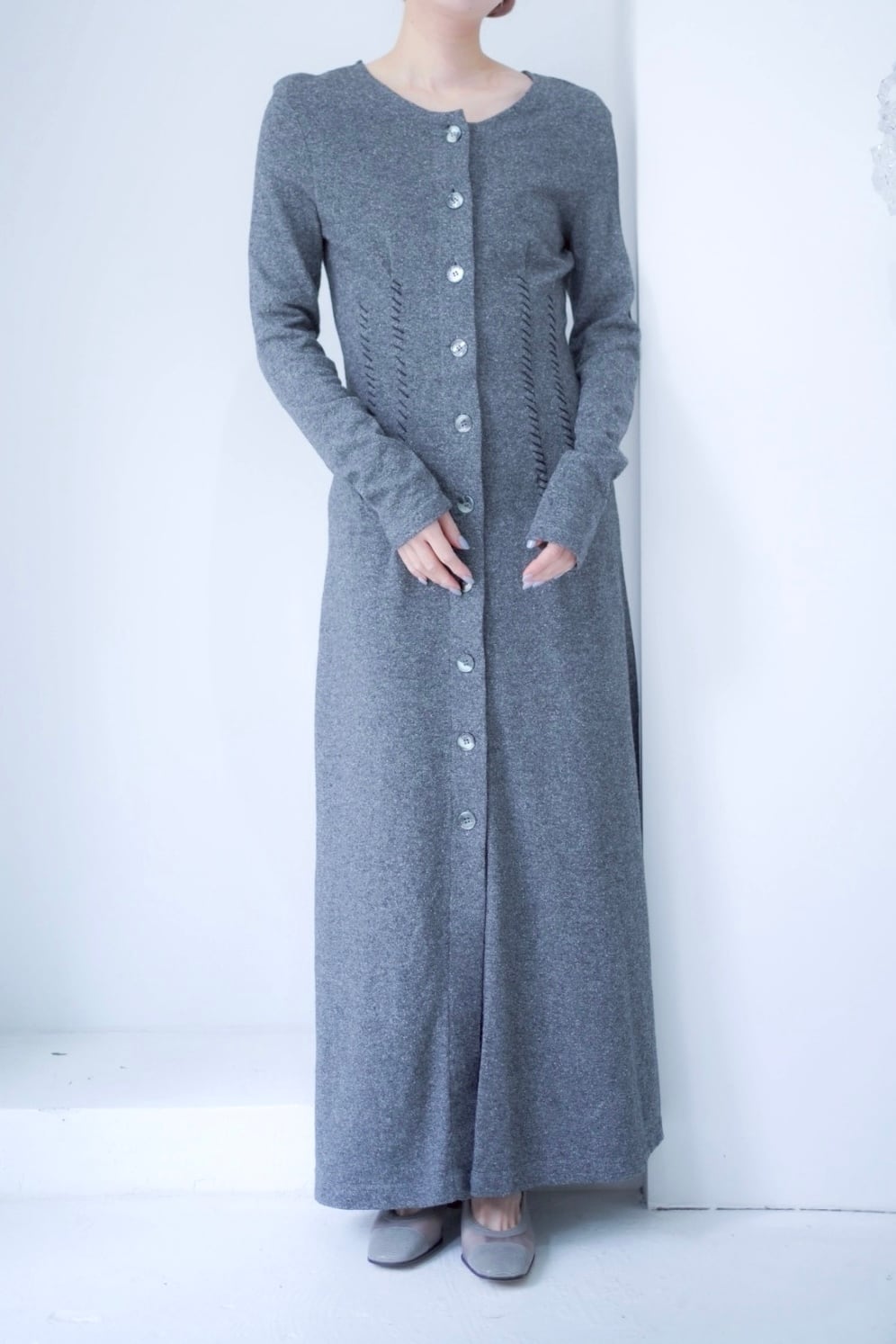 gray stitch design long dress