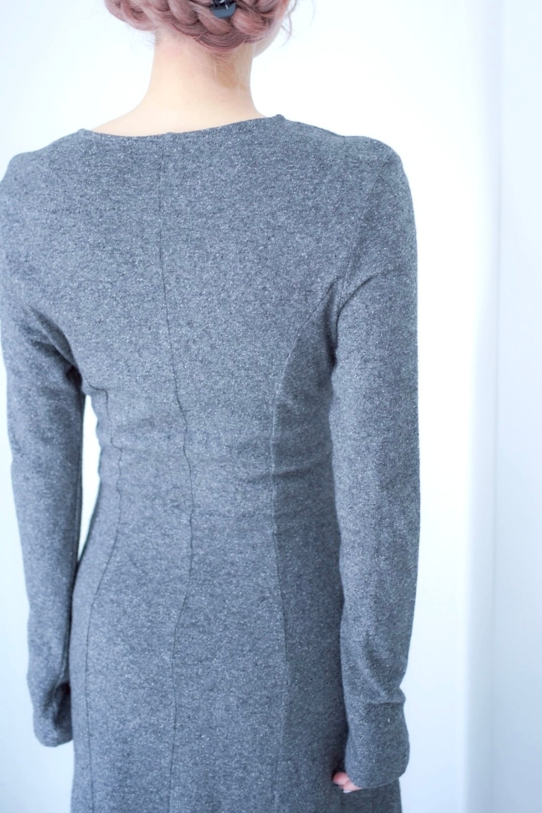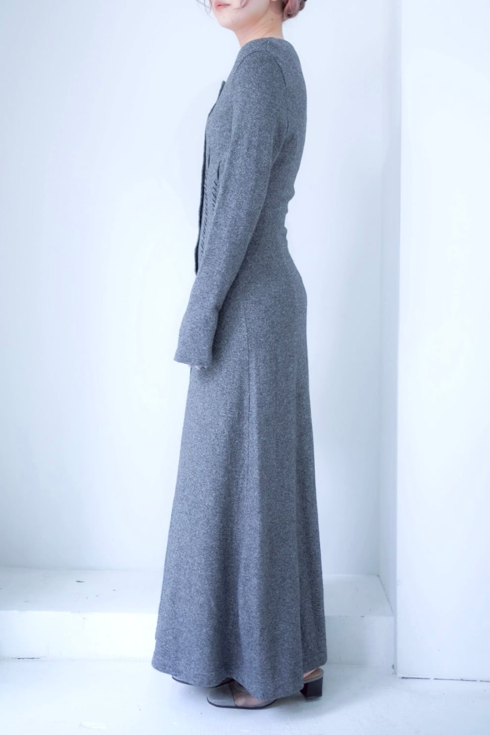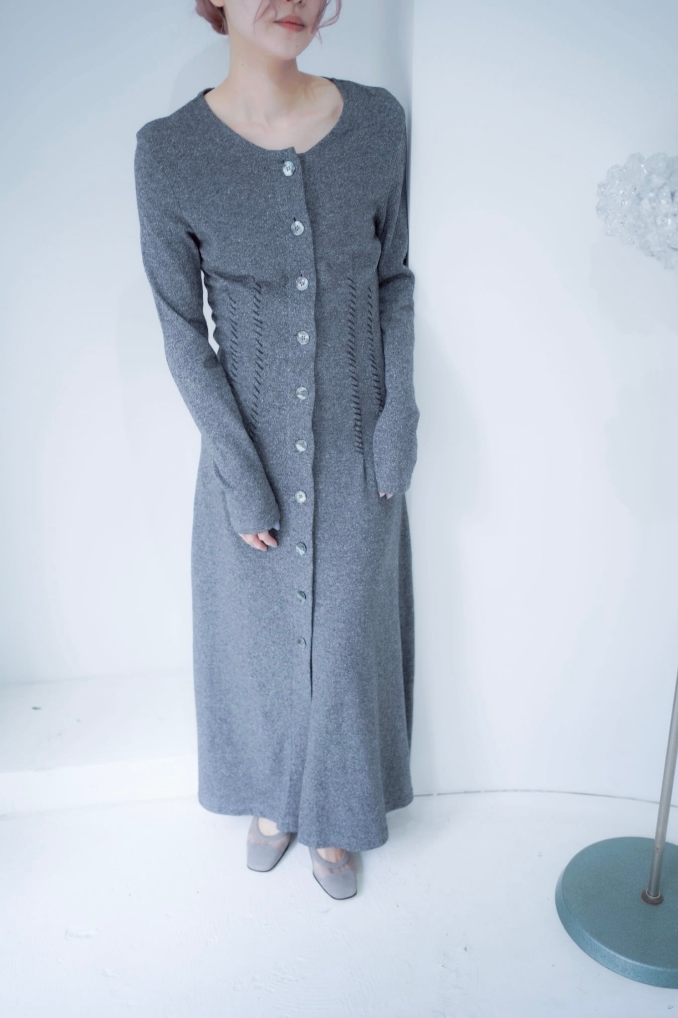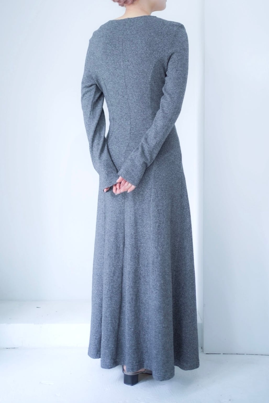 gray stitch design long dress