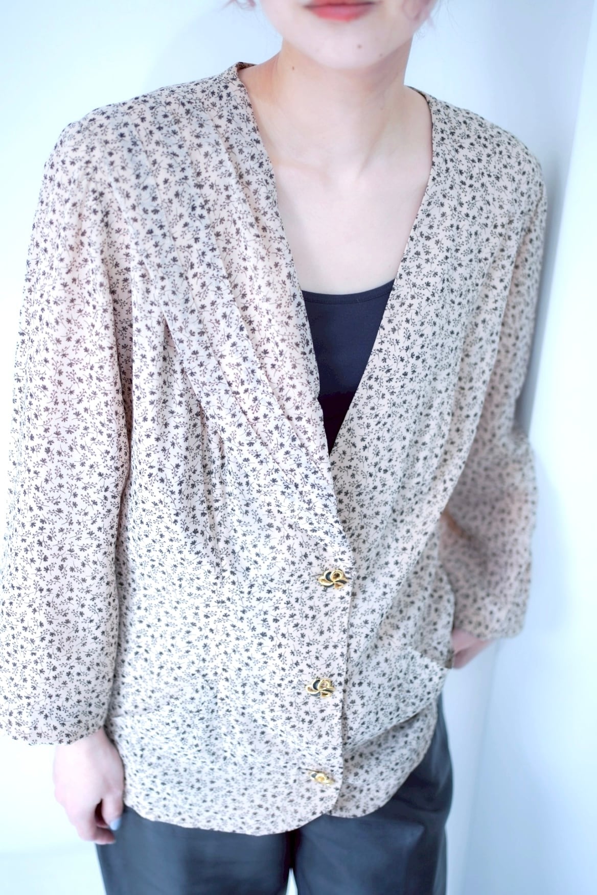 flower botton pleats jaket
