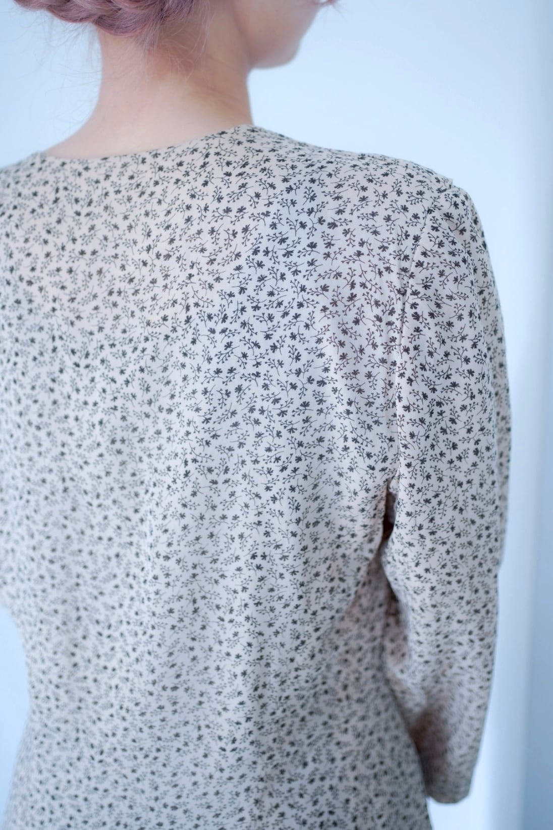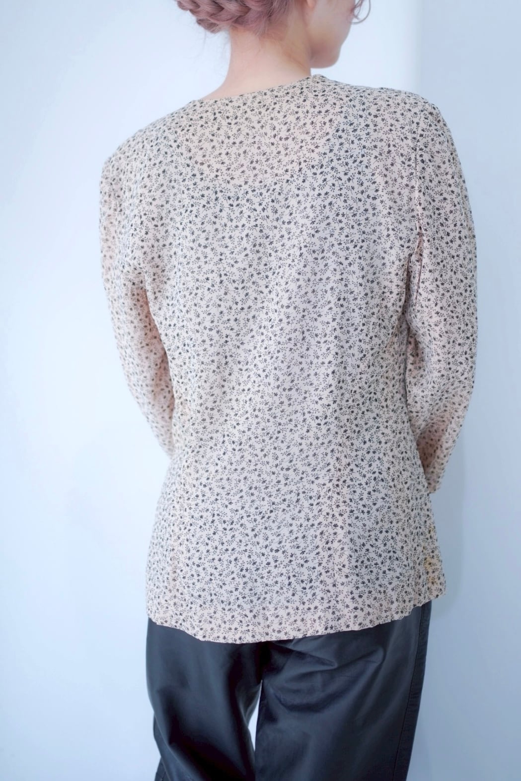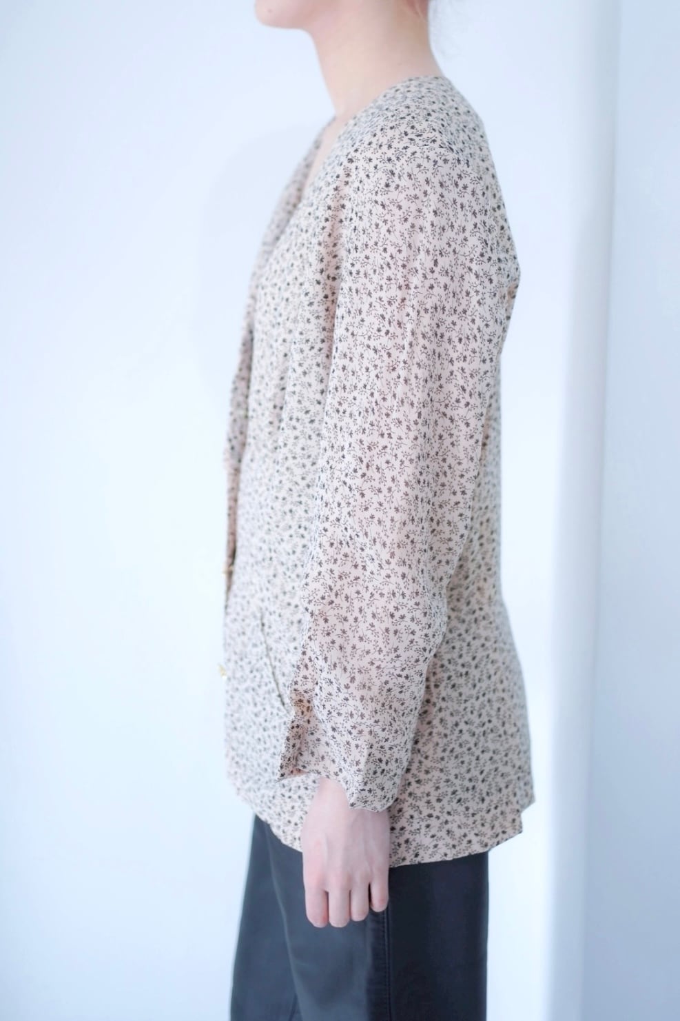 ベージュにブラックの小花プリントに