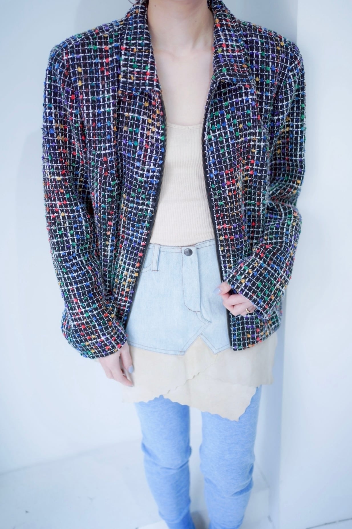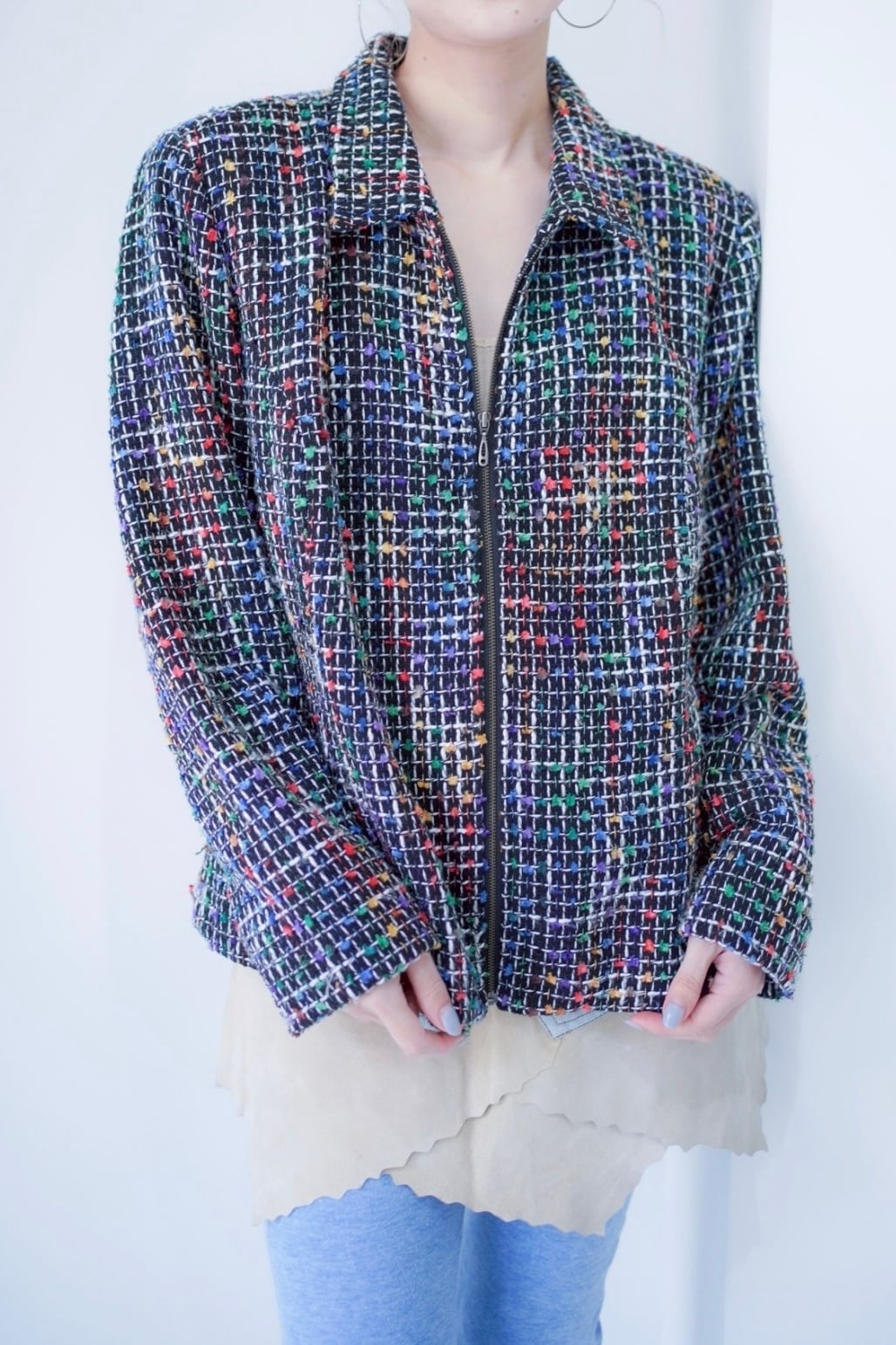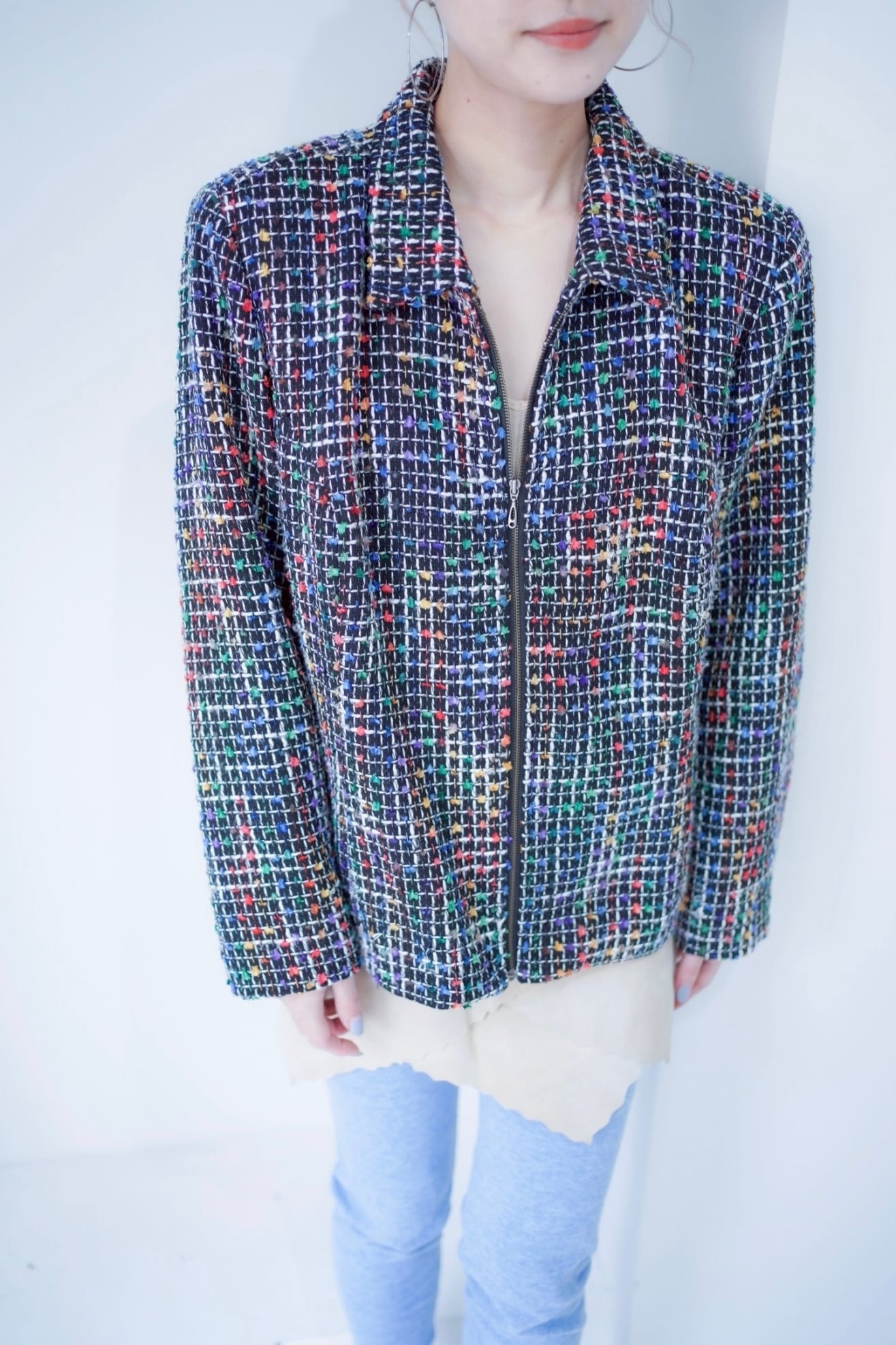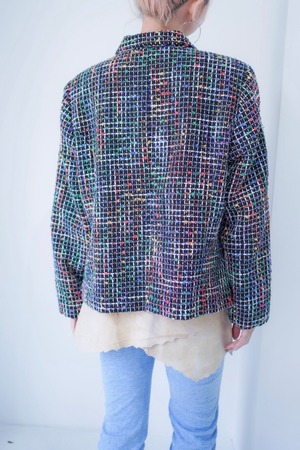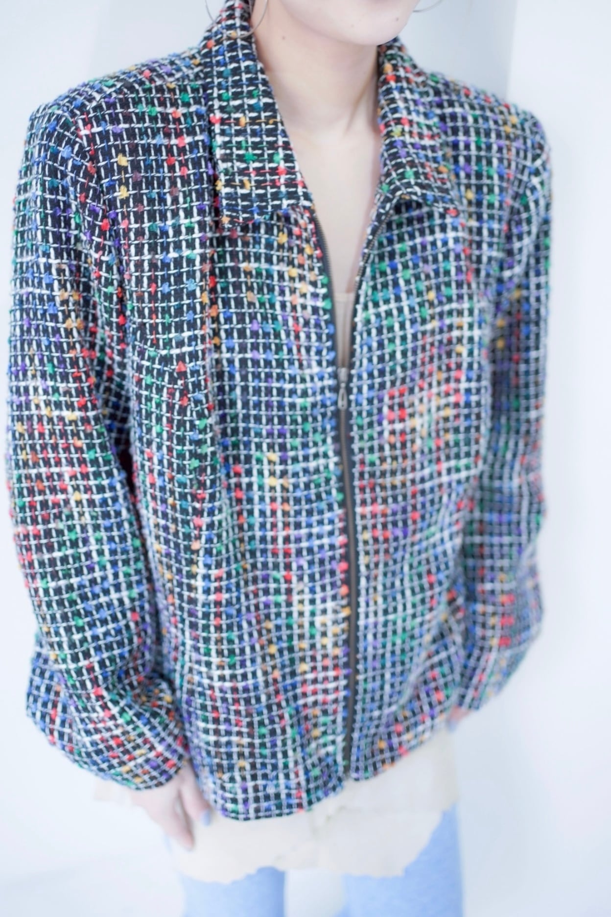 colorful tweed zip up blouson