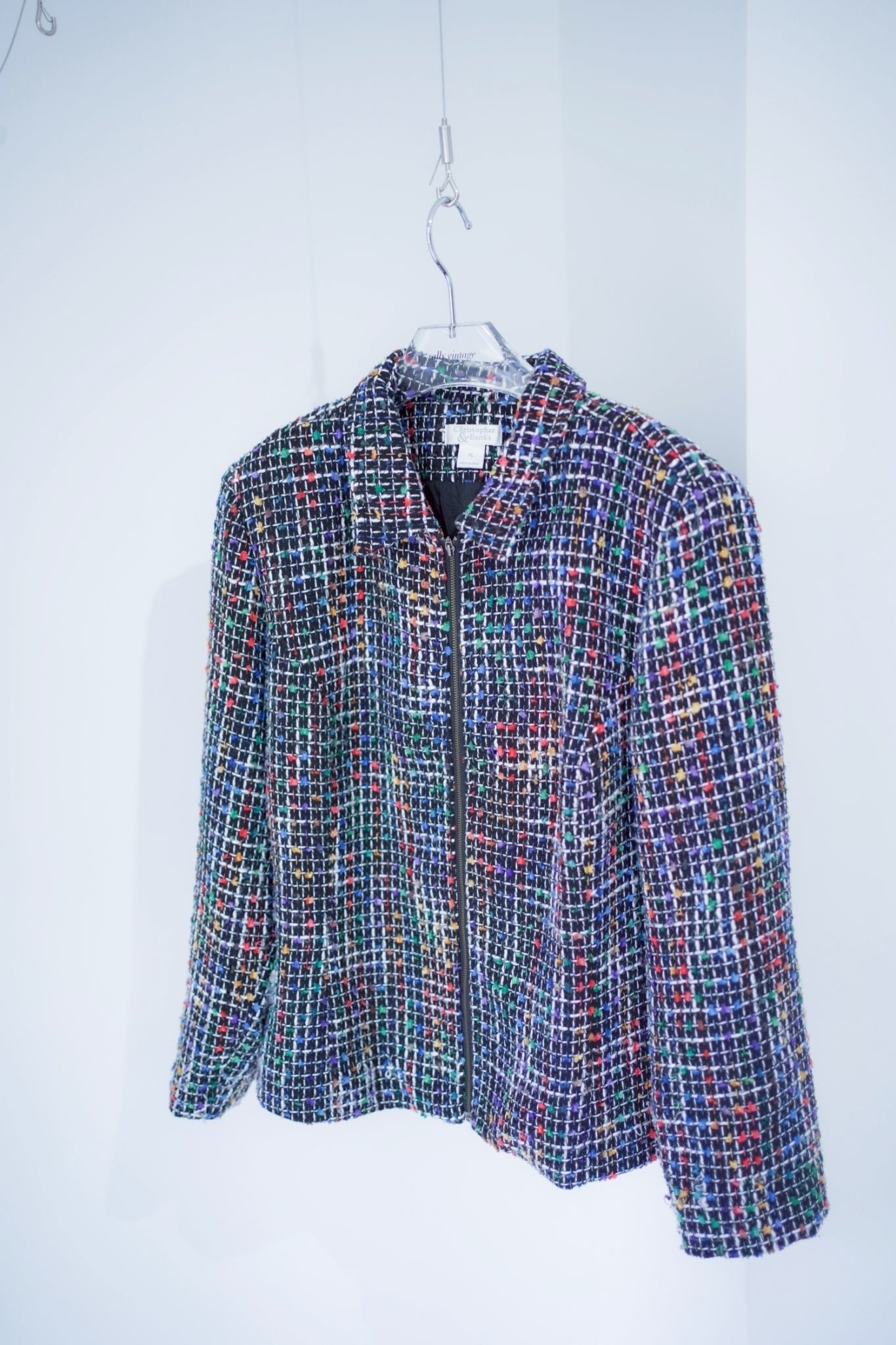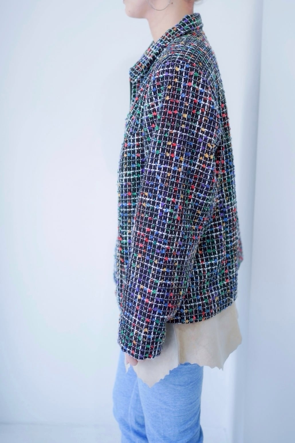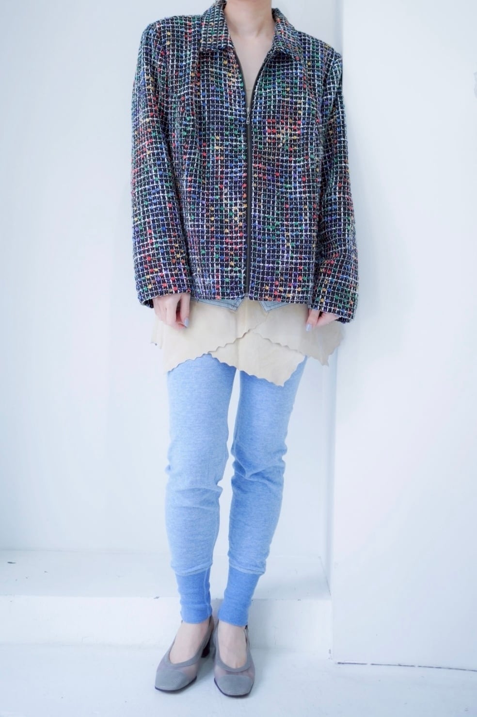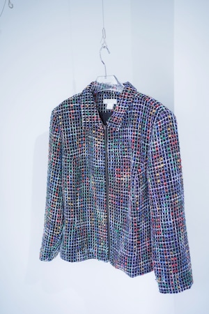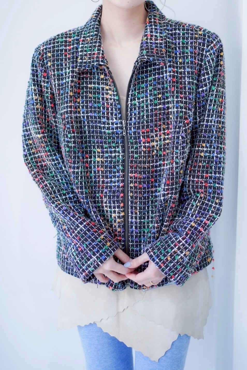 colorful tweed zip up blouson