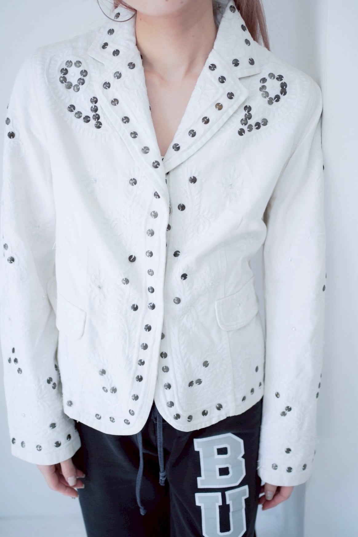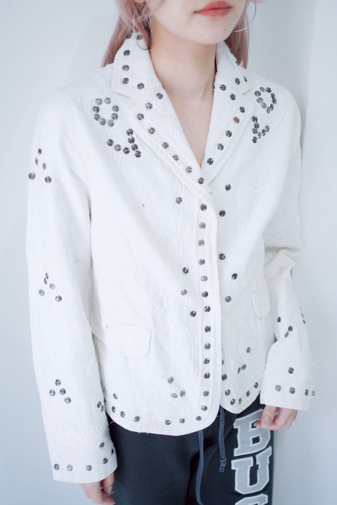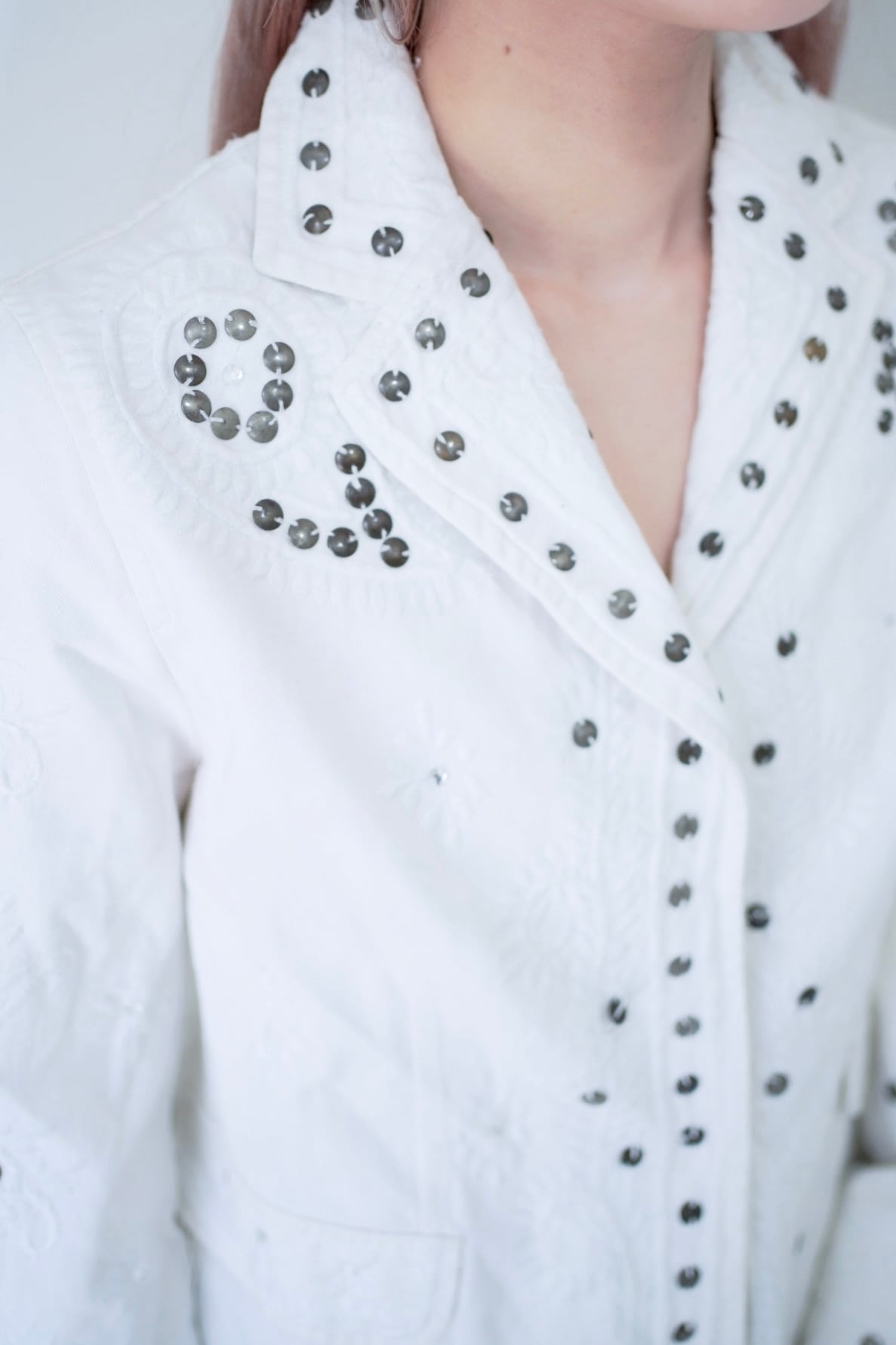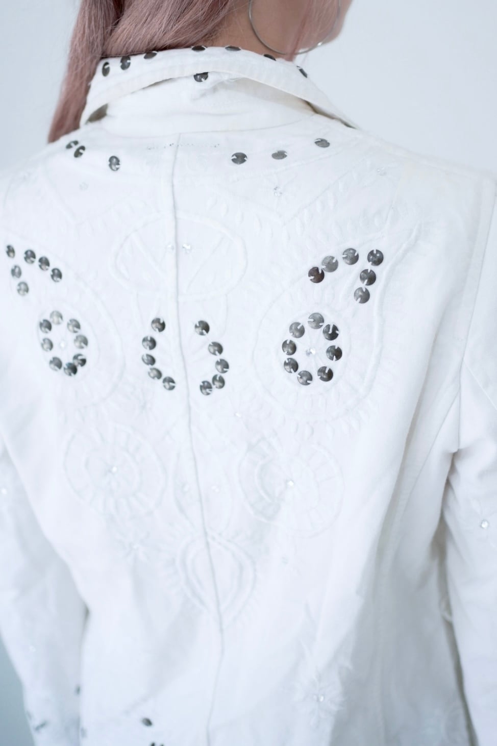 シルバーのサークルビーズの刺繍が
