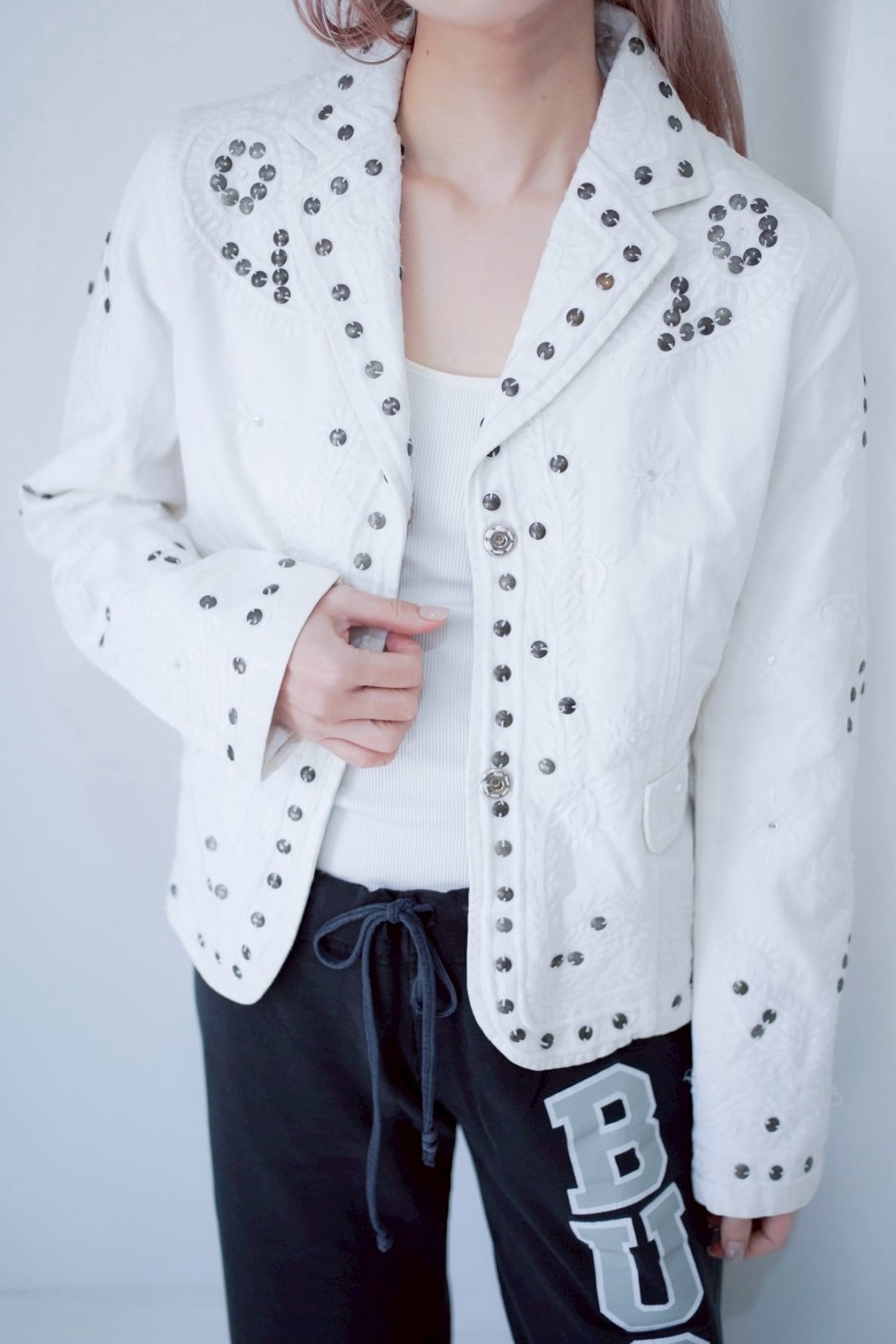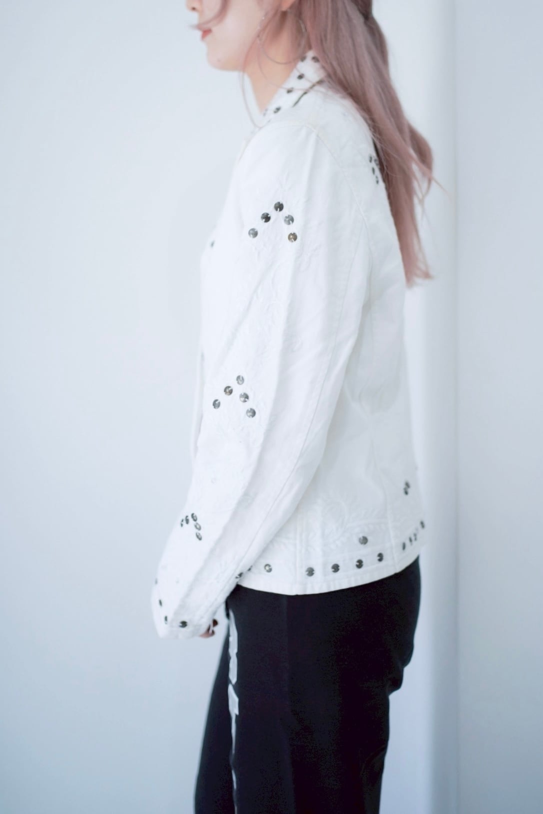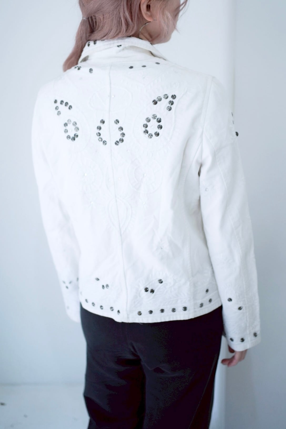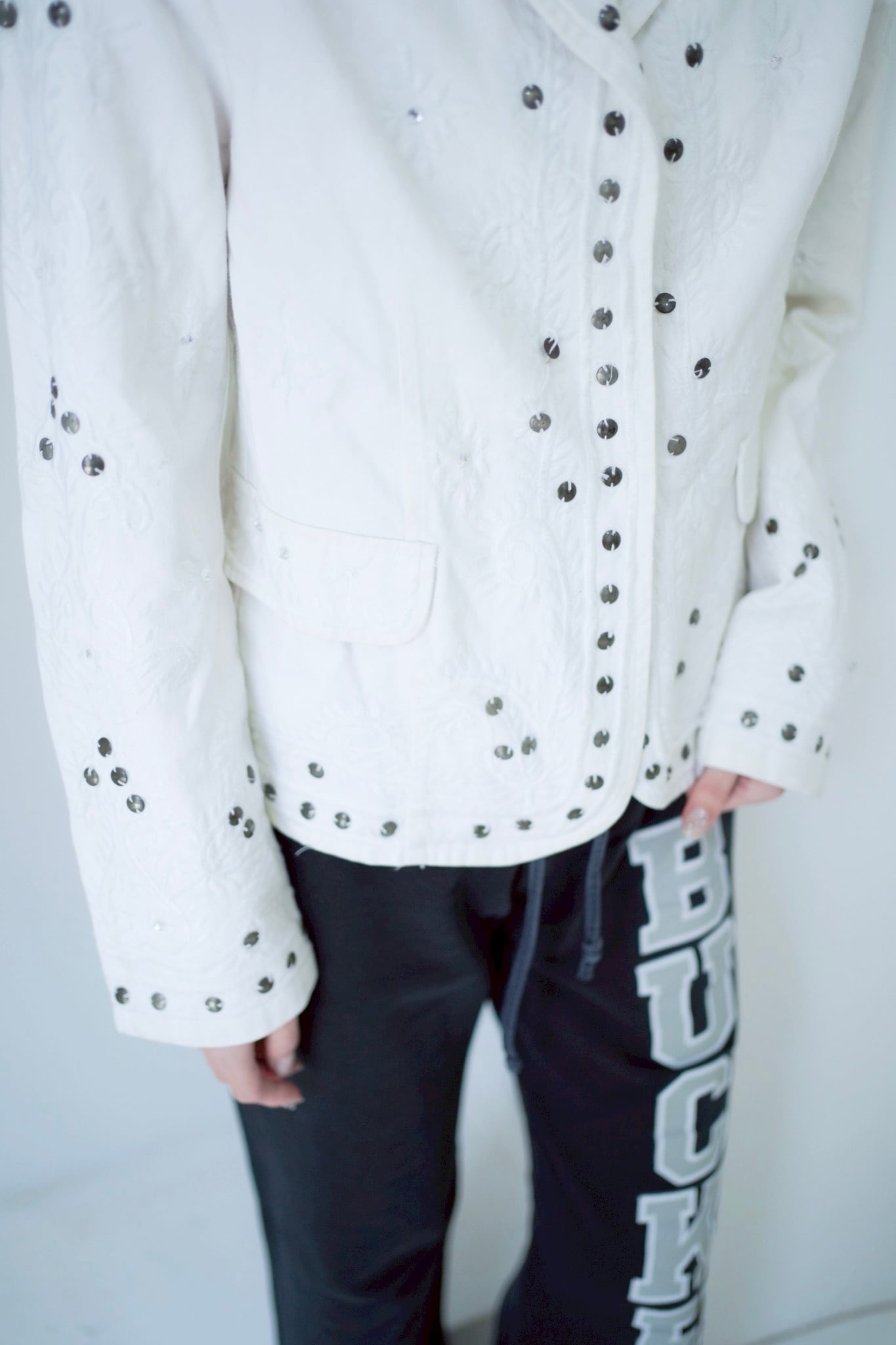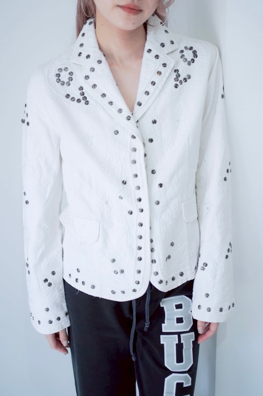 シルバーのサークルビーズの刺繍が