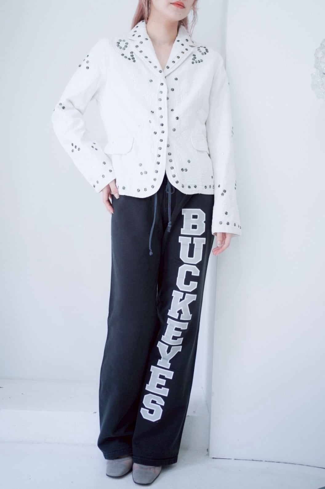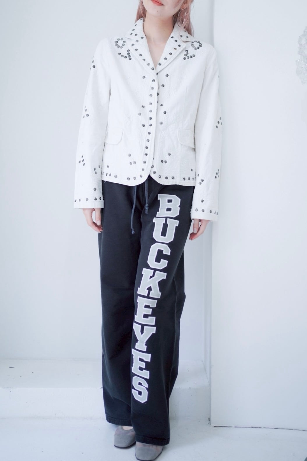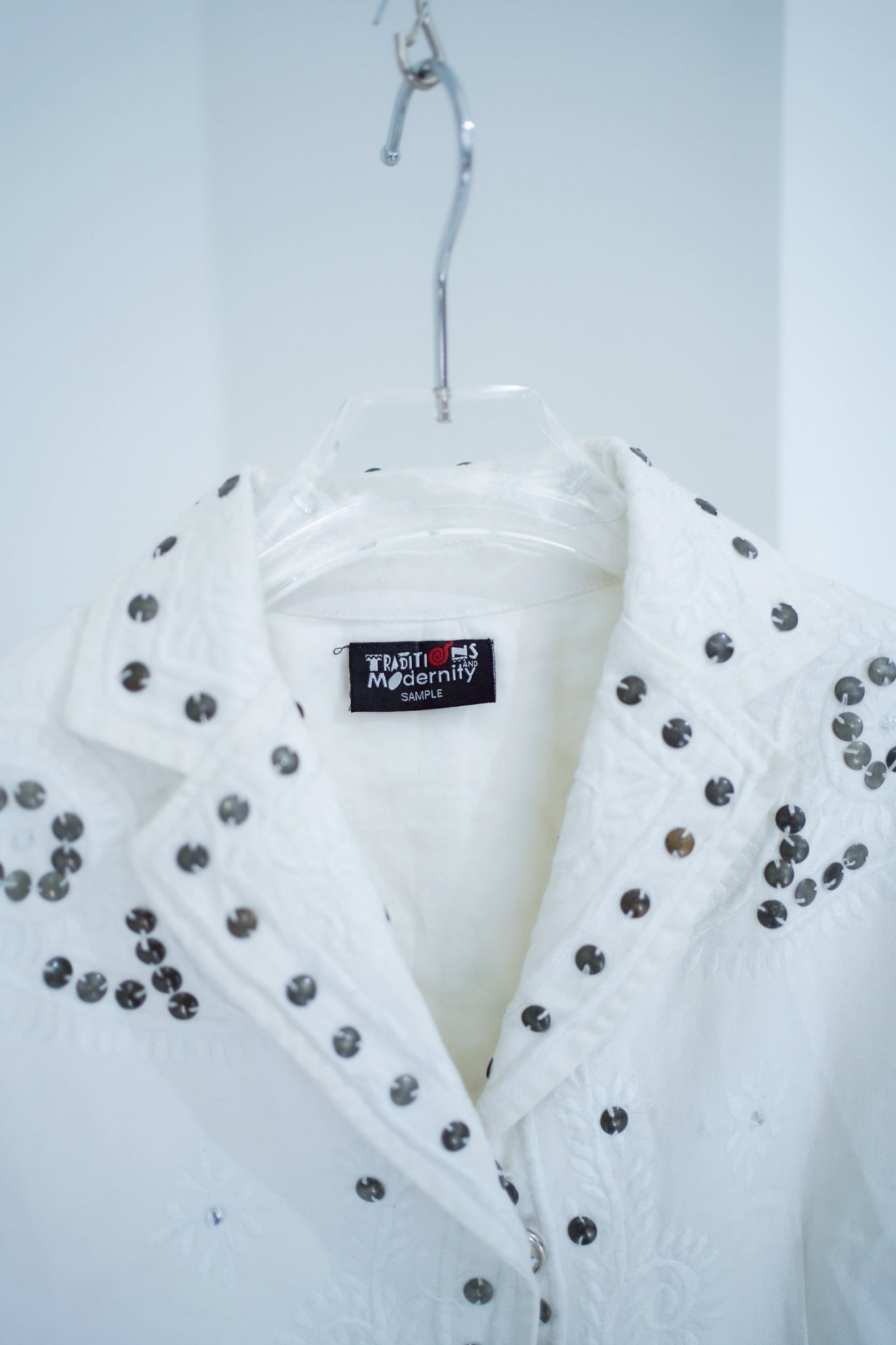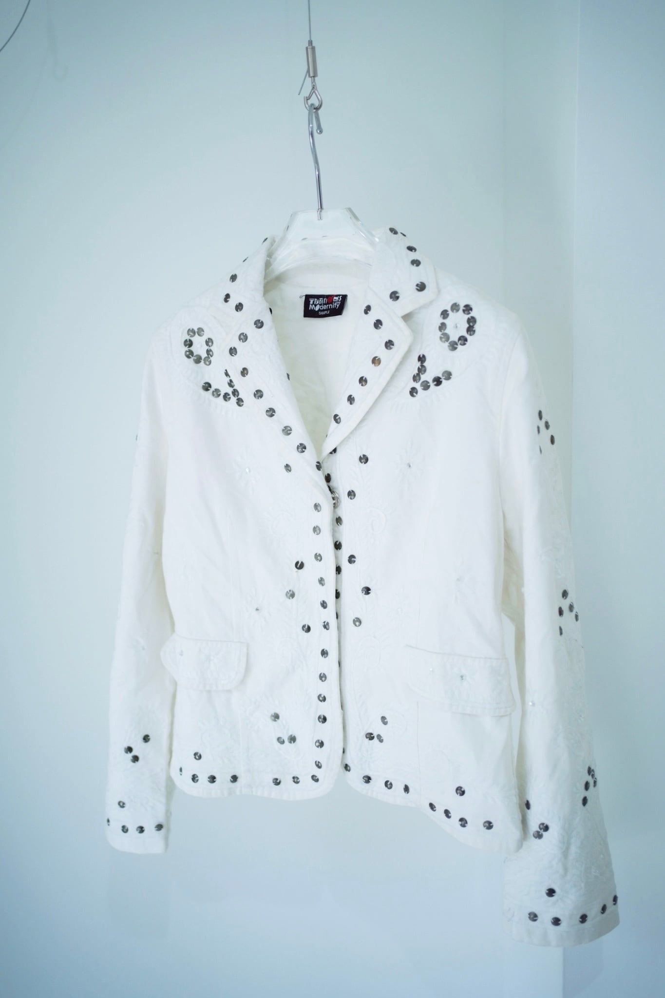 シルバーのサークルビーズの刺繍が