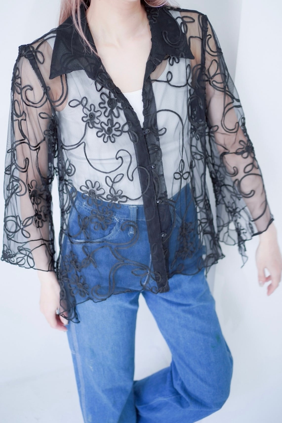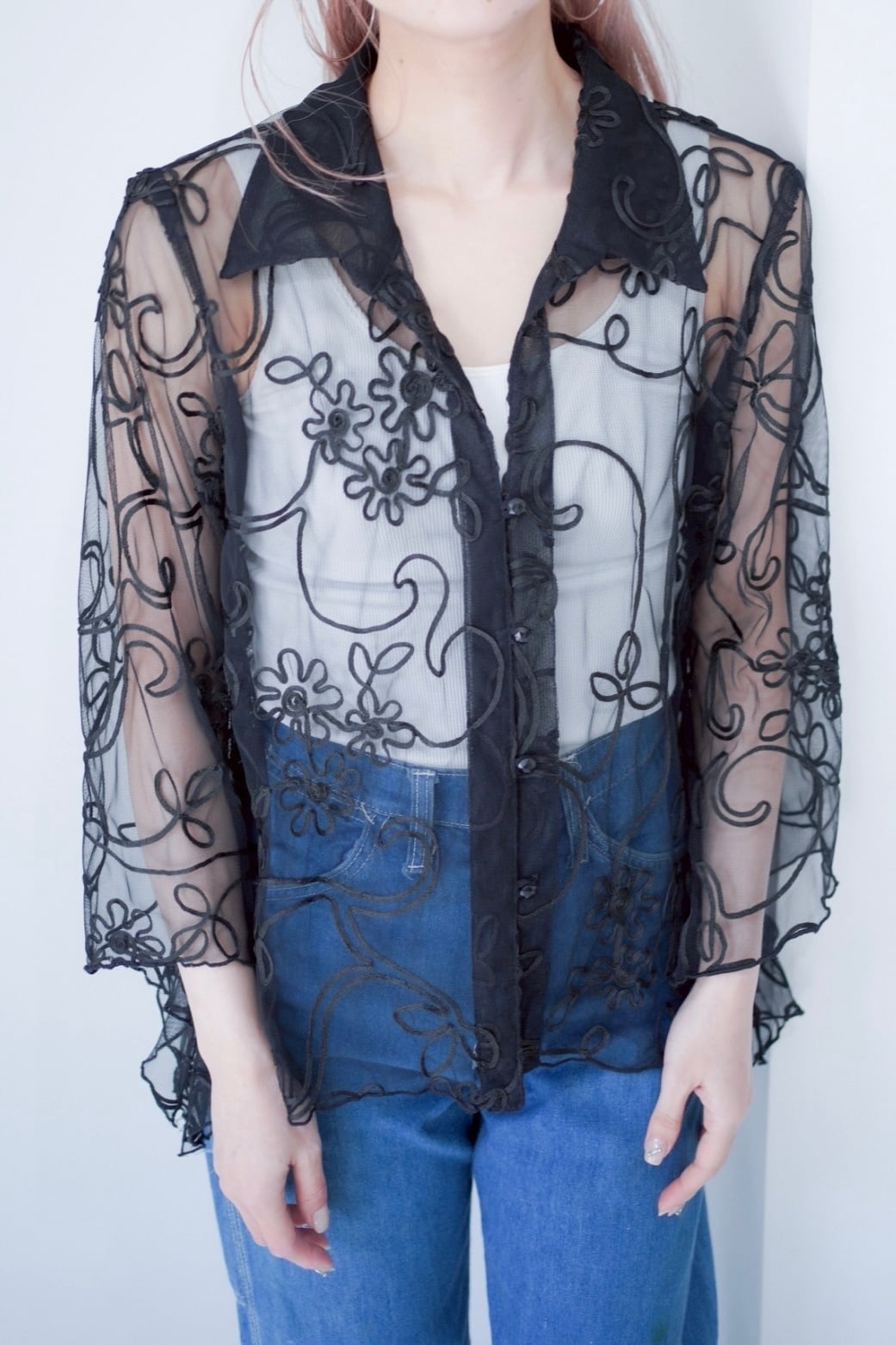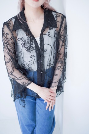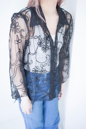 code embroidery sheer shirt