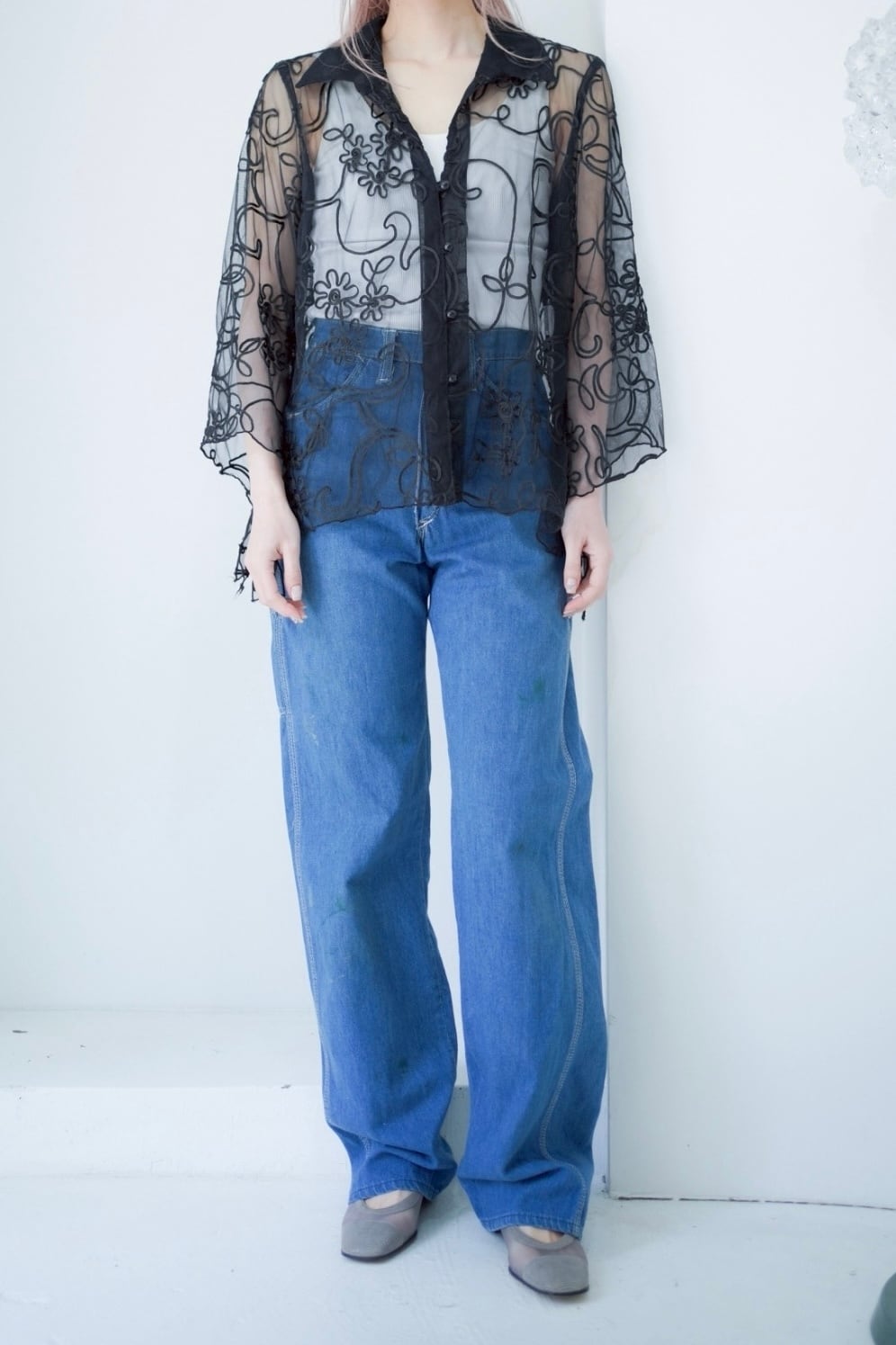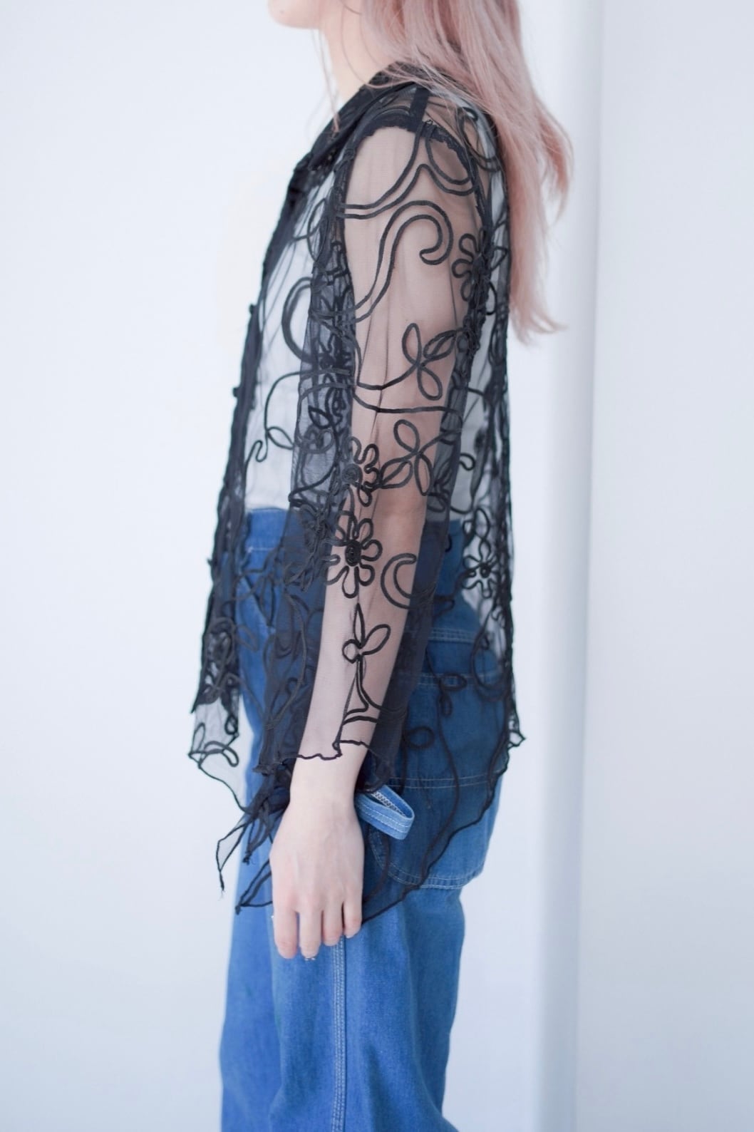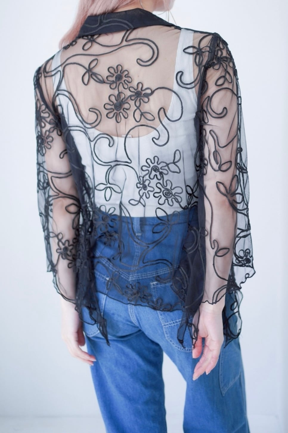 code embroidery sheer shirt