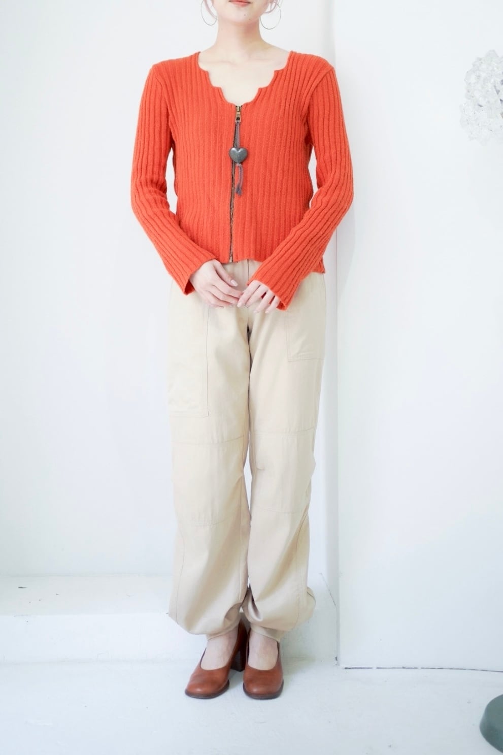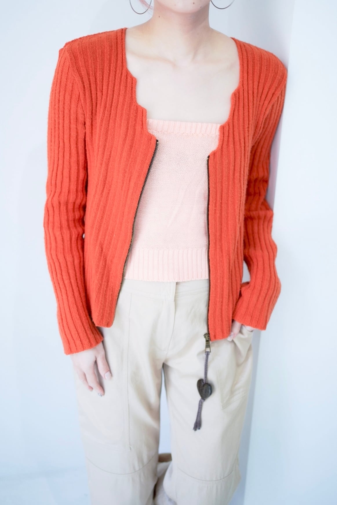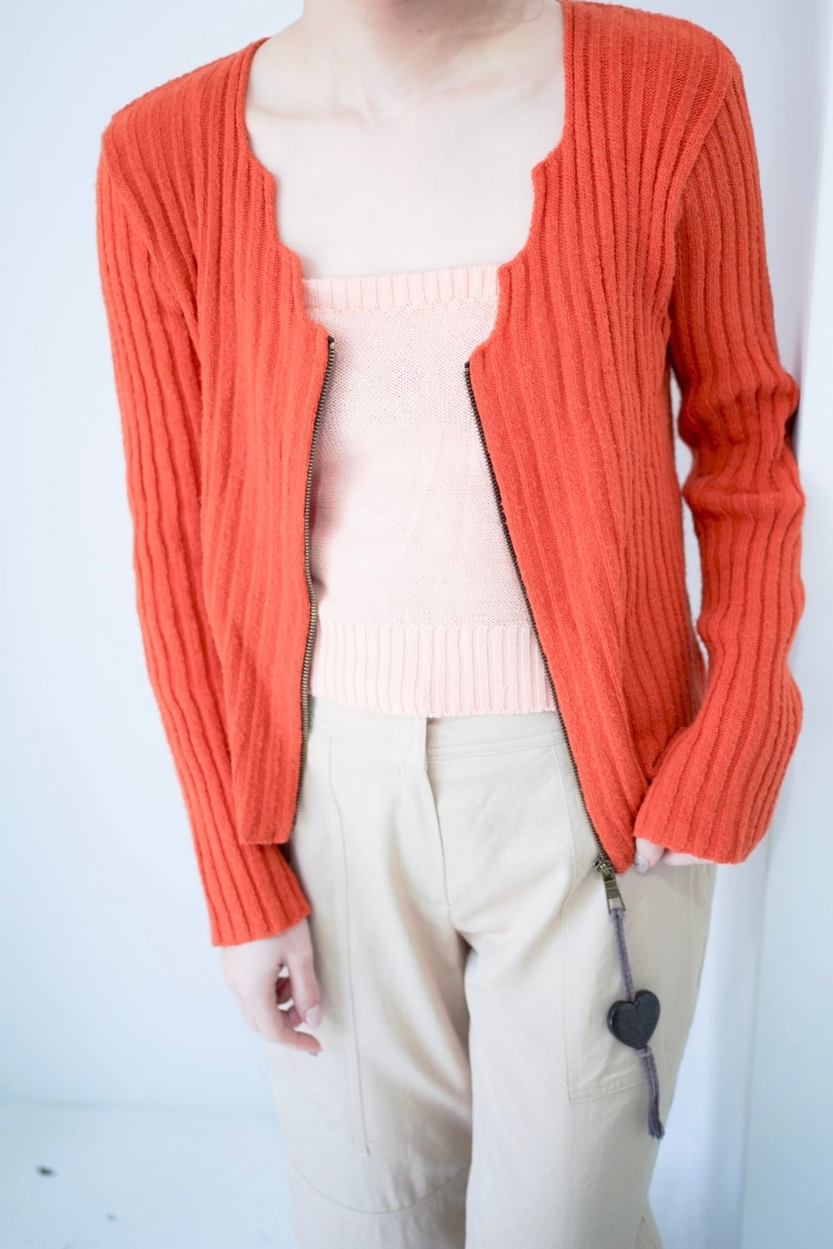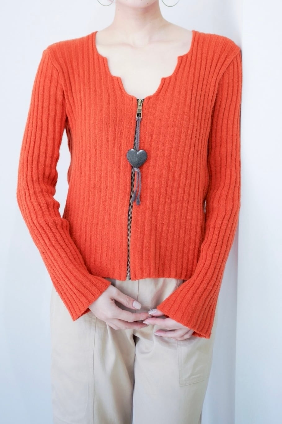 heart zip up knit cardigan