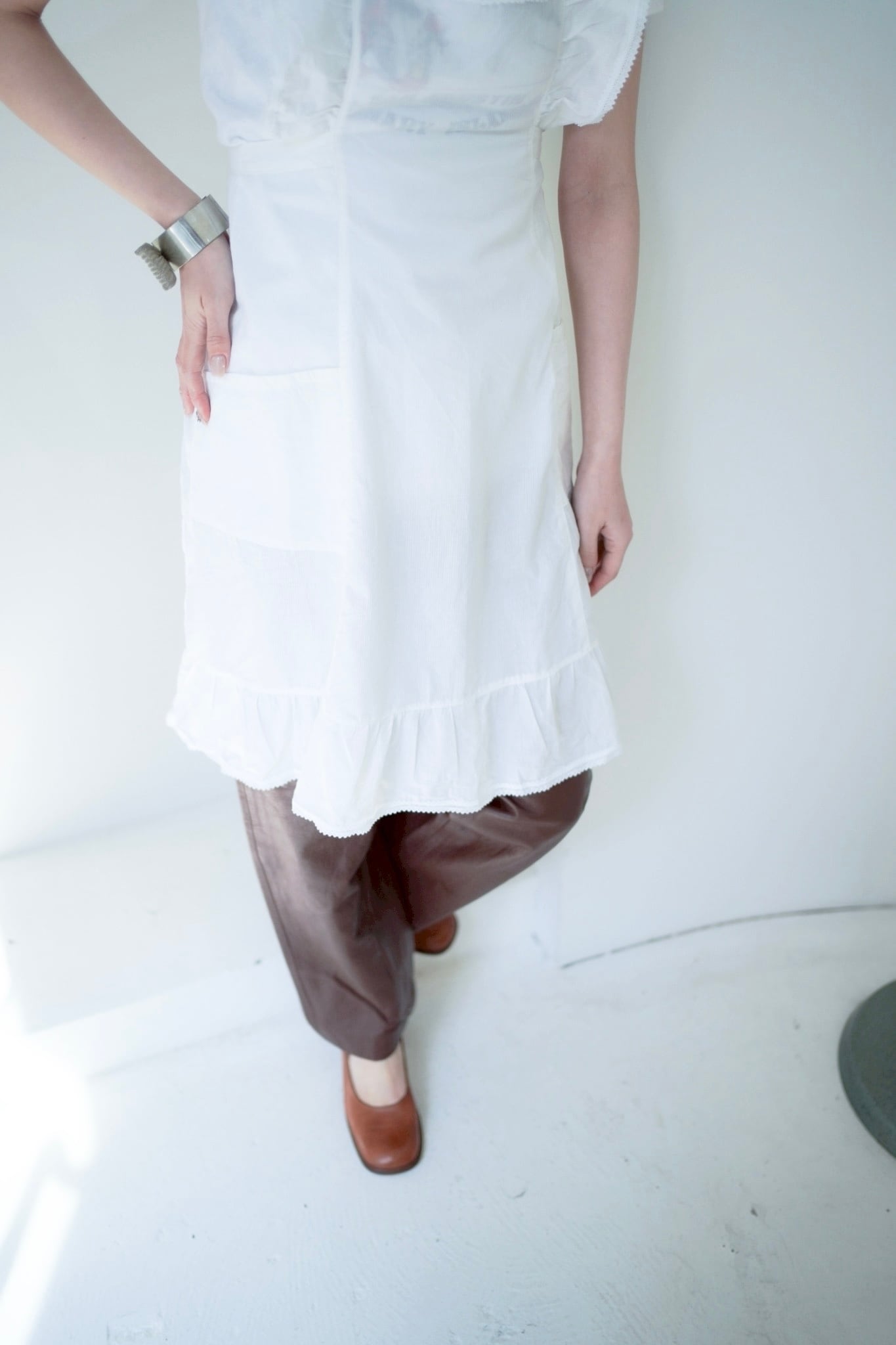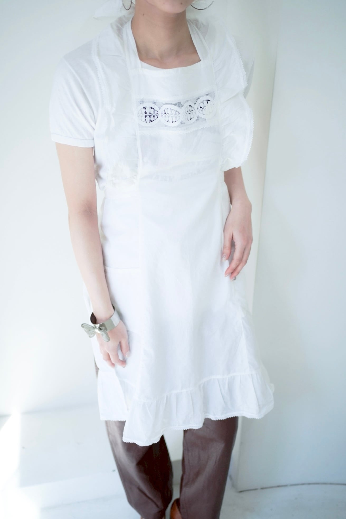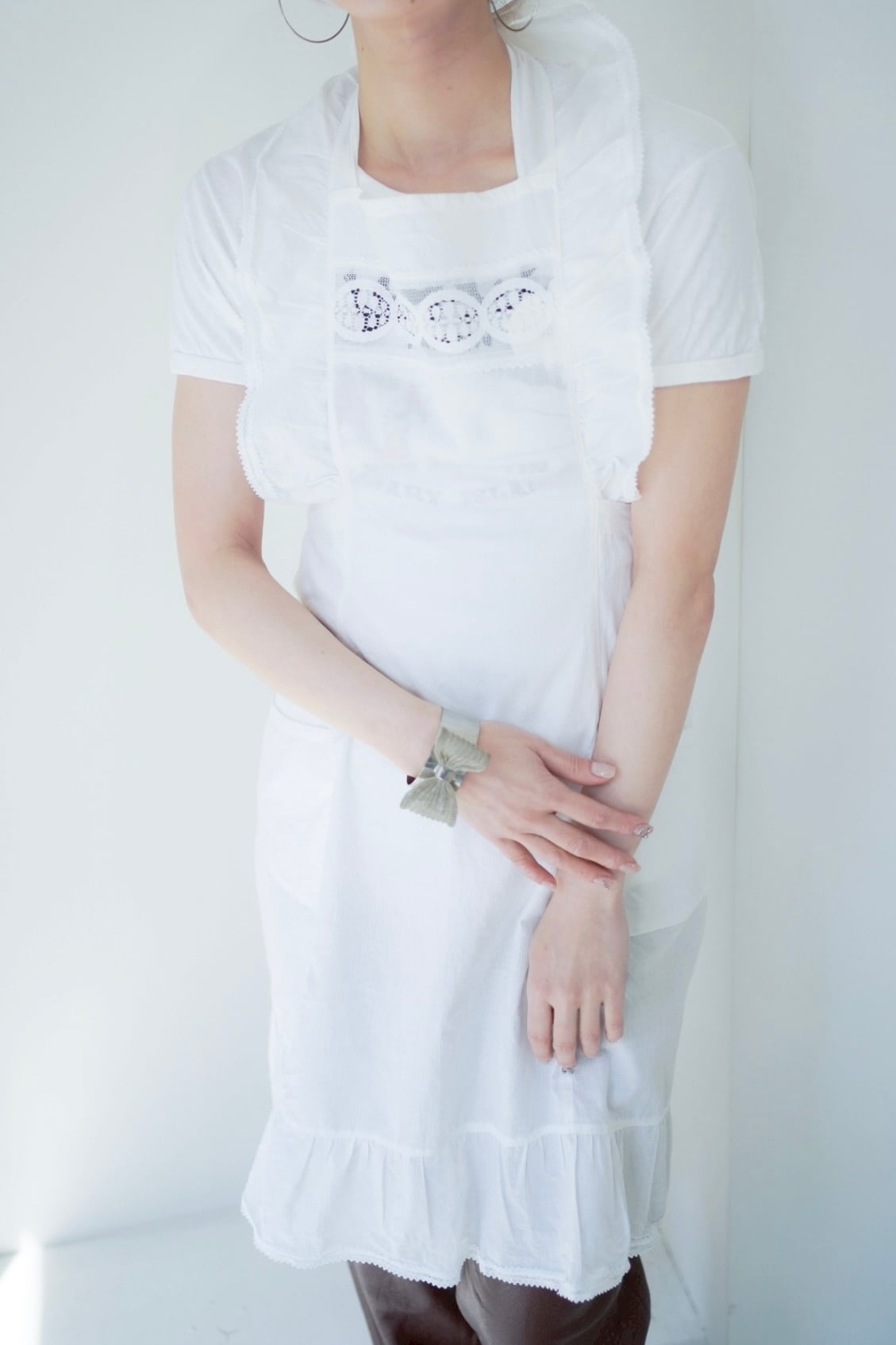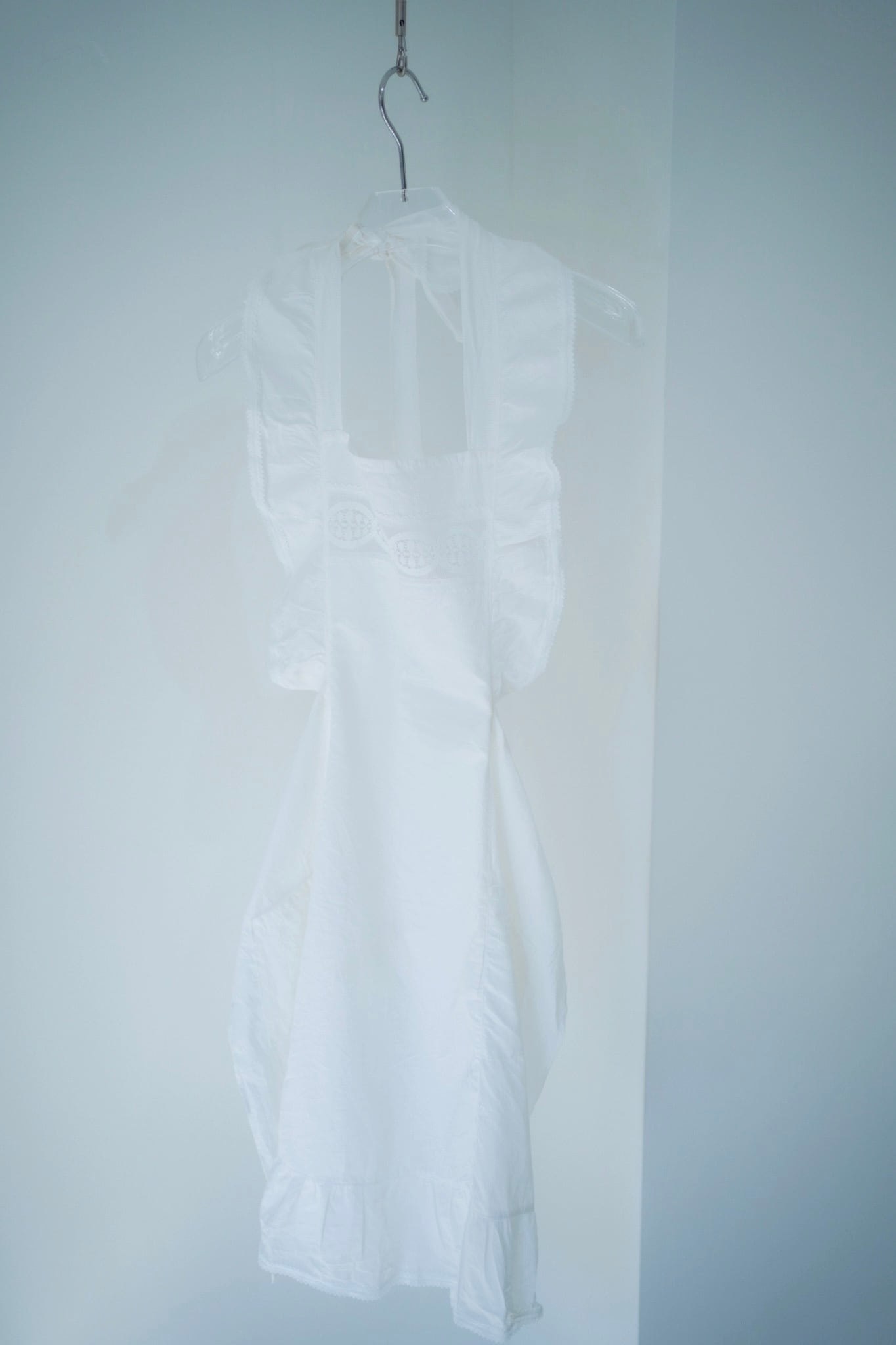 フリルがキュートなホワイトエプロン。
