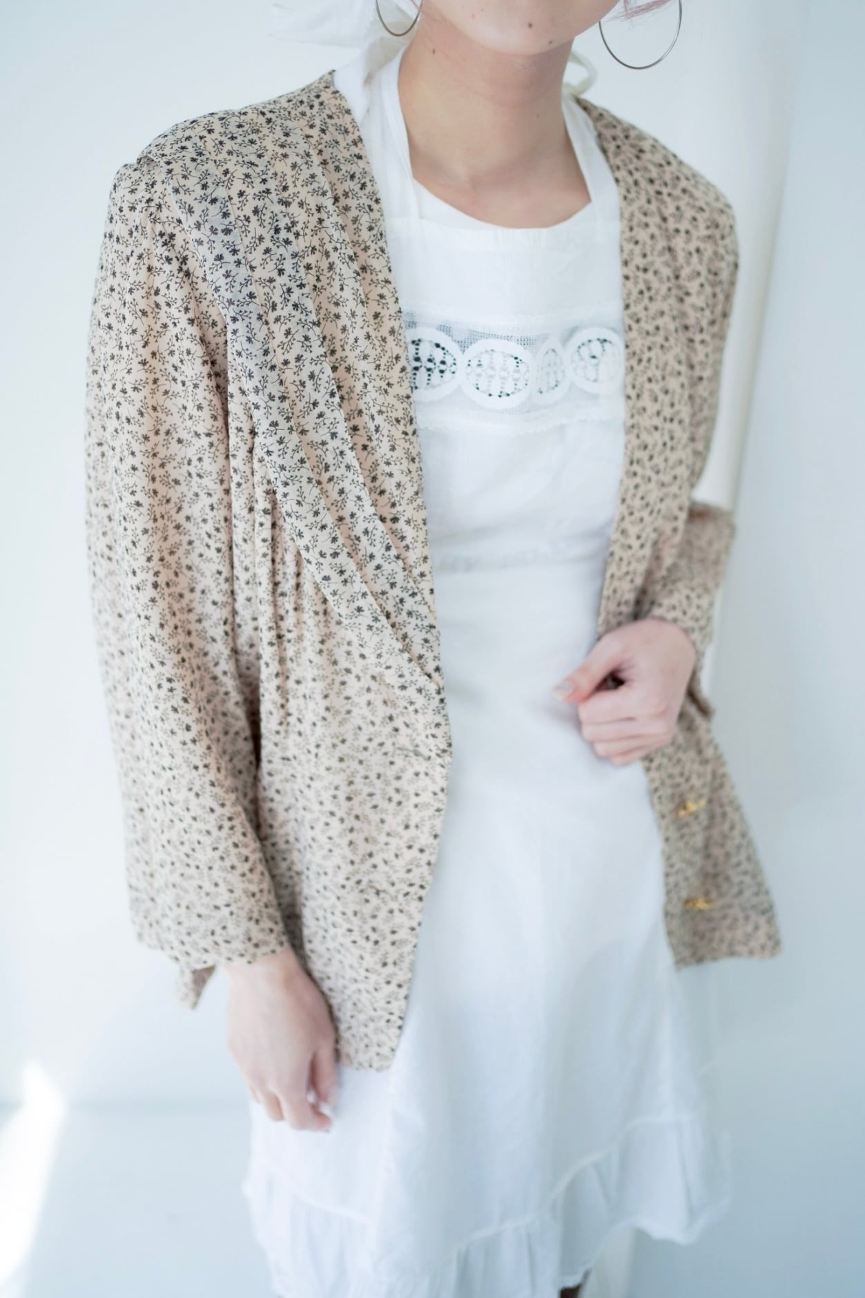 襟元と裾がふんわりと揺れる