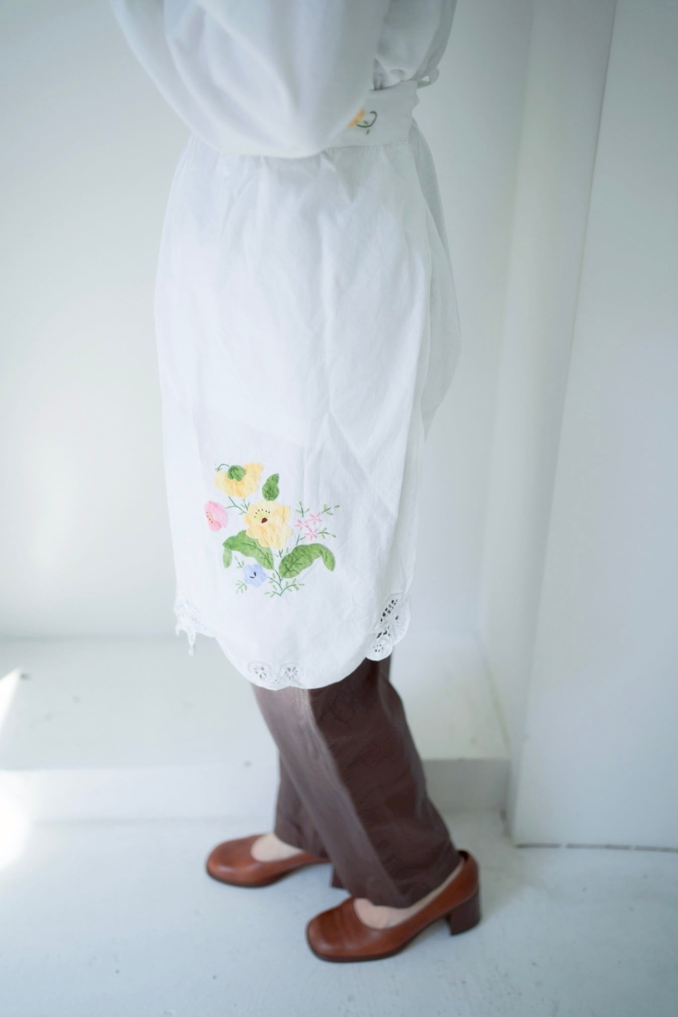 裾にはカットワークレースがランダムに