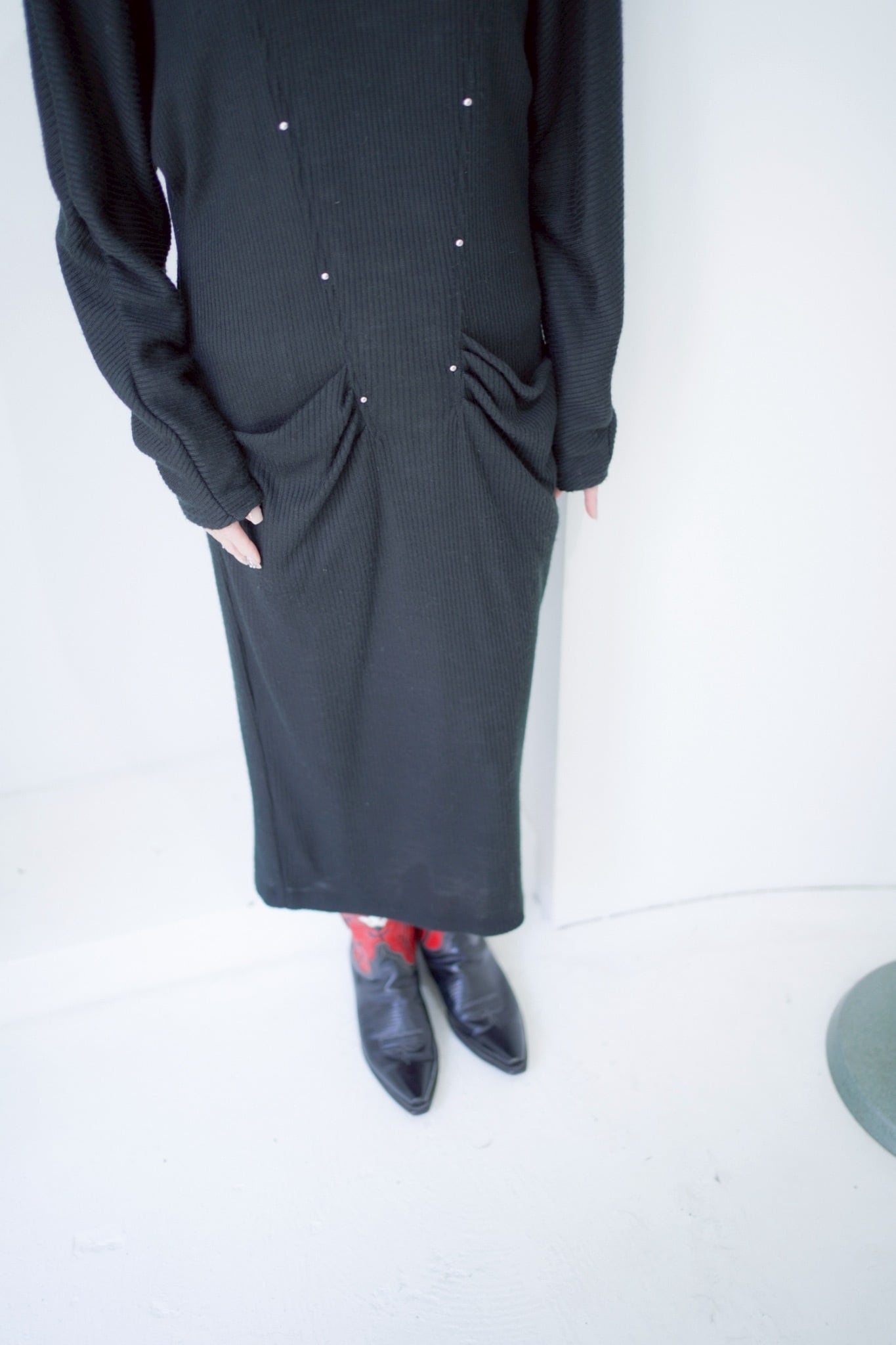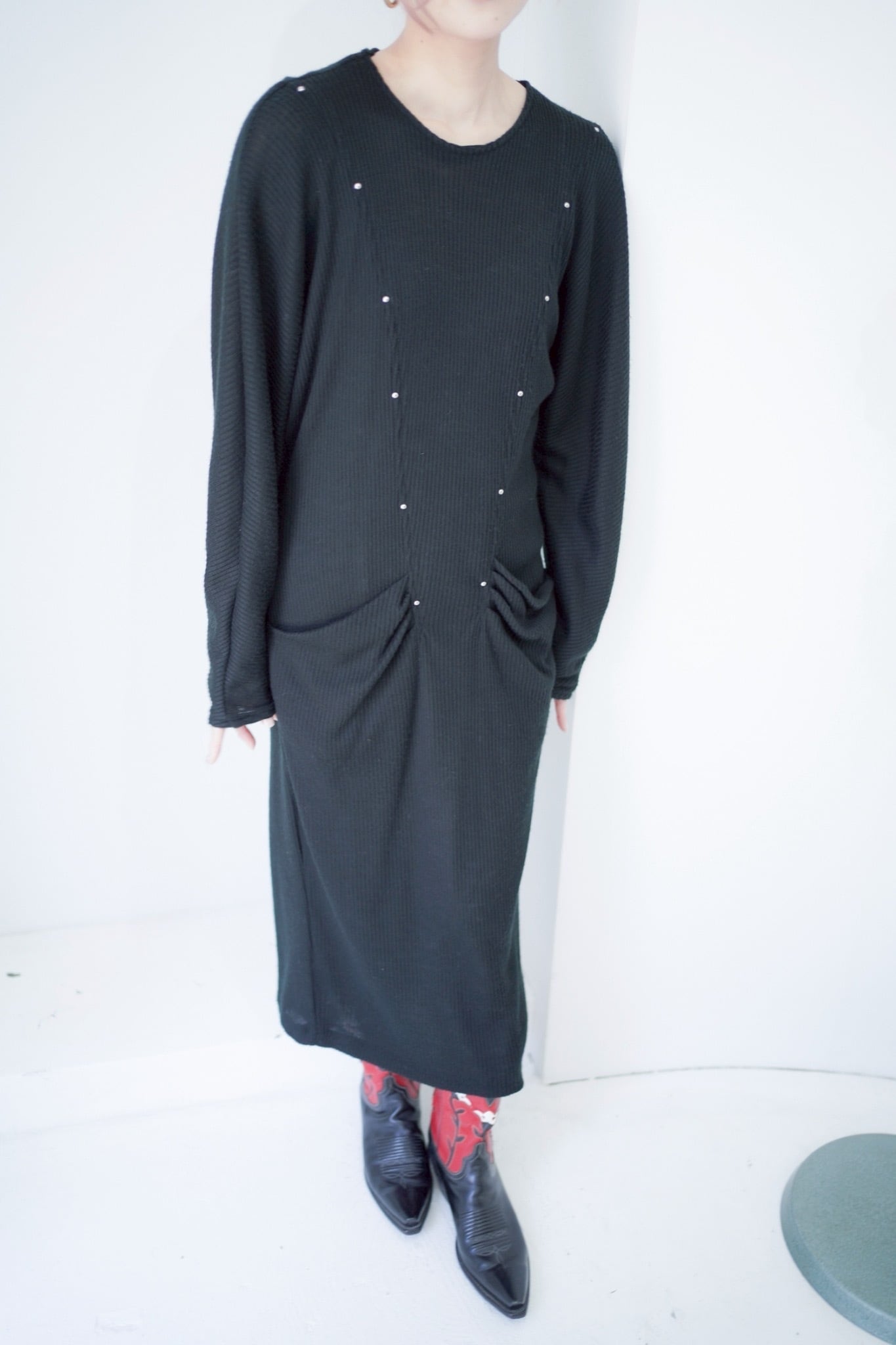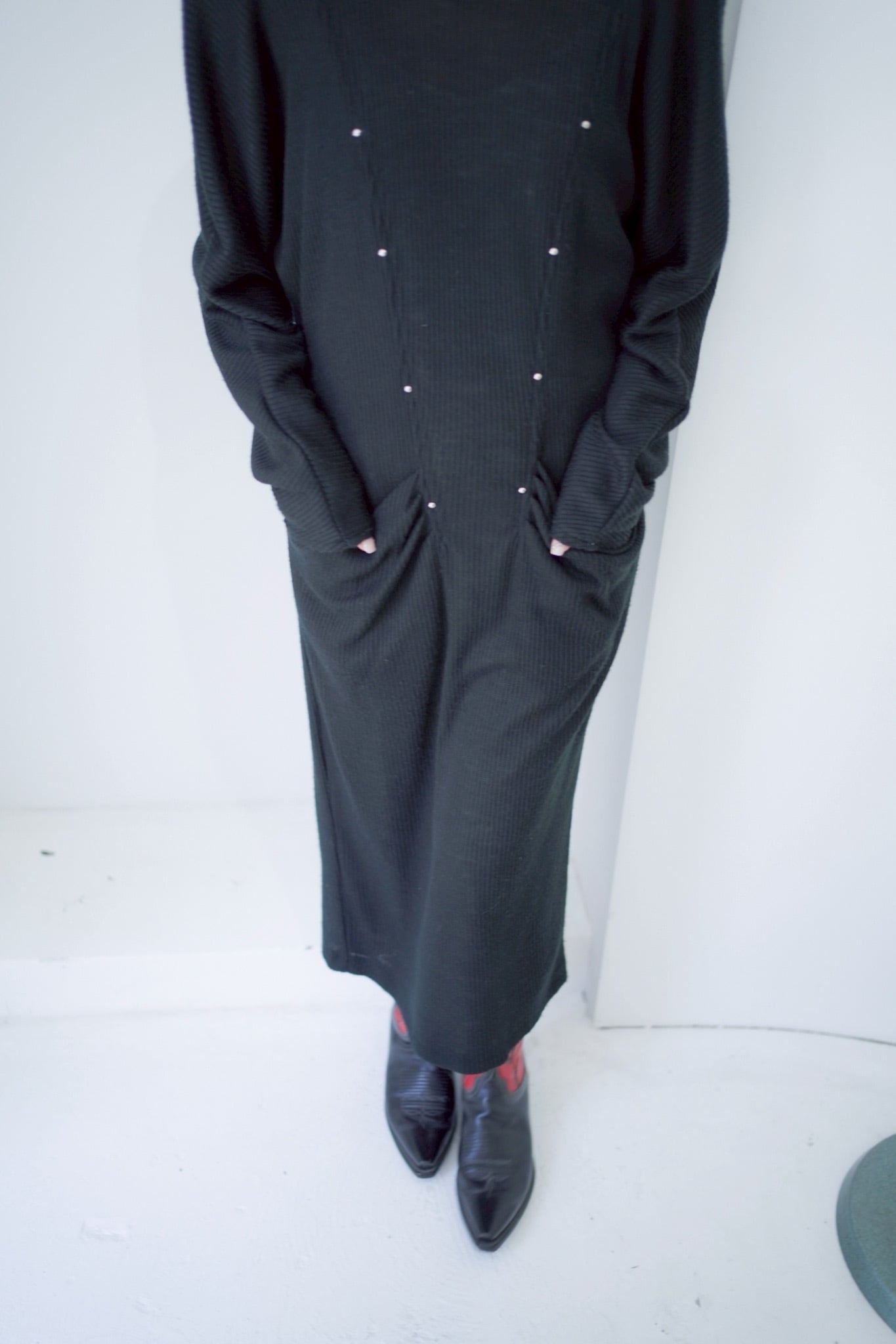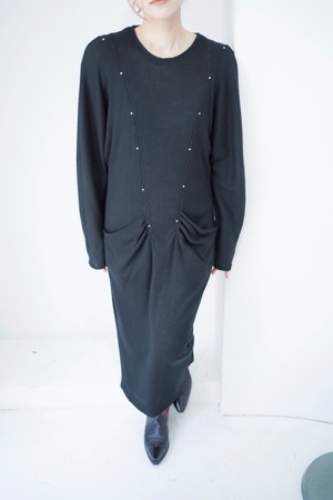 black studs rib long dress