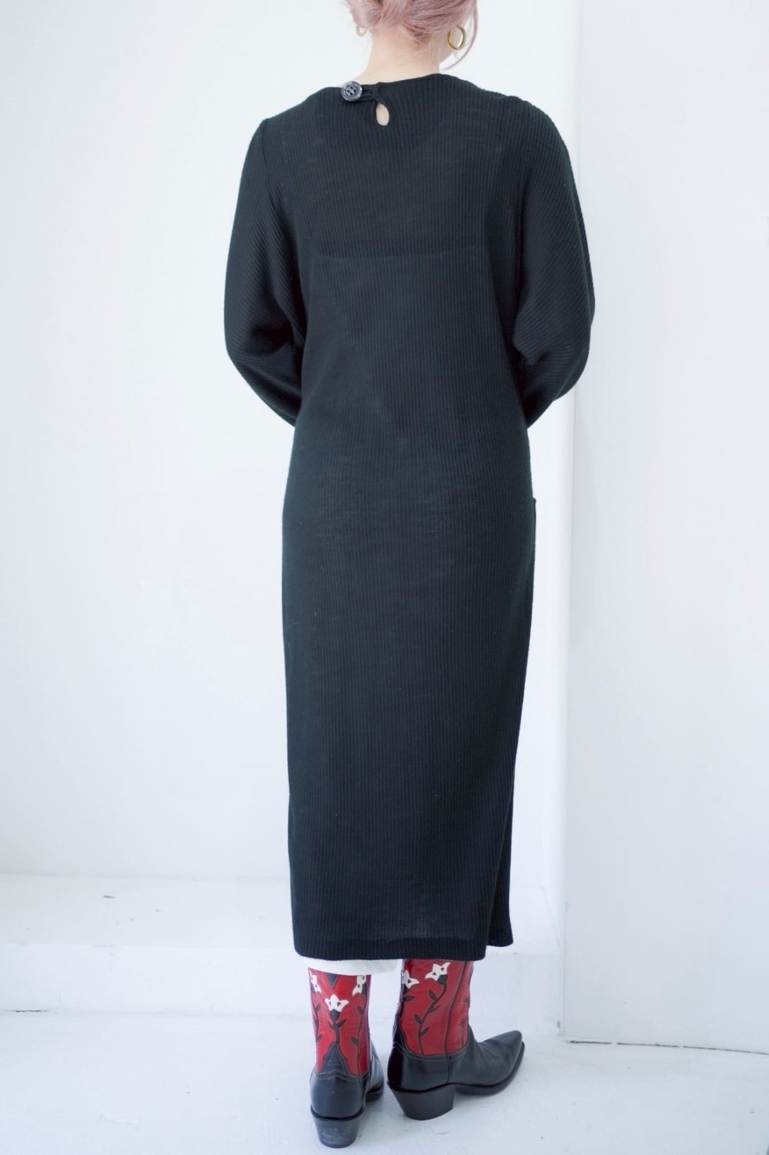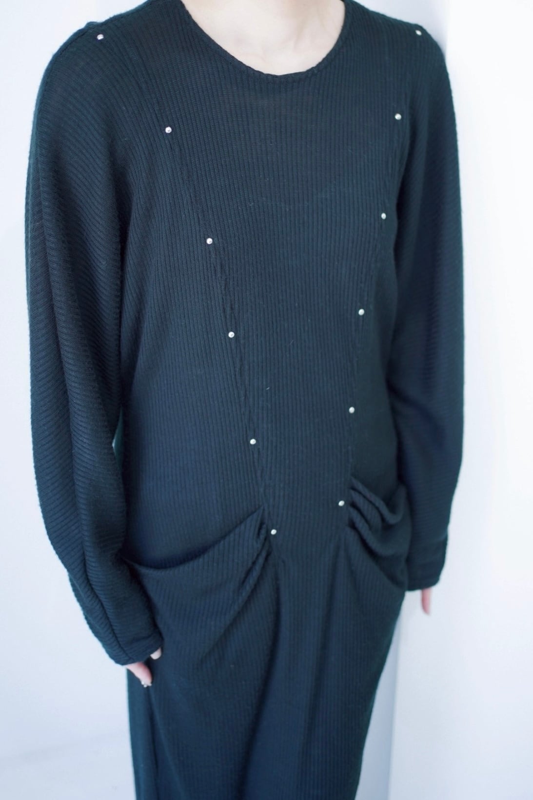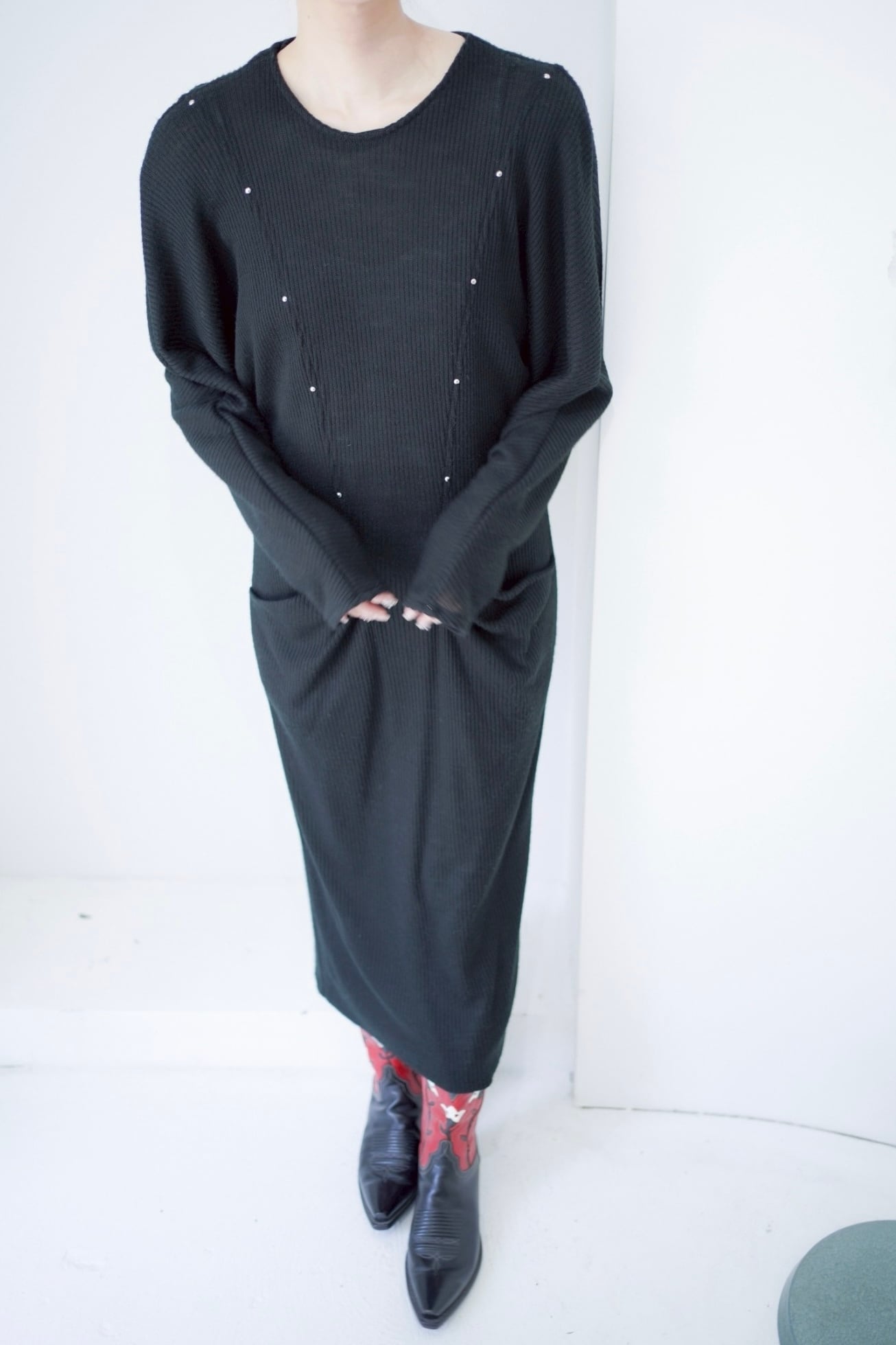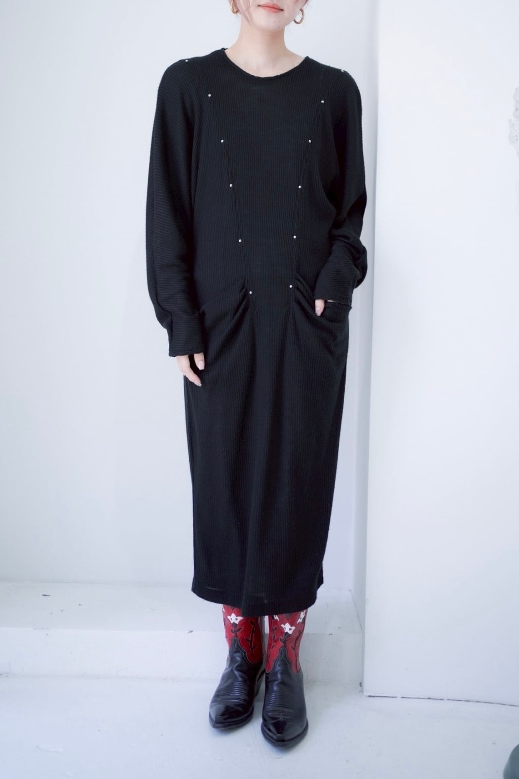 black studs rib long dress