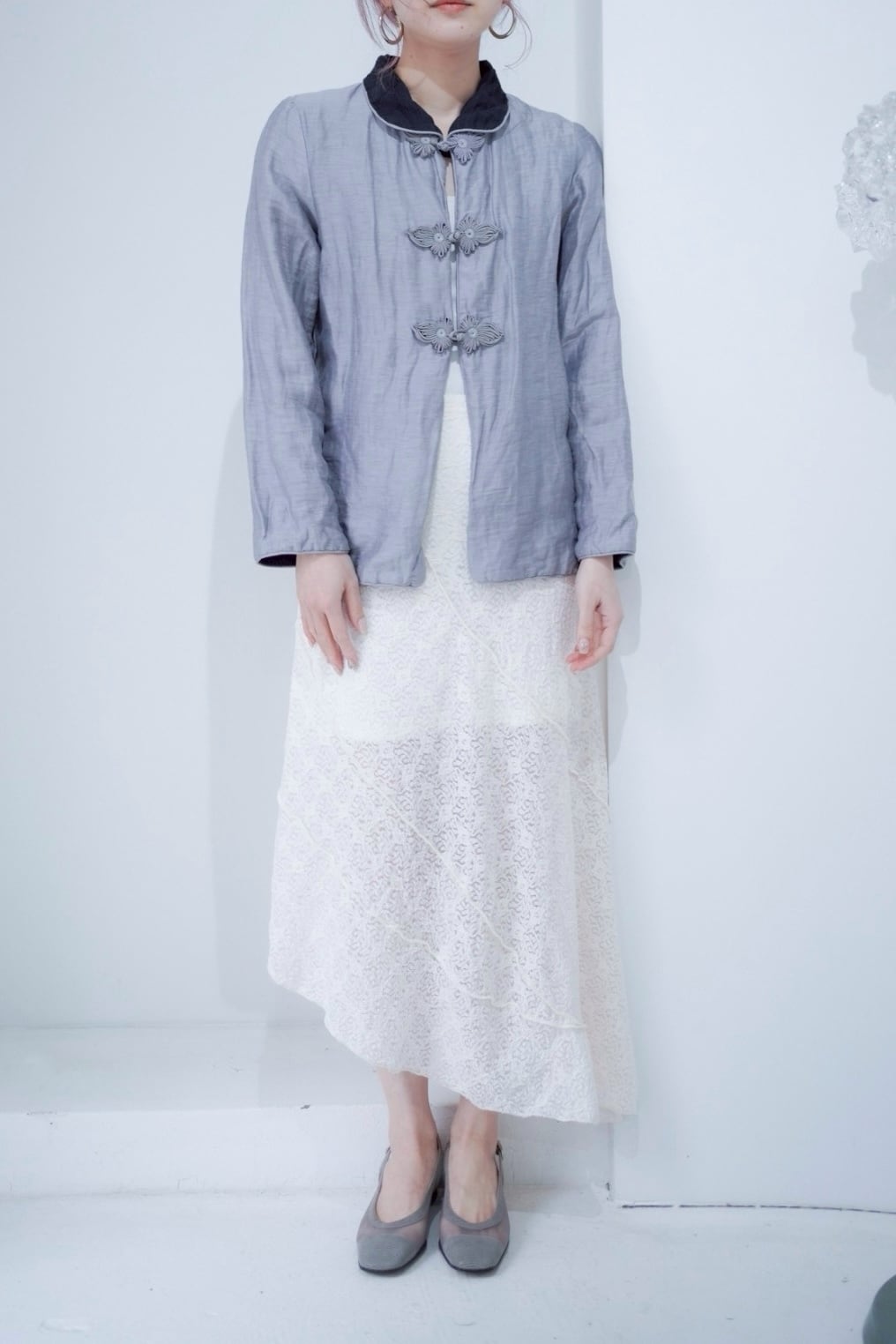 レースのシアー感と斜めにデザインされた