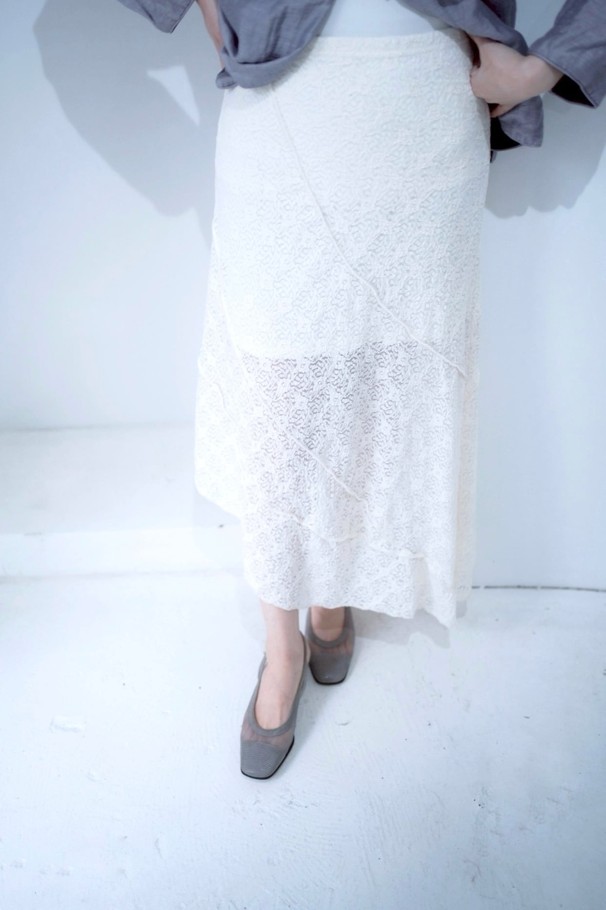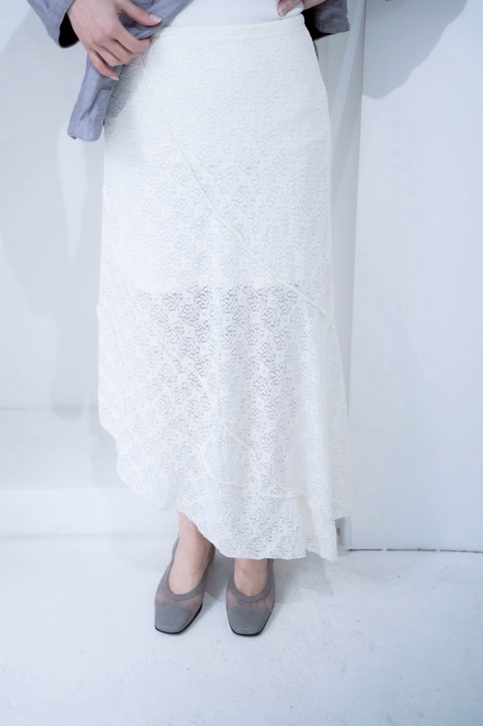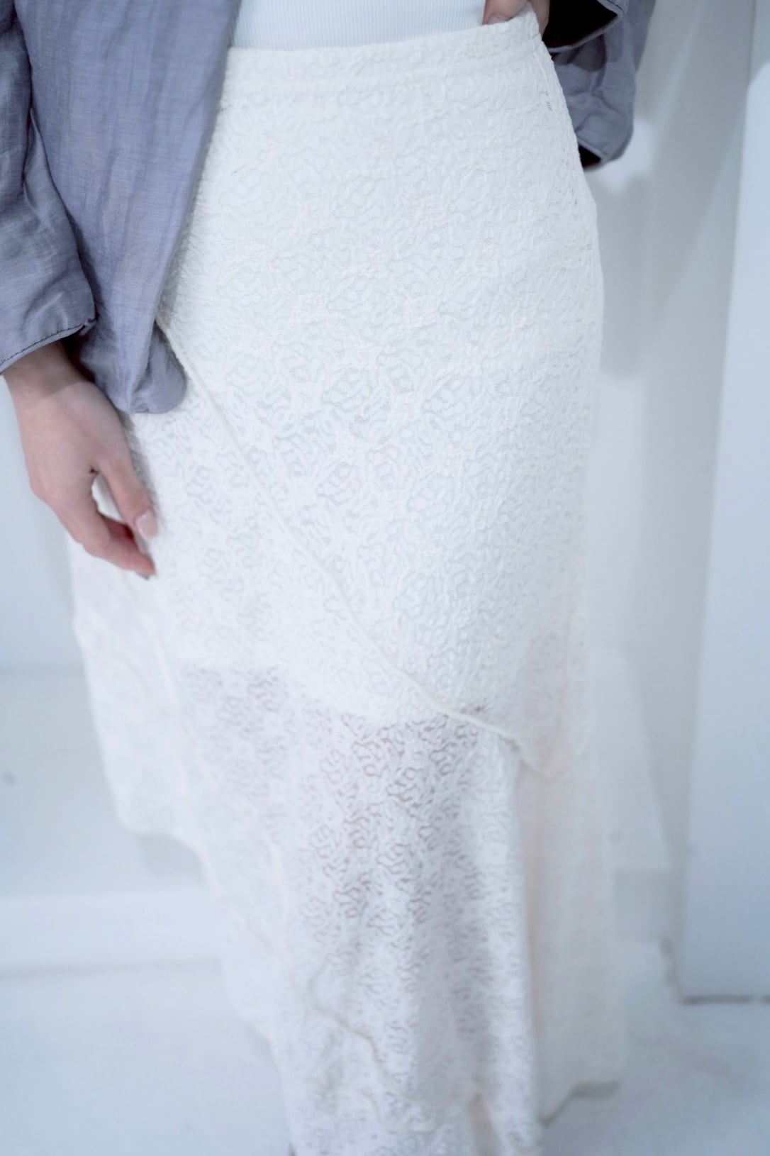 シルエットが素敵なホワイトレーススカート。