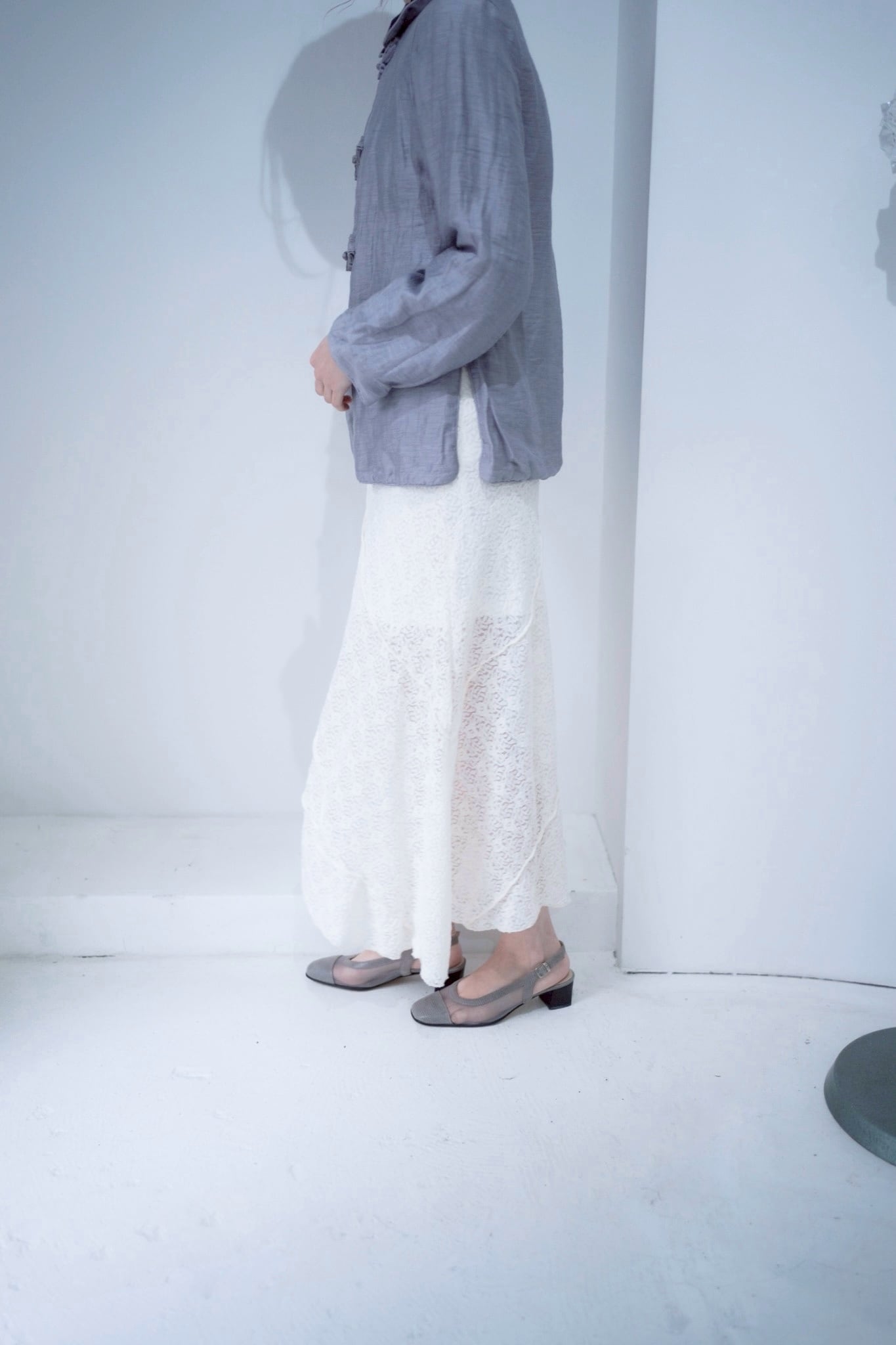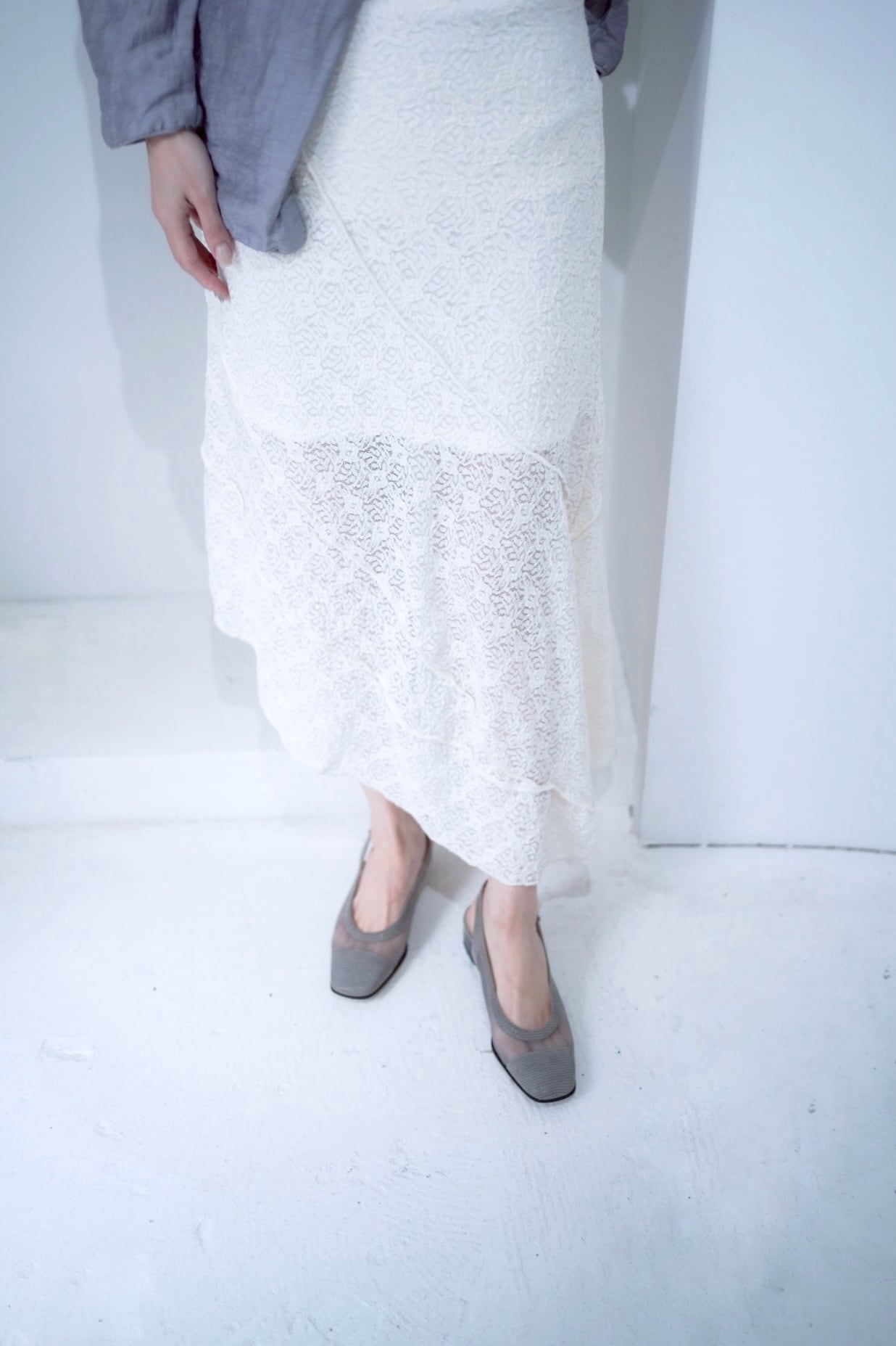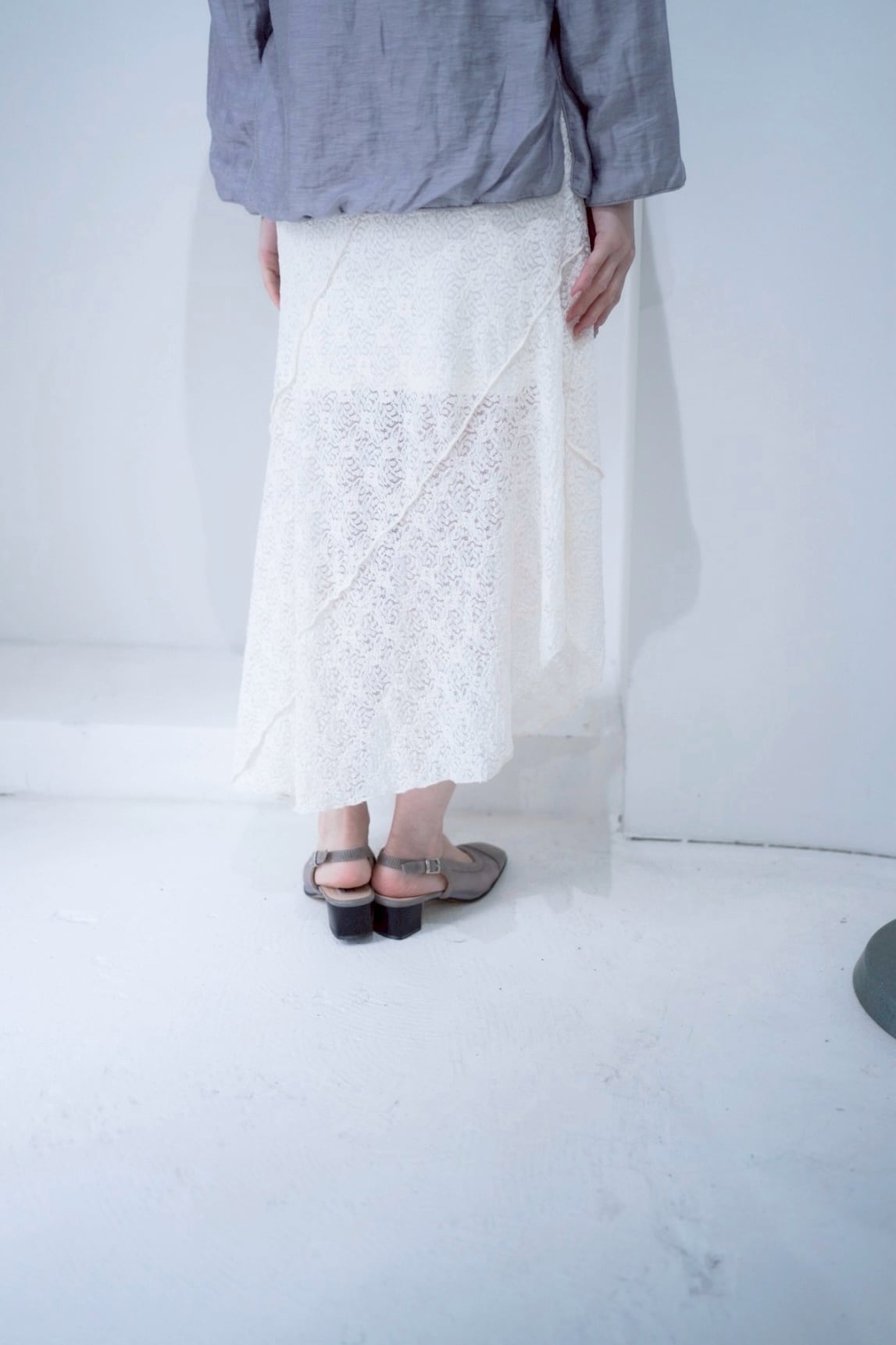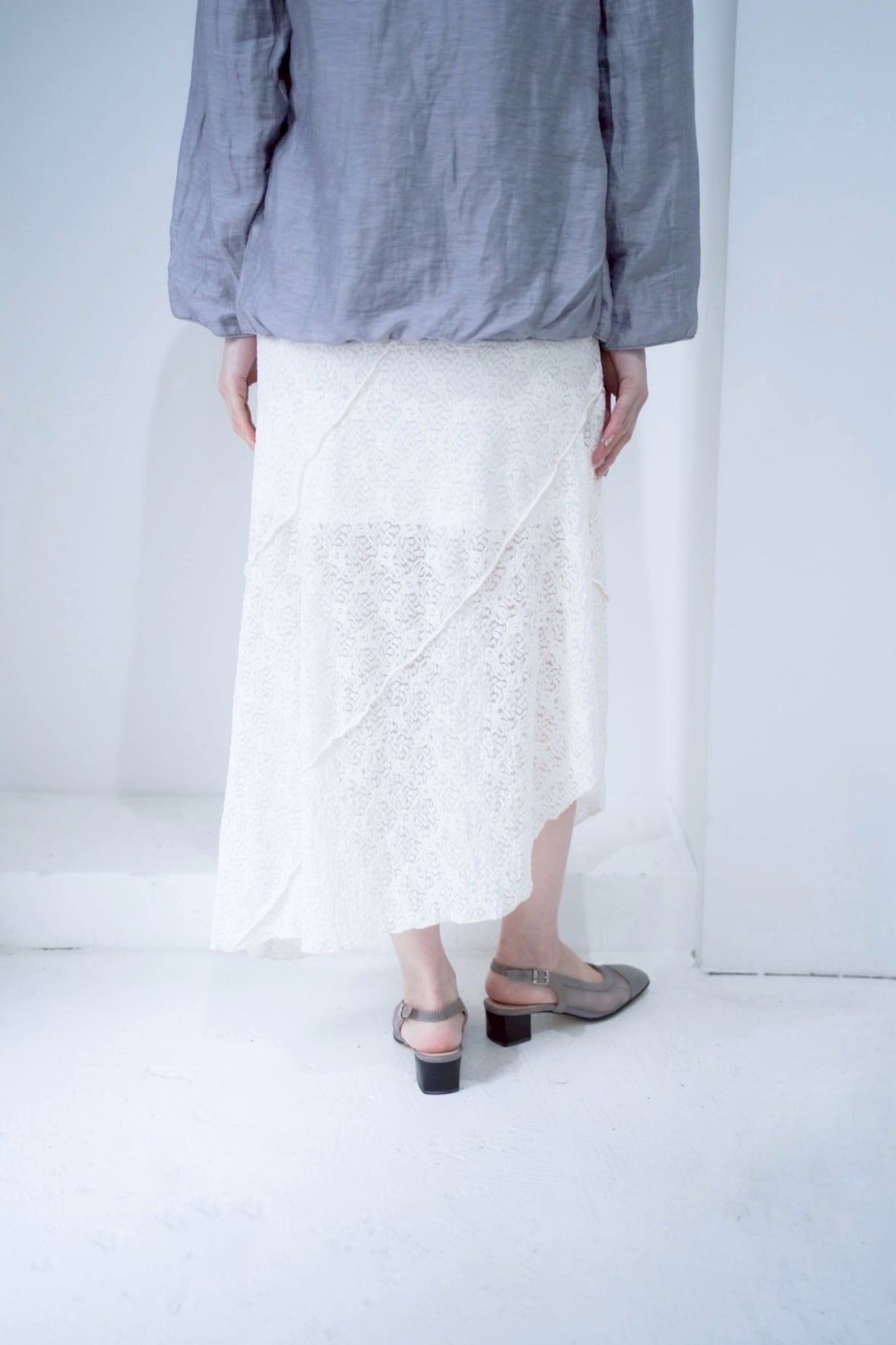 シルエットが素敵なホワイトレーススカート。