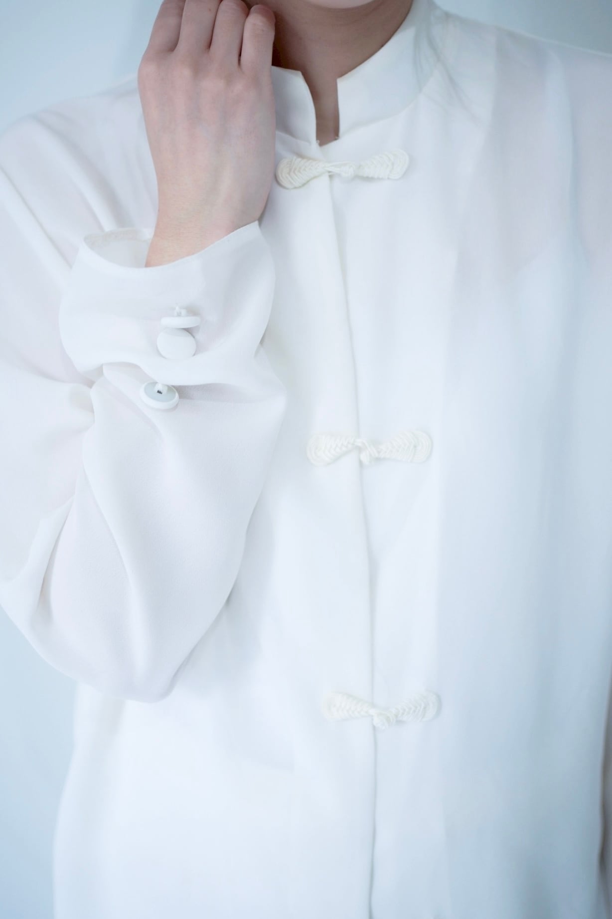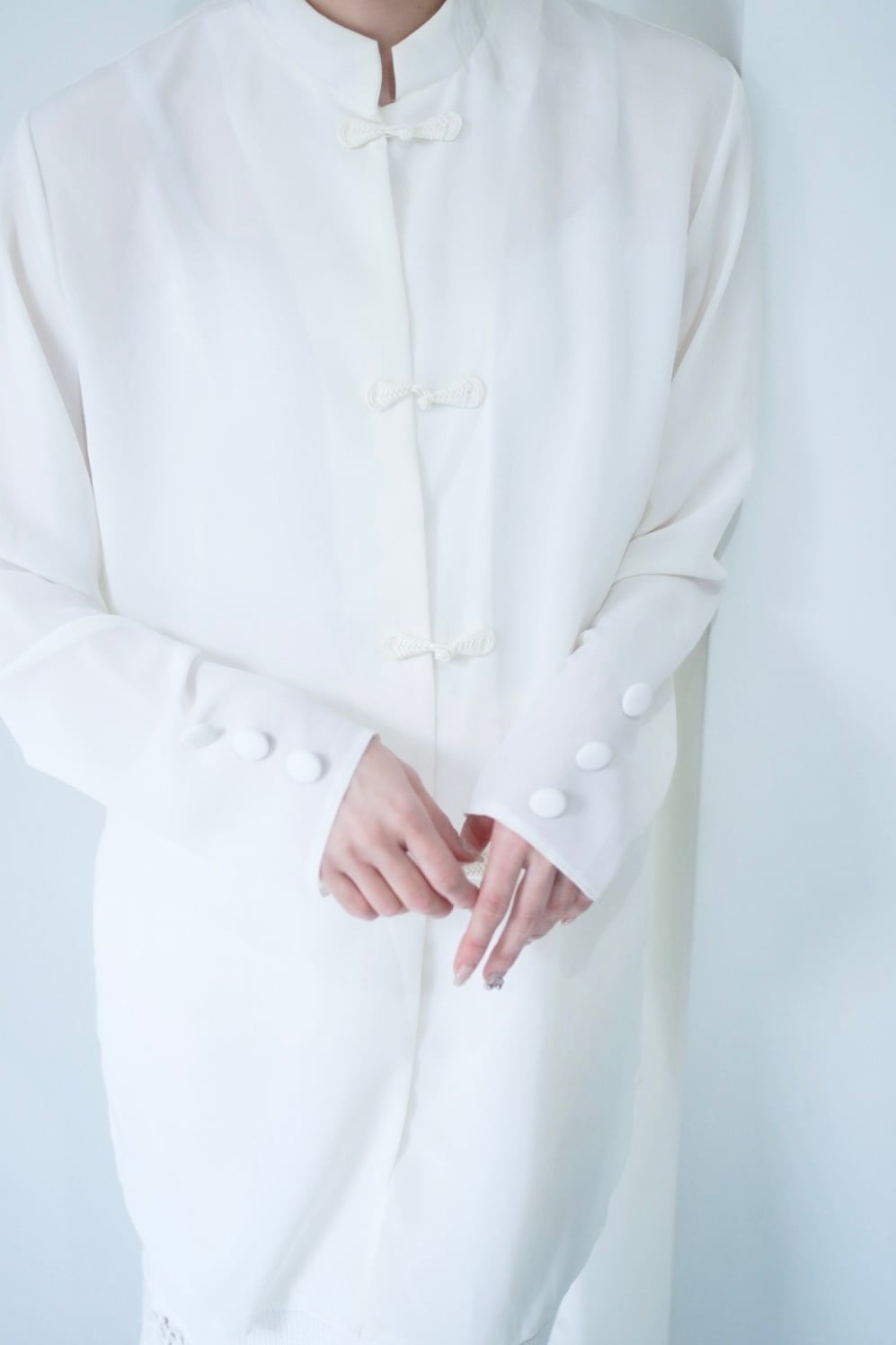 白いロングチャイナシャツ。
