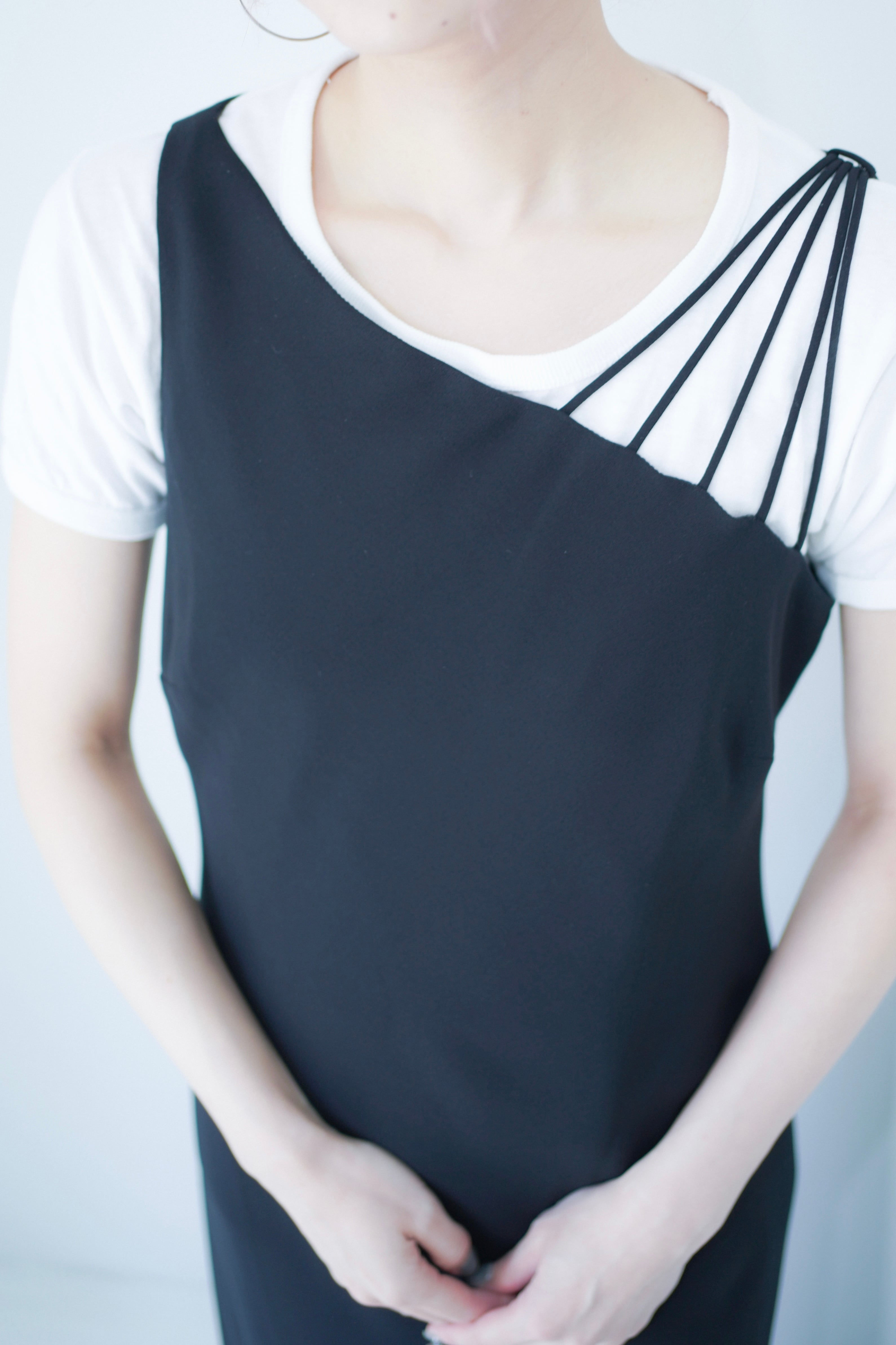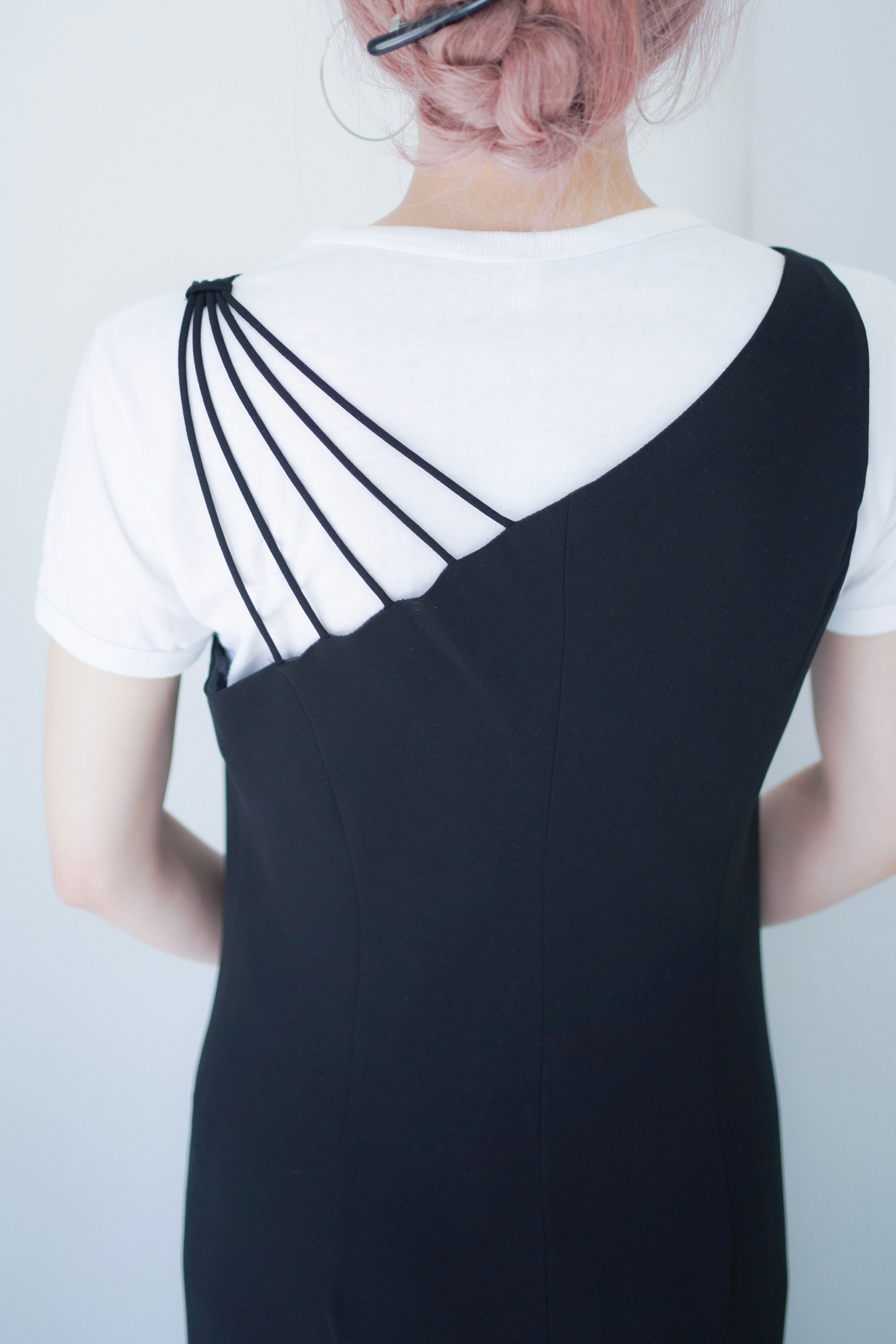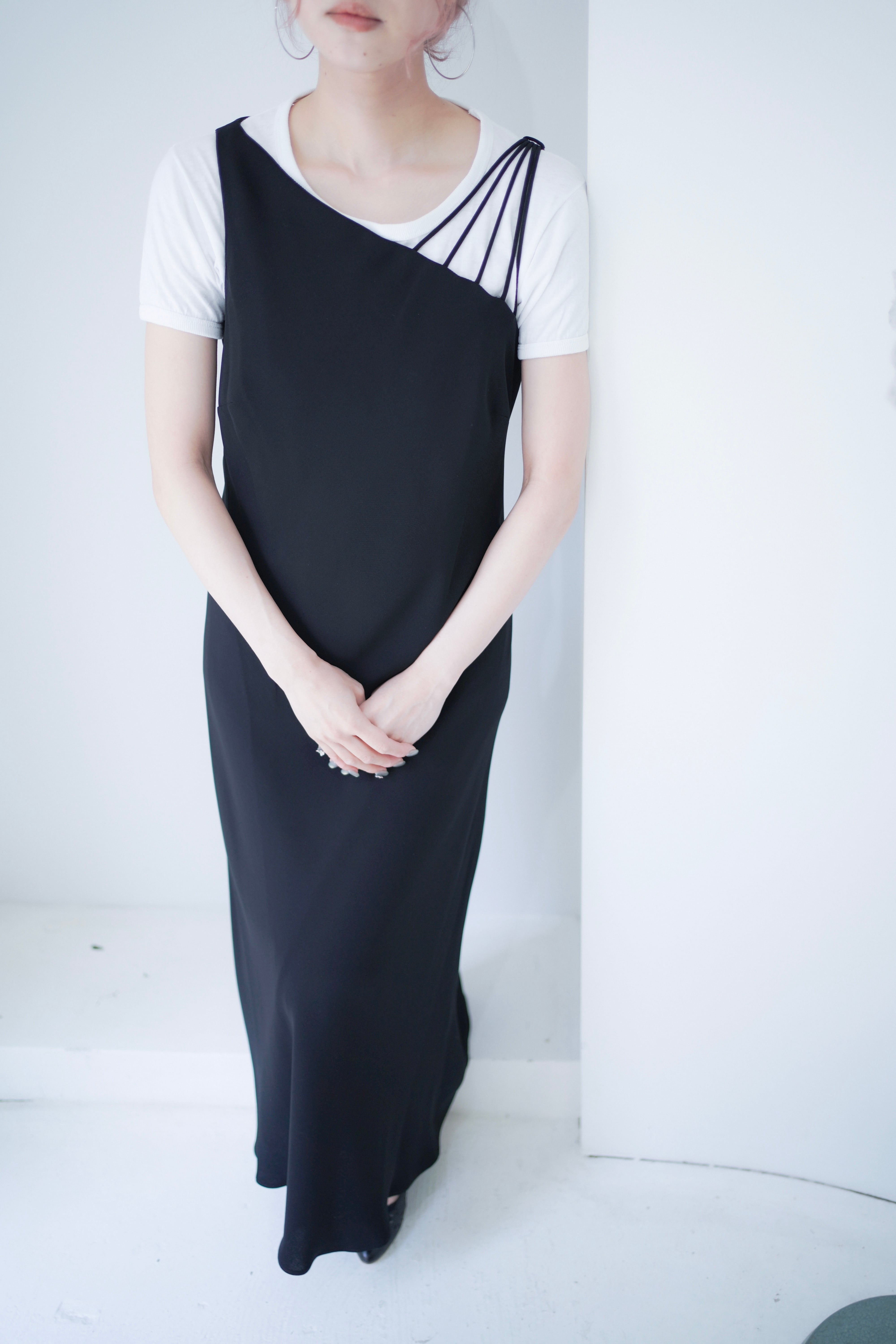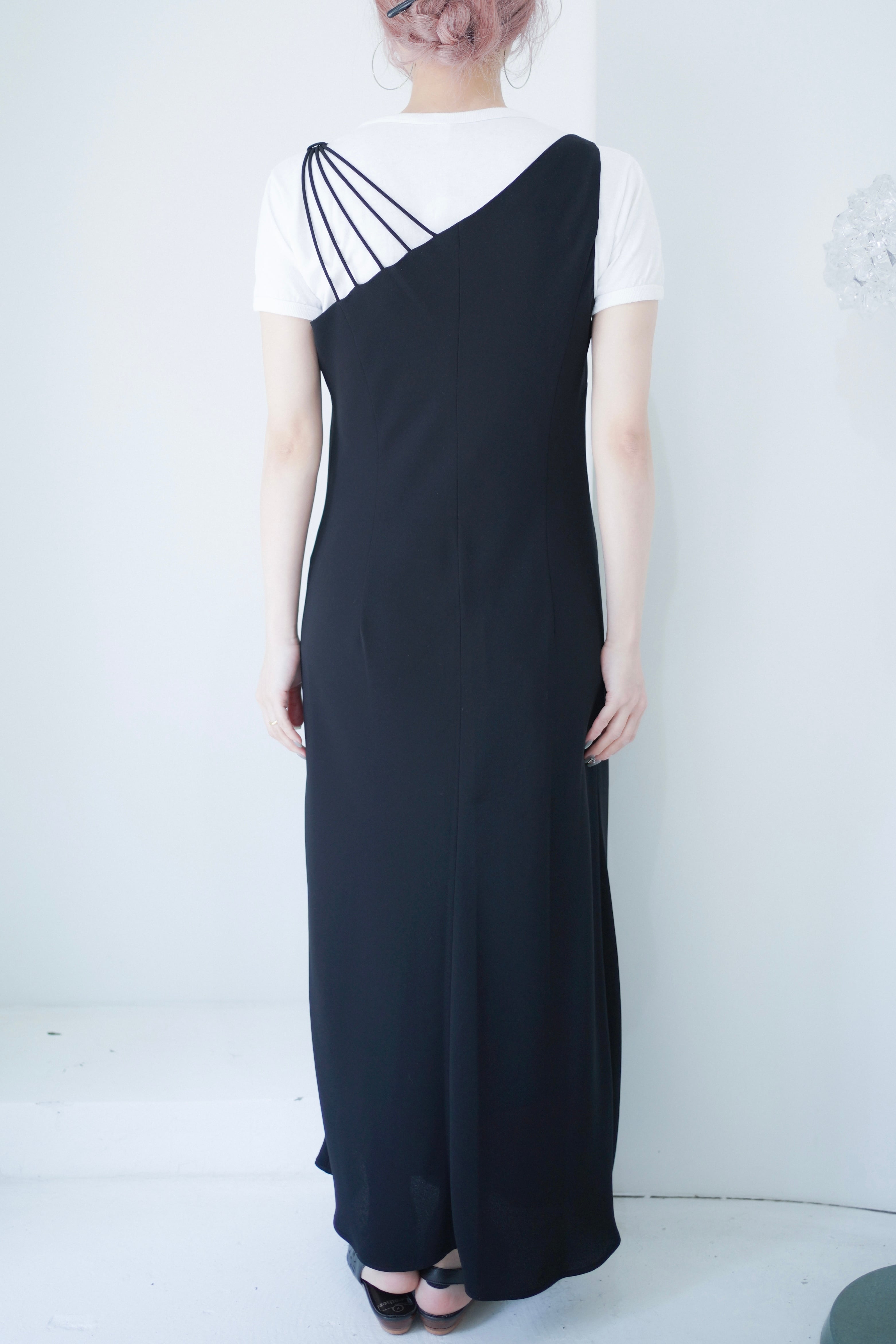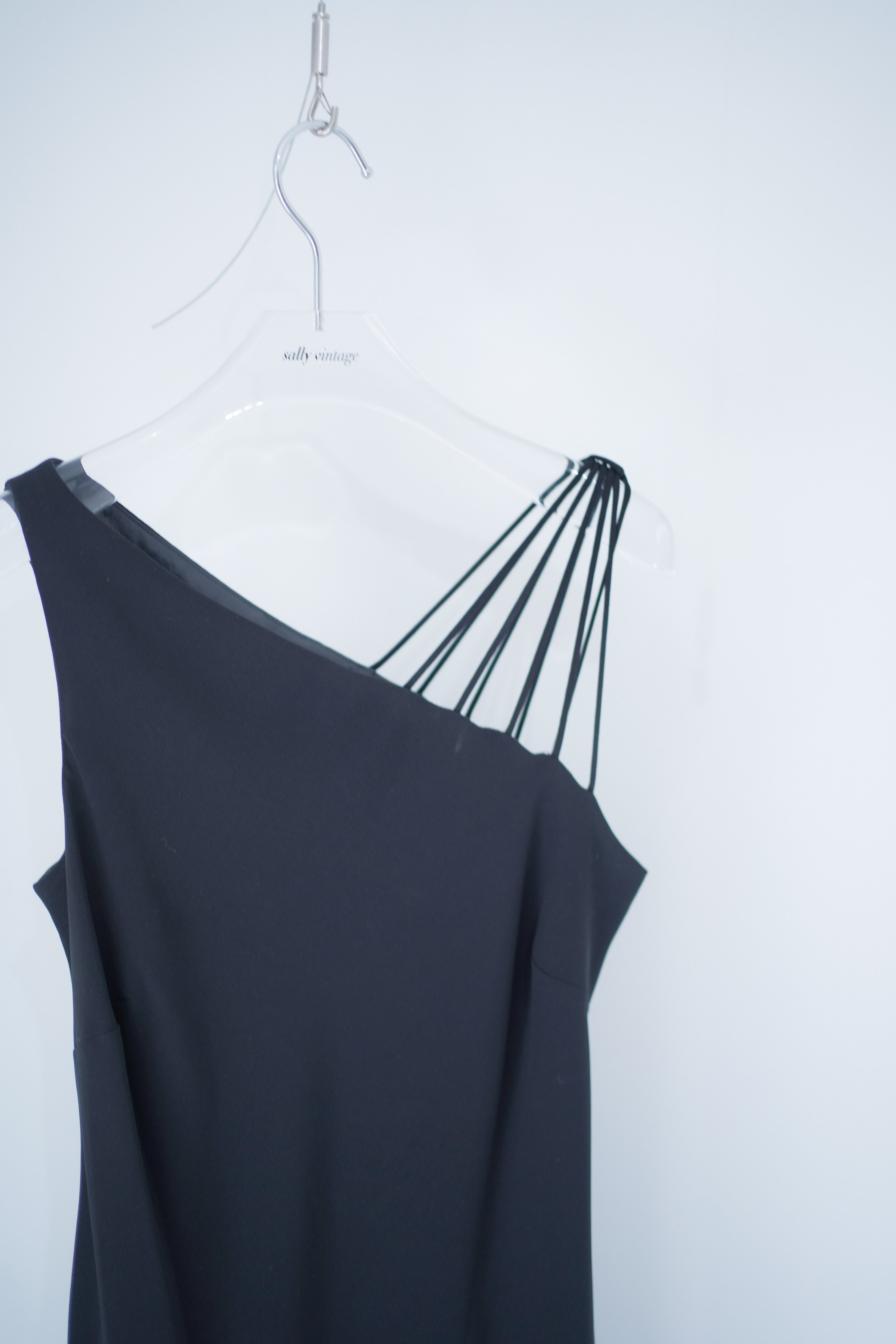 asymmetry strap black dress