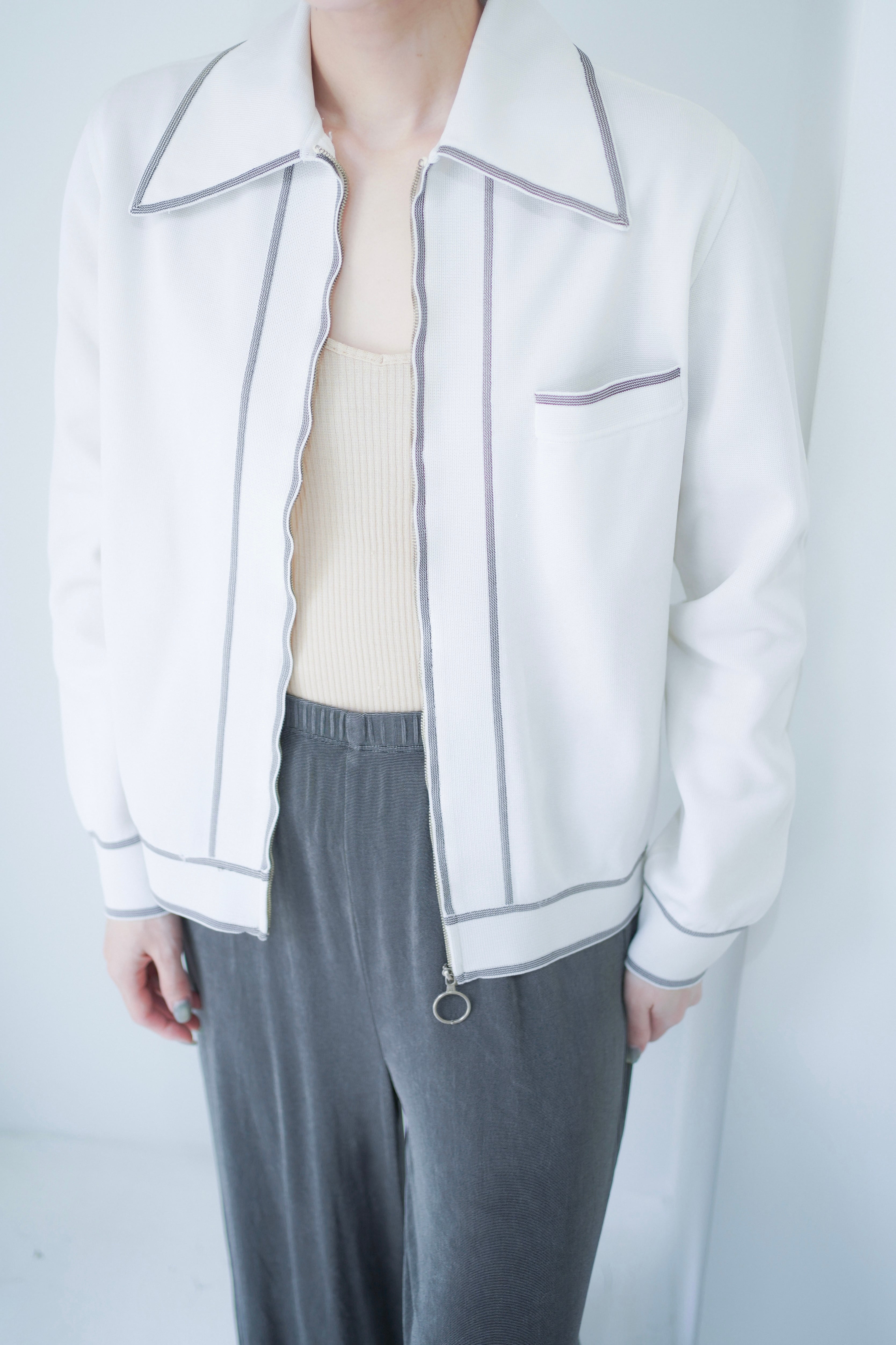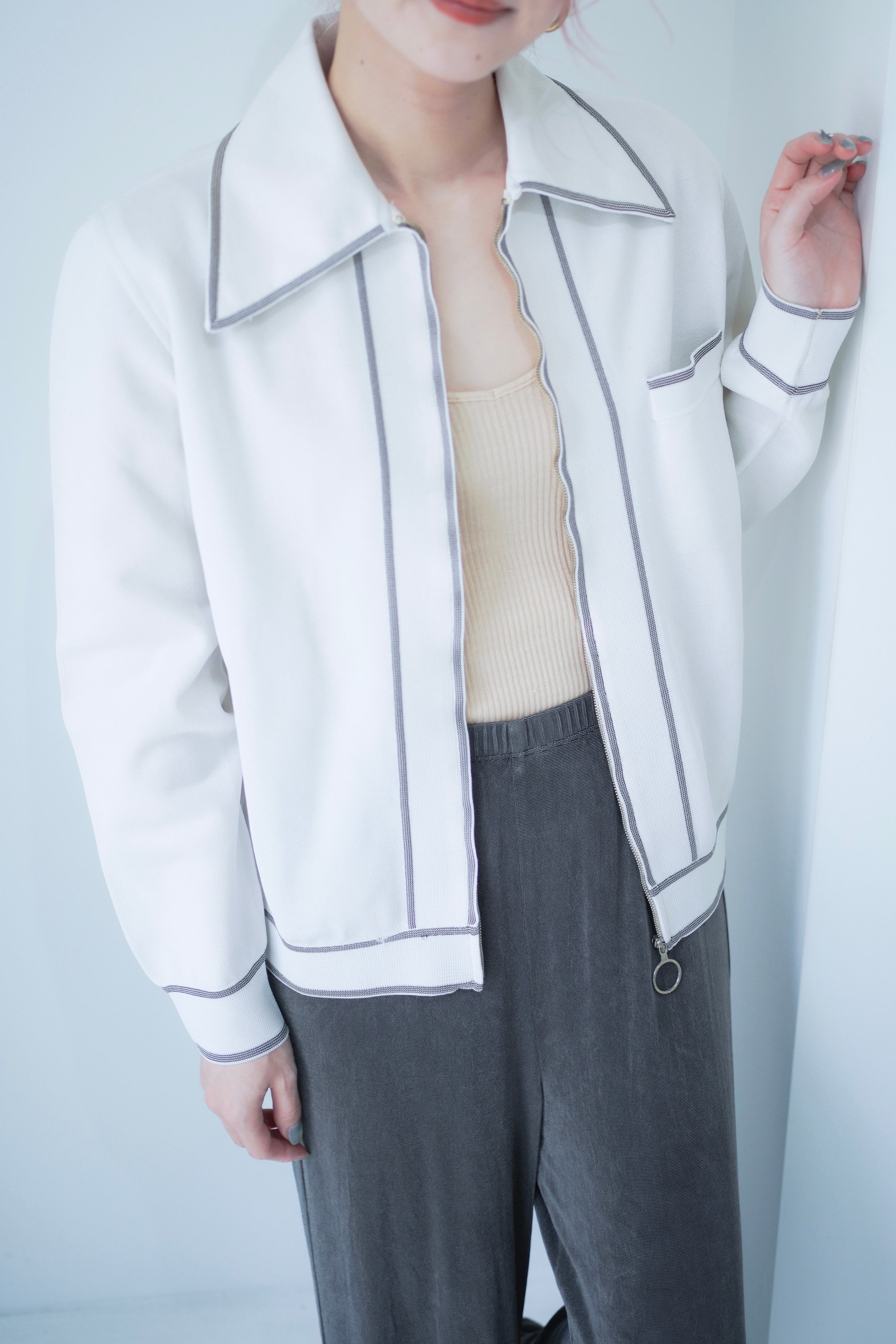ジップアップサマーニットブルゾン。